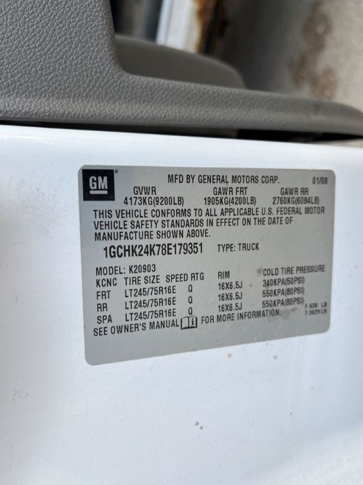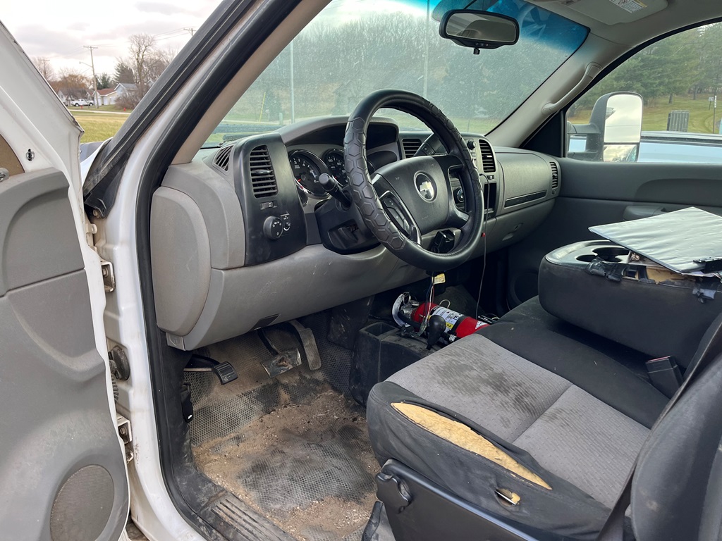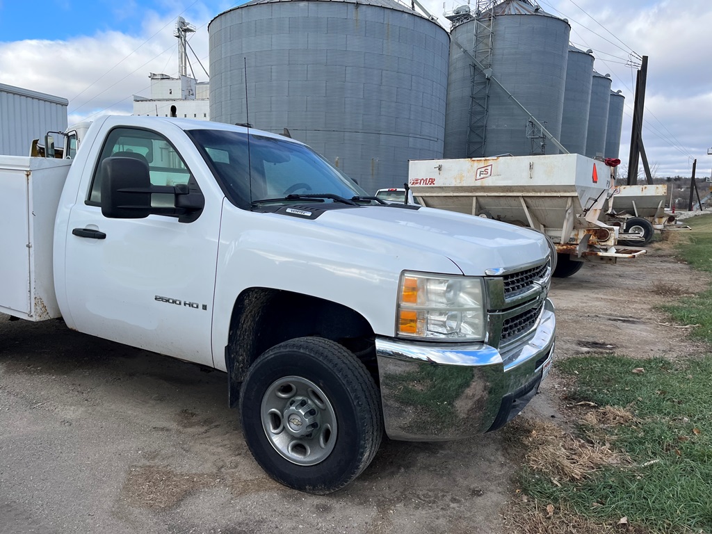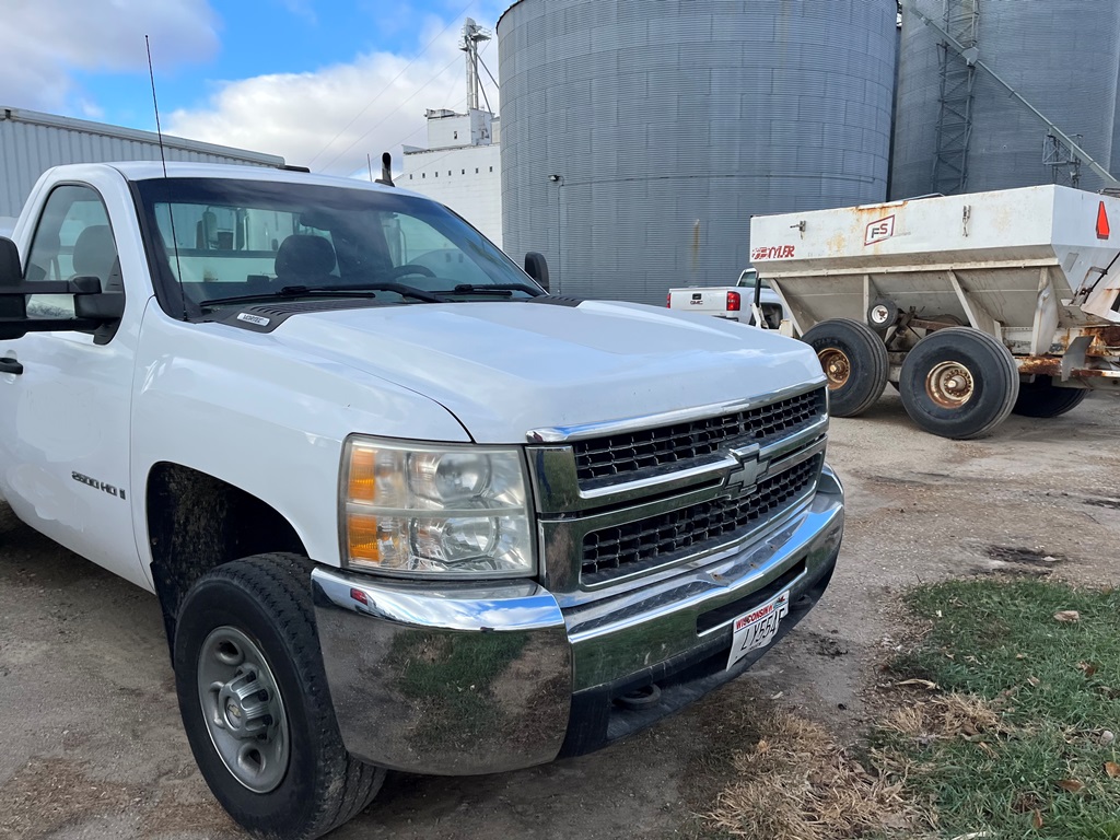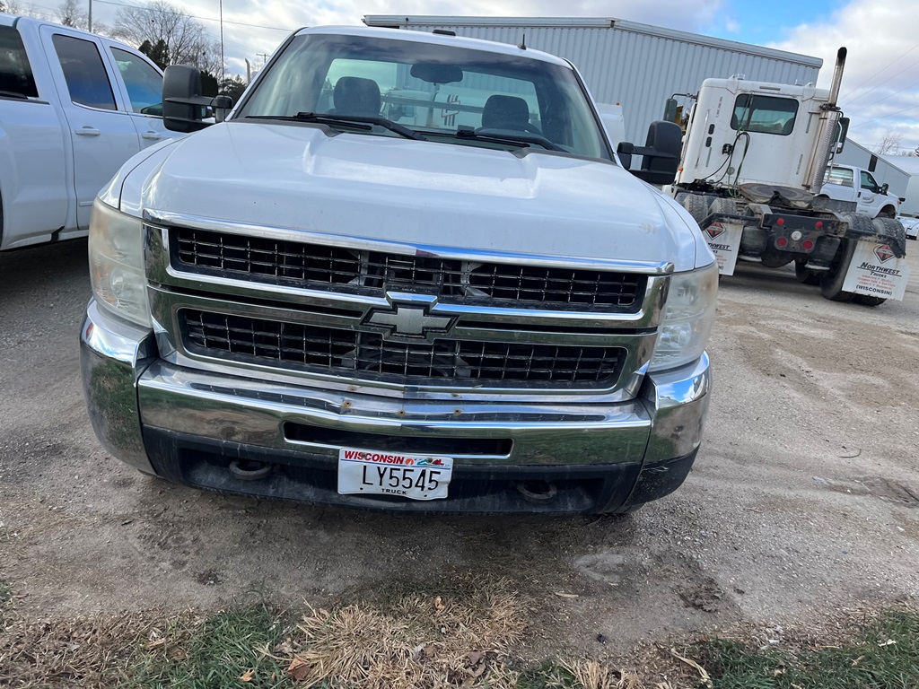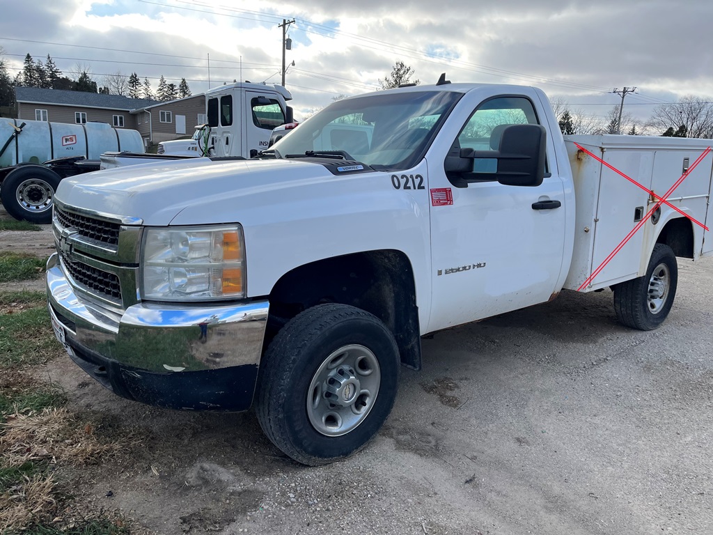 2008 Chevy 2500HD Pickup (DR3569 Unit 0212), cab/chassis only, gas engine, automatic transmission, 4X4, heat/air conditioning, AM/FM CD radio, cruise control, 245/75R16 tires, shows 220,402 miles.
