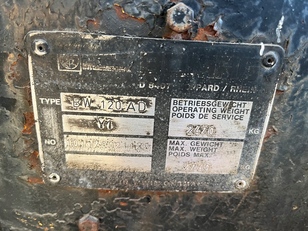 Bomag Roller (DR3581), model BW120, Deutz diesel engine, hydrostatic drive, 36'' roller, shows 6980 hours.