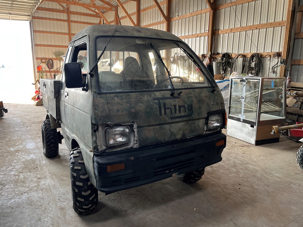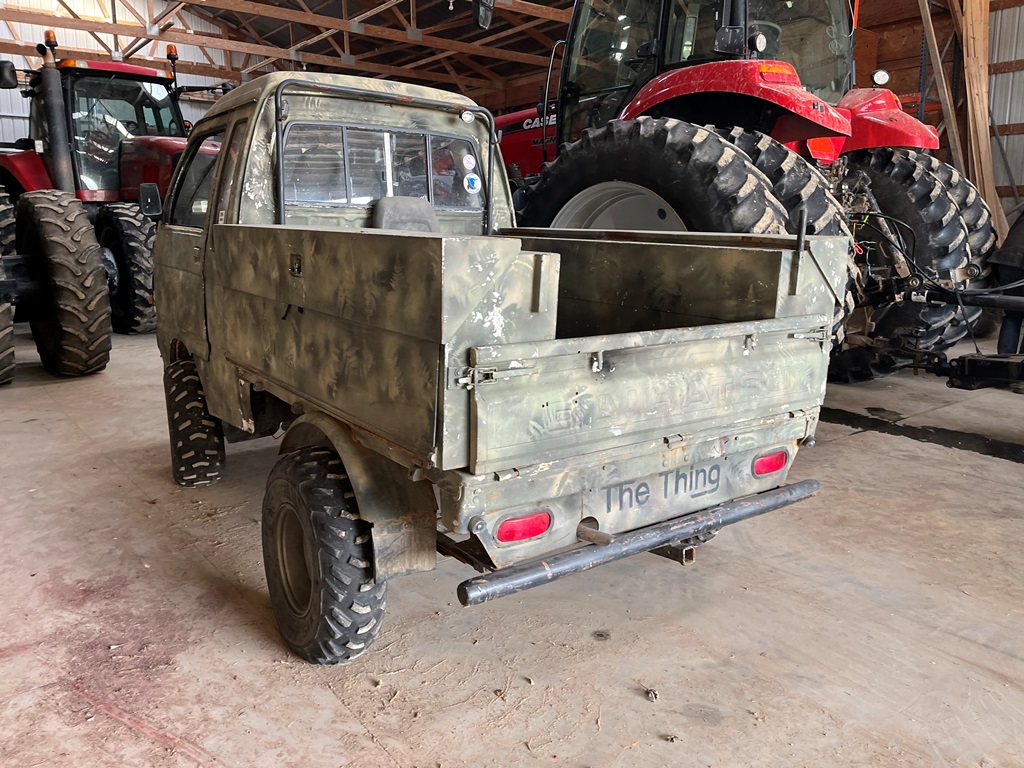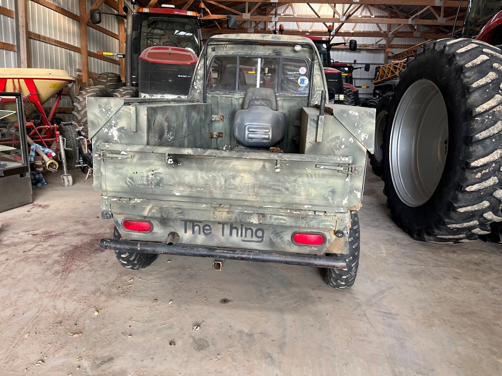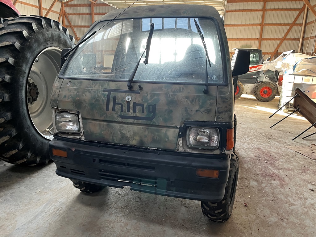 Thing ATV (DR3582), NON RUNNER, it turns over been does not fire, gas engine, 5 speed manual transmission, rear box w/side storage, rear receiver hitch, cab heat, 25X8-12 tires, shows 25,101 miles.