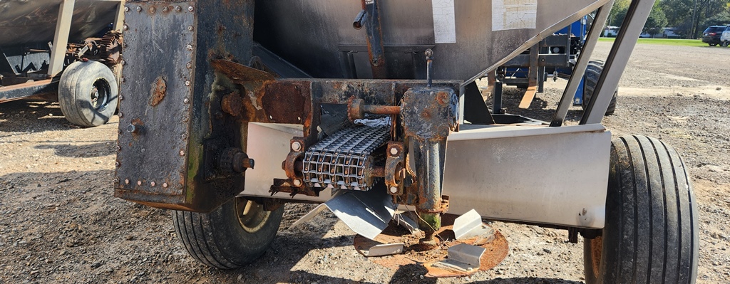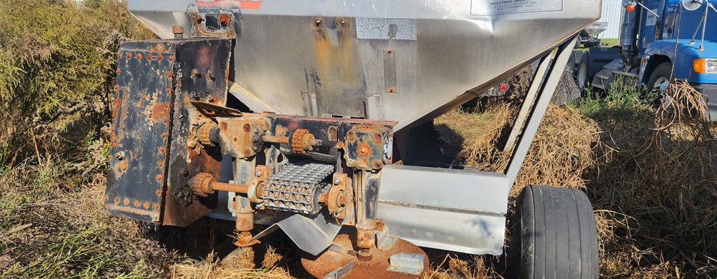 Adams Spreader Buggy (DR3594 Unit 0855), 5 ton stainless steel spreader buggy FOR PARTS, ground drive hydraulics, missing an axle.