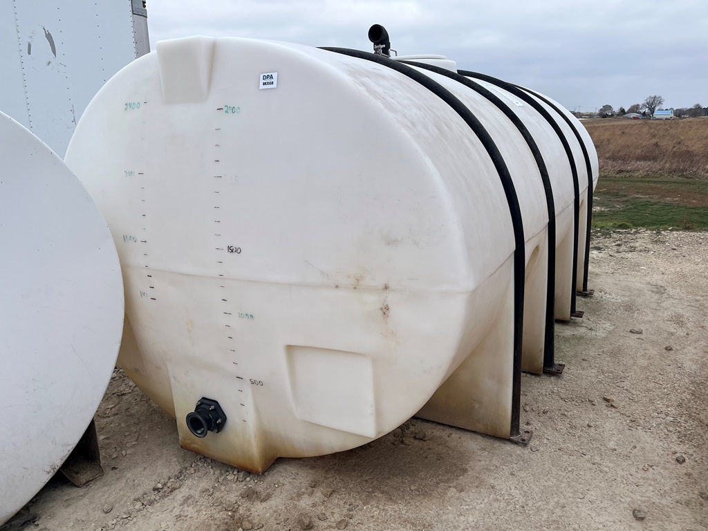 Poly Tank (DR3558), 2,400 gallon crown poly liquid tank, 3'' outlet, down straps.
