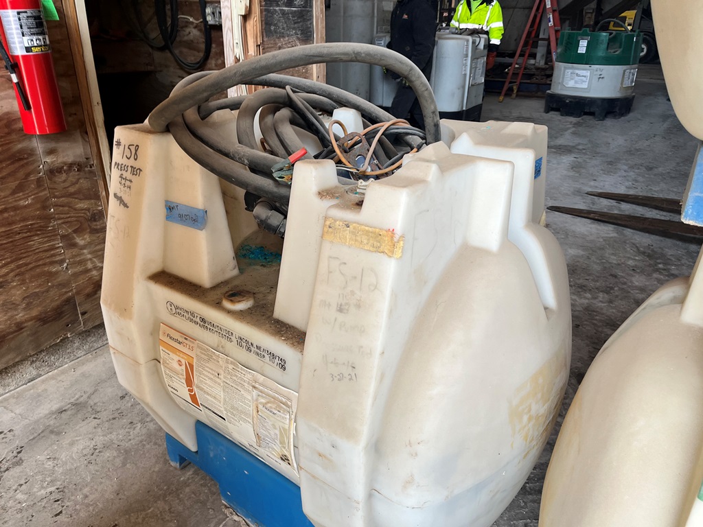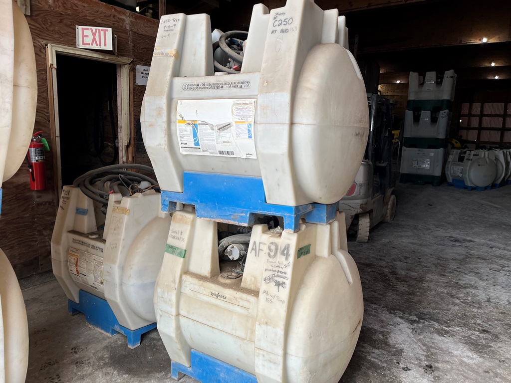 Shuttle Tanks (DR3560), (3) - 150 gallon poly shuttle tanks w/metered pumps.