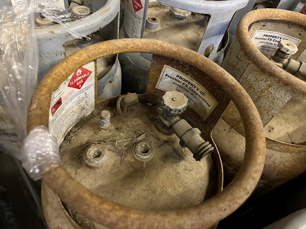 LP Tanks (DR3553), (4) - 44lb LP gas tanks, 1 is missing float gauge.