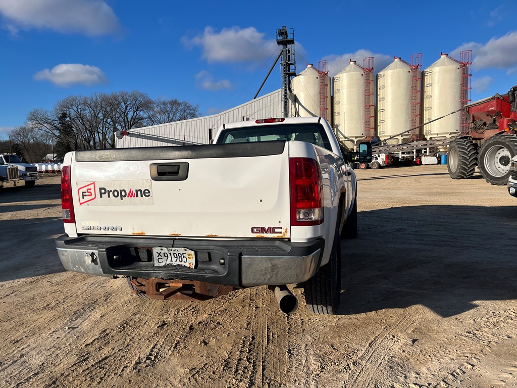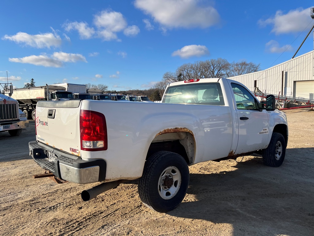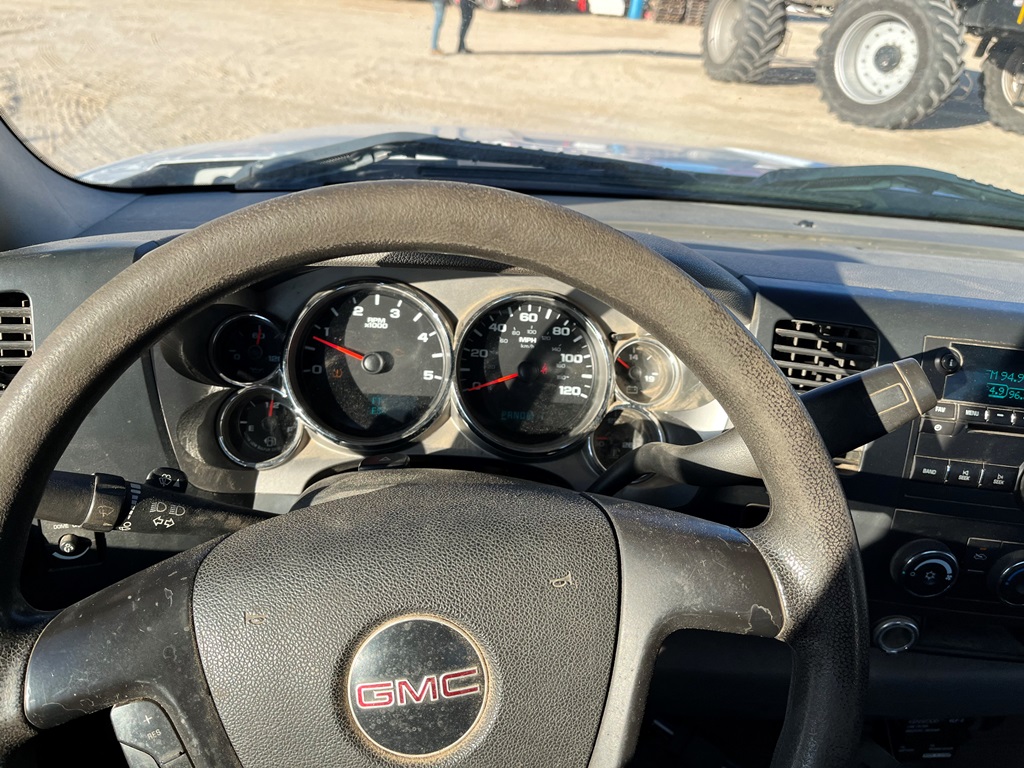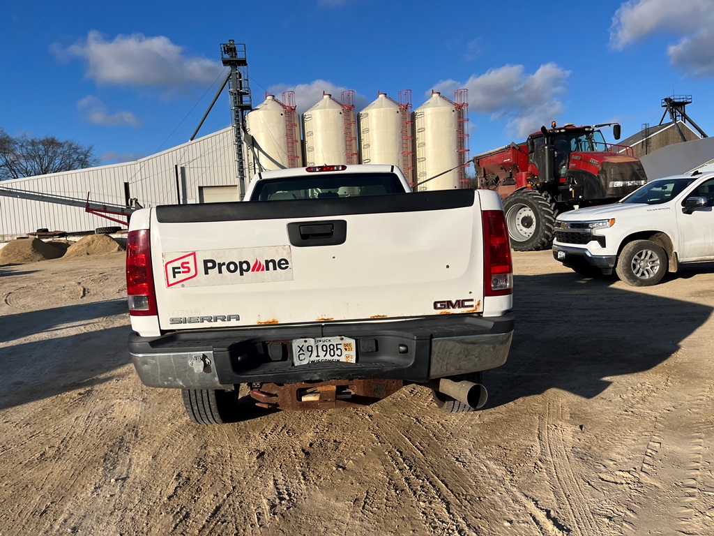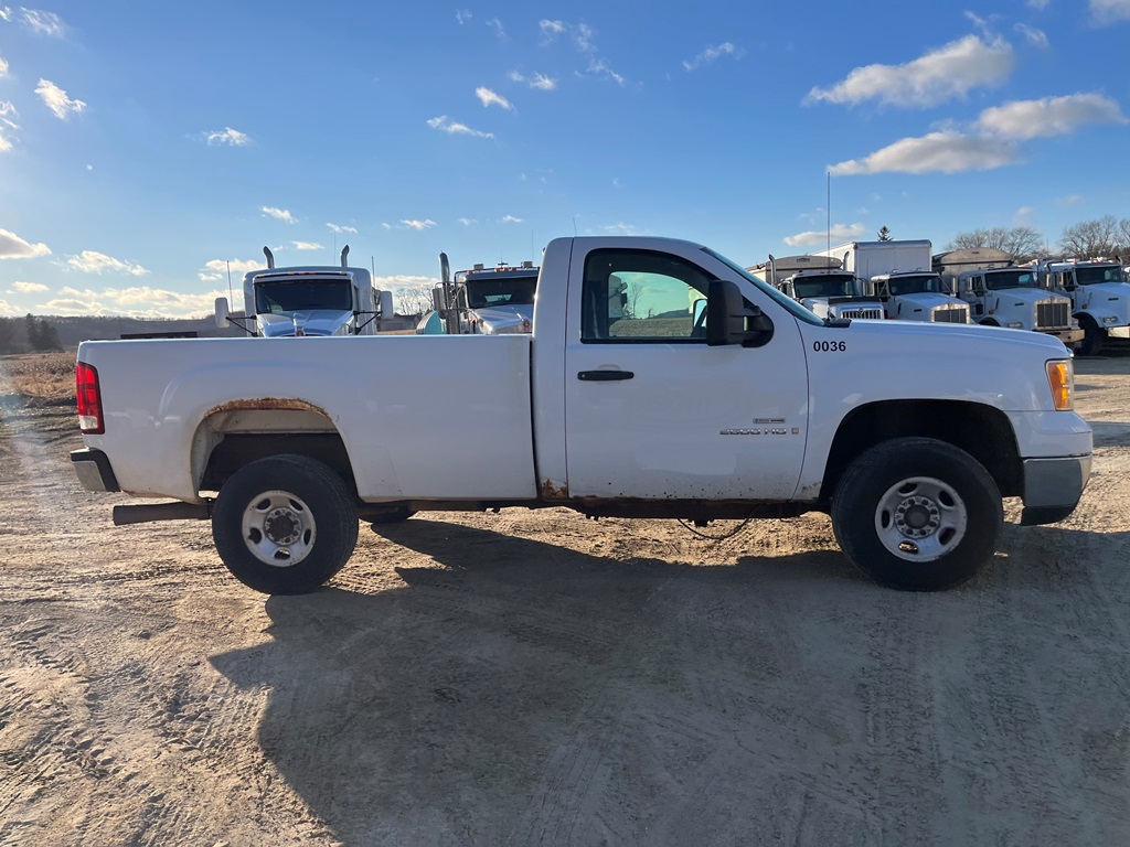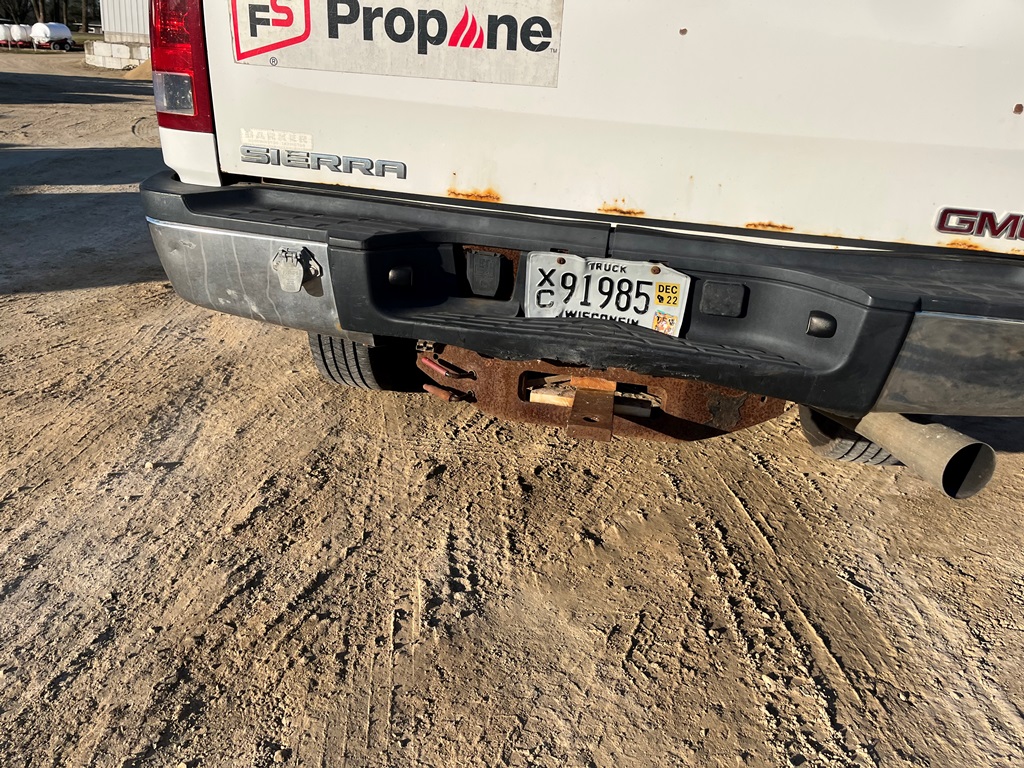 2009 GMC 2500HD Pickup (DR3573 Unit 0036), Dura Max diesel engine, Allison automatic transmission, regular cab long box, 4X4, rear ag hitch, heat/air conditioning, AM/FM CD radio, 265/75R16 tires, shows 245,464 miles.
