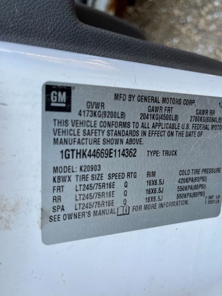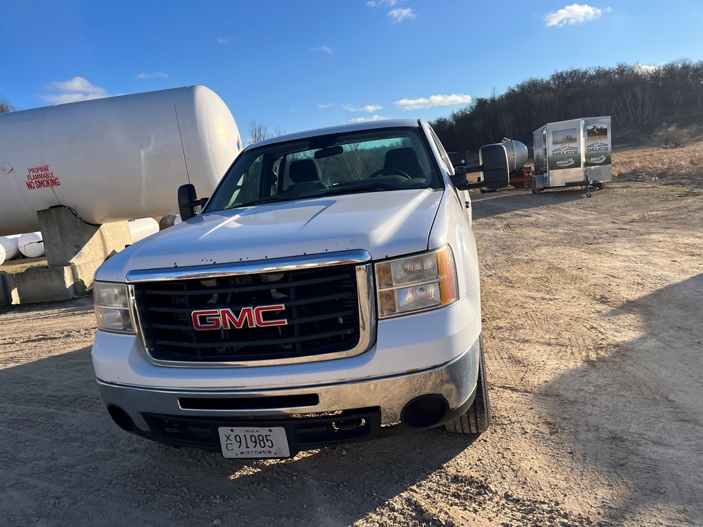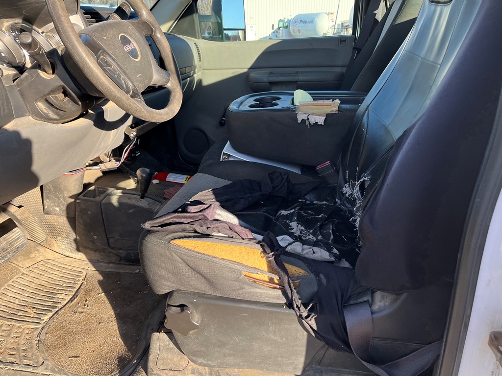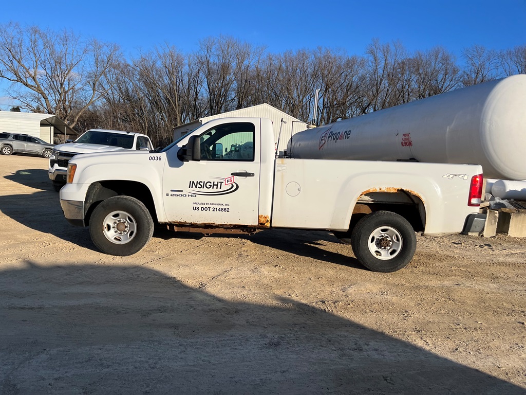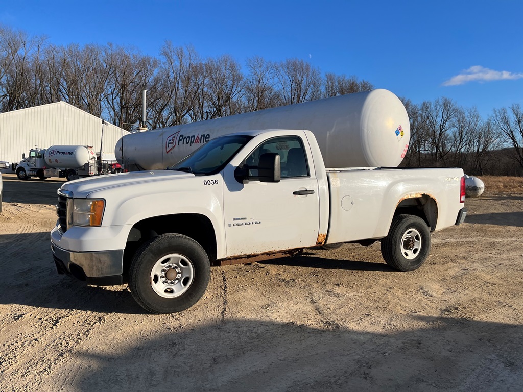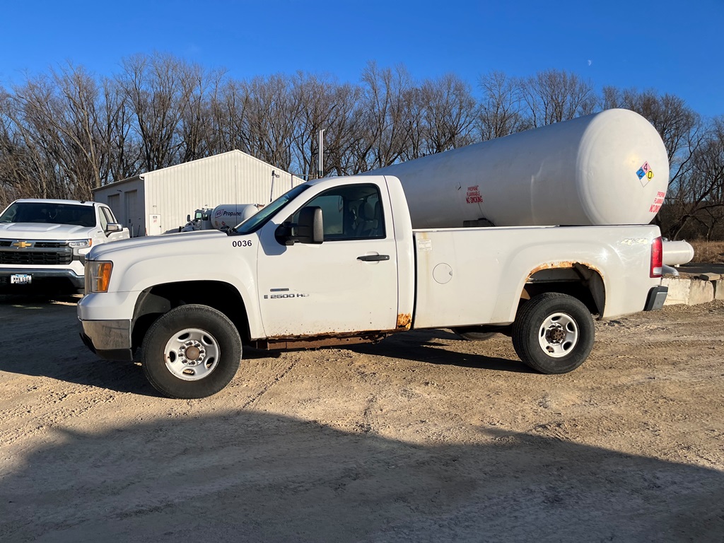 2009 GMC 2500HD Pickup (DR3573 Unit 0036), Dura Max diesel engine, Allison automatic transmission, regular cab long box, 4X4, rear ag hitch, heat/air conditioning, AM/FM CD radio, 265/75R16 tires, shows 245,464 miles.