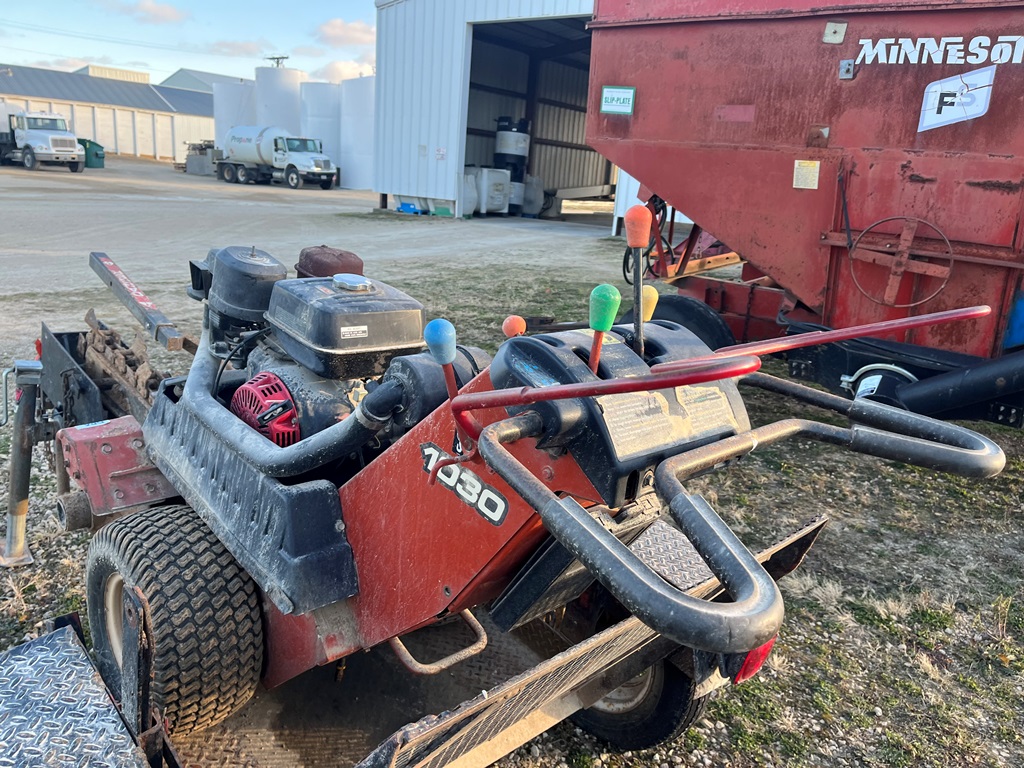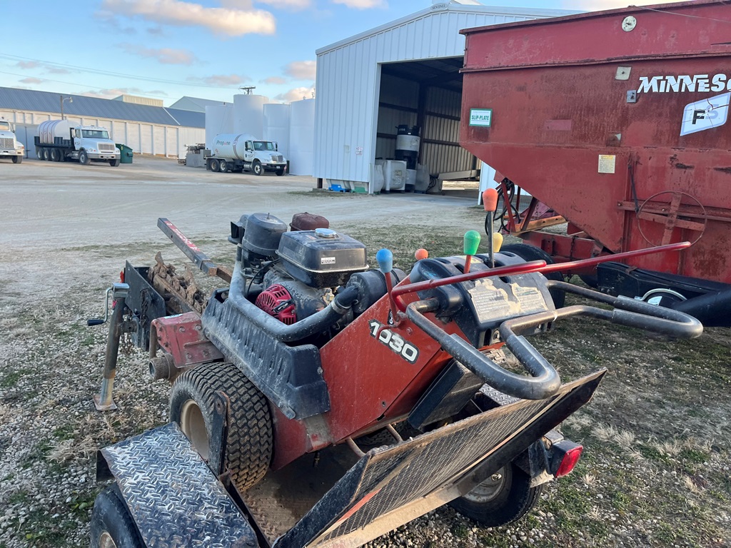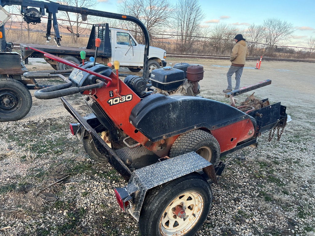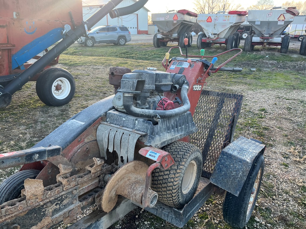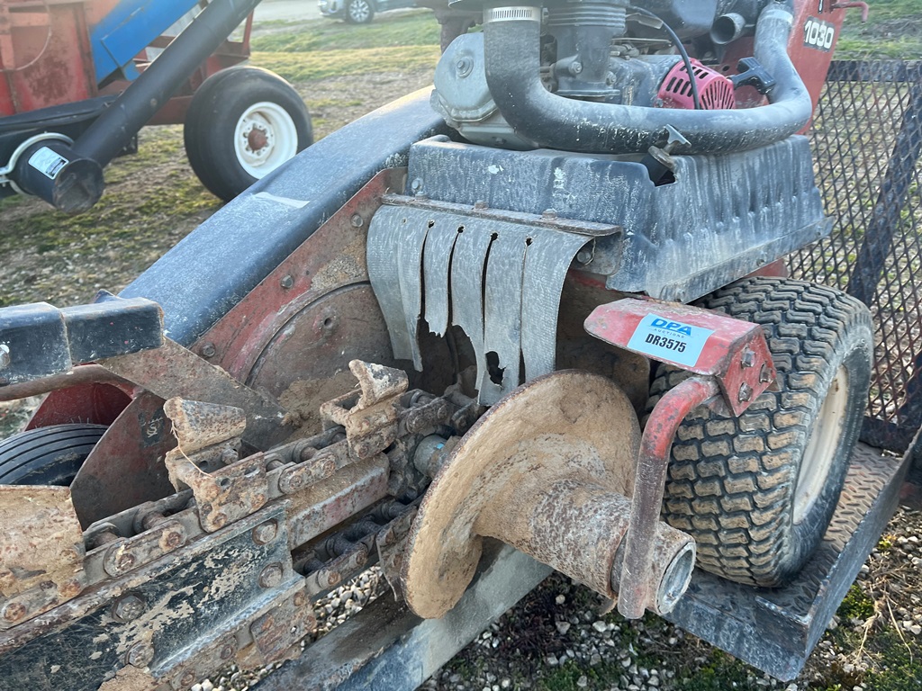 Ditch Witch 1030 Trencher (DR3575), walk behind trencher, gas engine, 40'' trench bar, single axle trailer w/ramps.