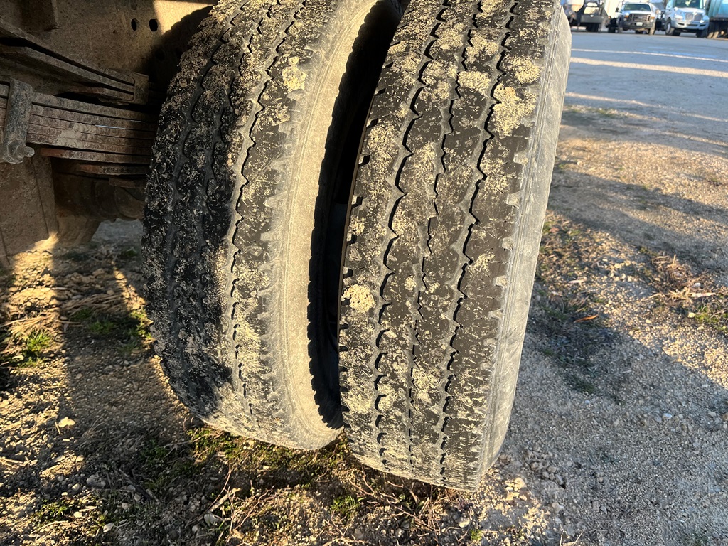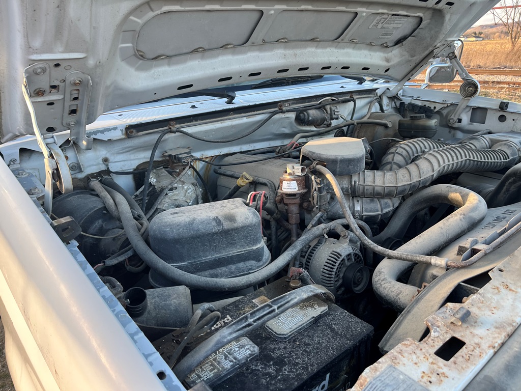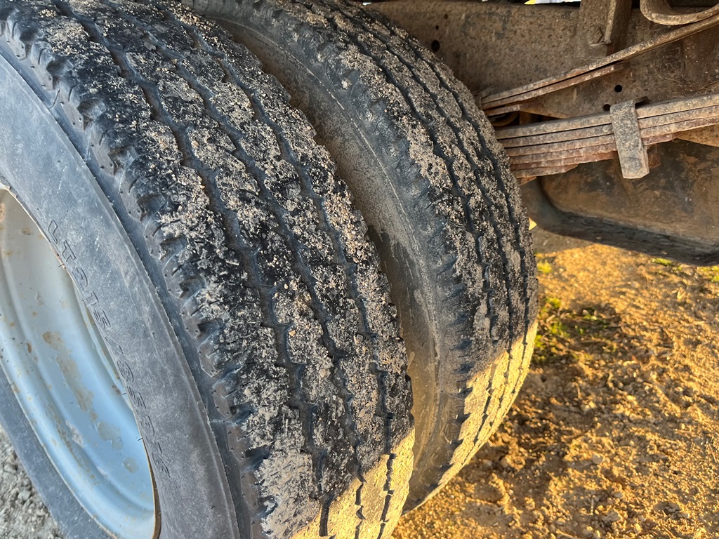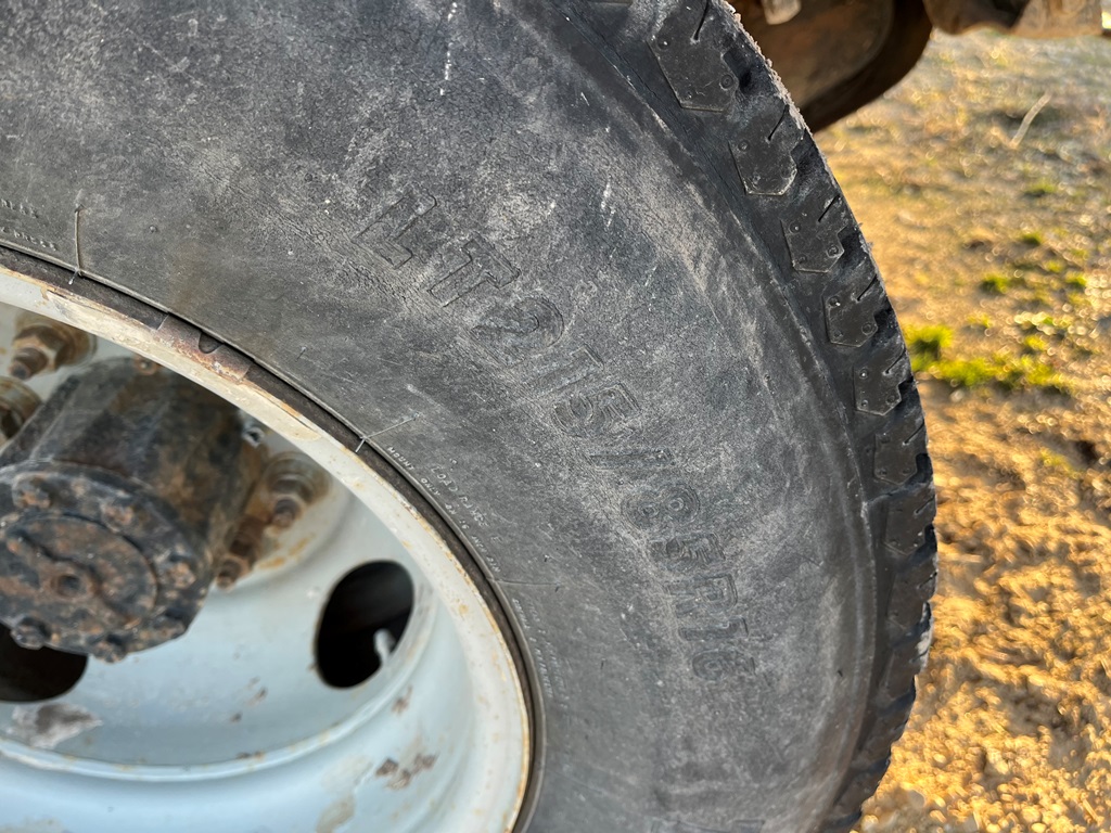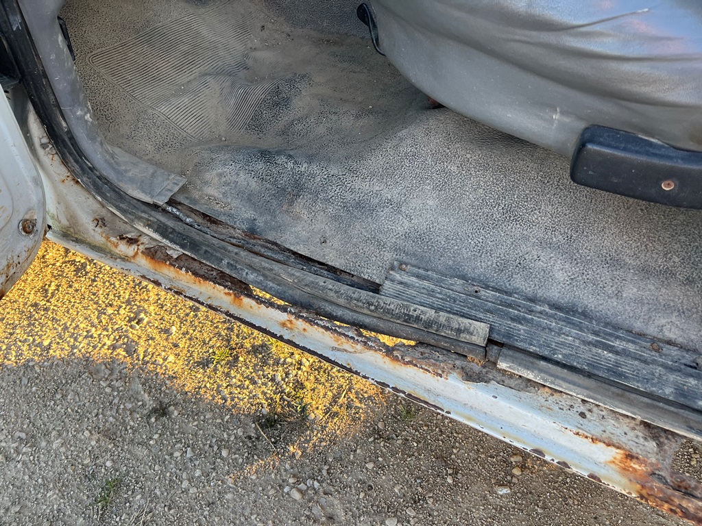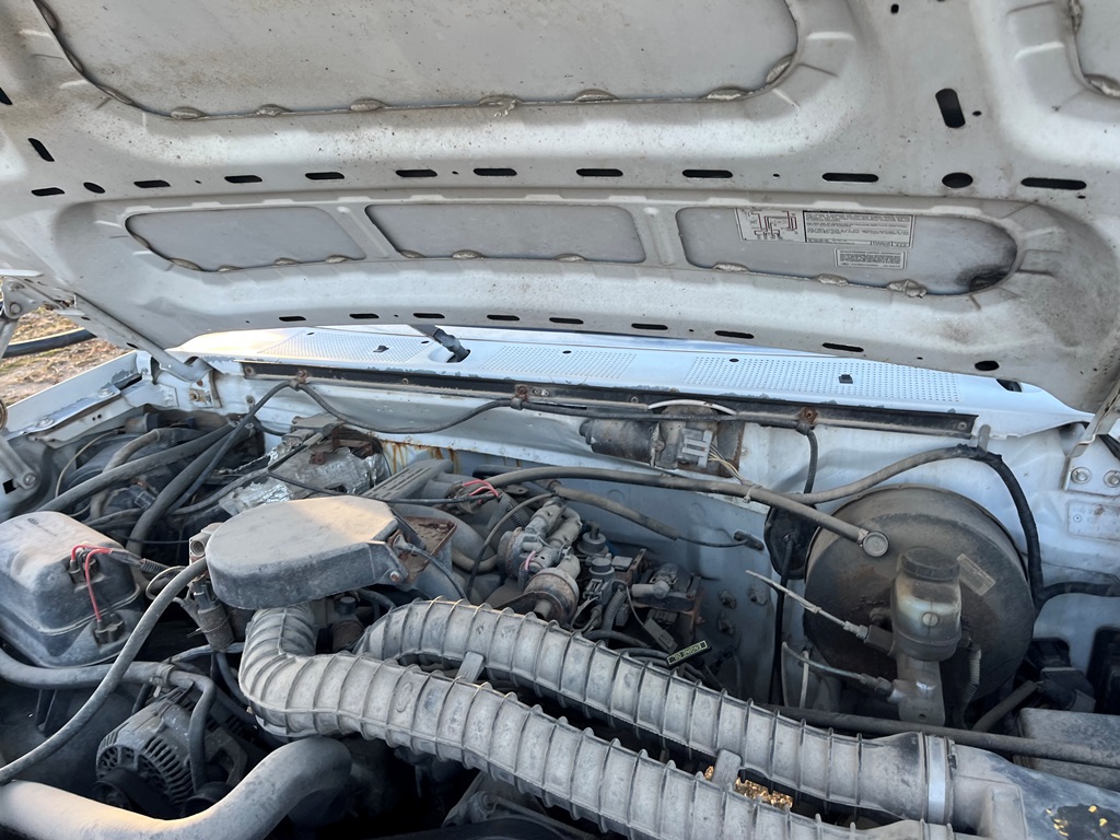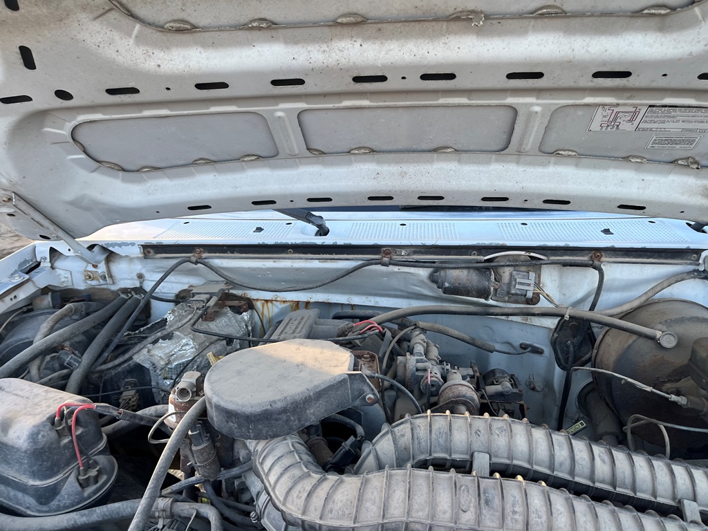 1997 Ford F350 (DR3577), gas engine, automatic transmission, dual fuel tanks, Rugby 9' steel flatbed w/headache rack, cab heat/air conditioning, 215/85R16 tires, shows 134,881 miles.