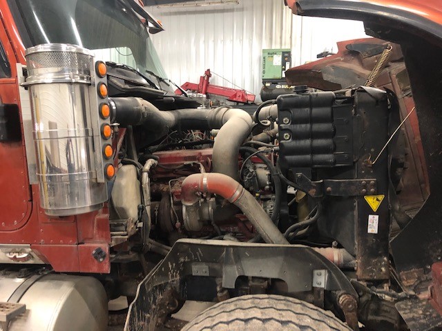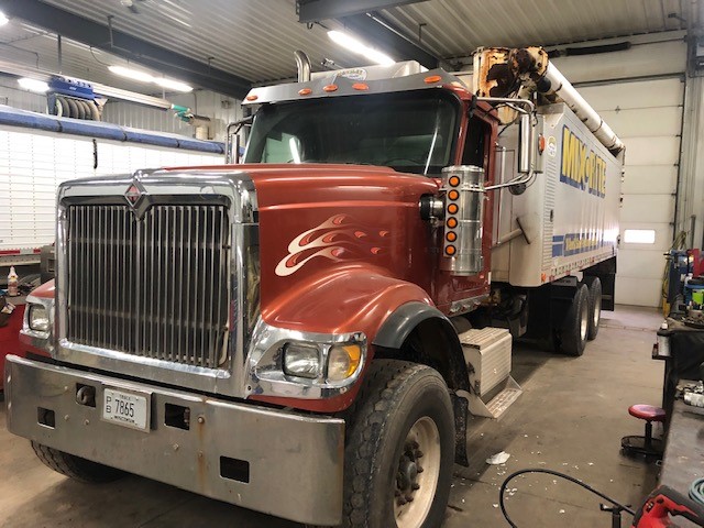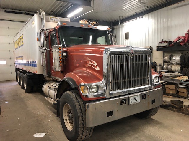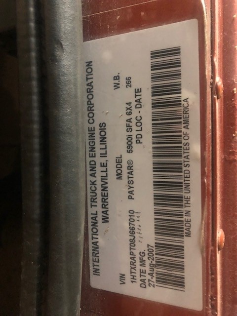 2008 International PayStar 5900i Feed Truck (NP3369, Unit 4057), Cummins ISX (450HP) diesel engine, Eaton Fuller RTO 10 speed transmission, heat, air conditioning, Am/Fm radio, tandem axle with tag axle, air ride suspension, wet kit, Hensley 24' feed body, overhead auger, air ride cab, 11R22.5 rear tires, 425/65R22.5 front tires, 3.91 ratio, 266" wheel base, shows 569,784 miles.