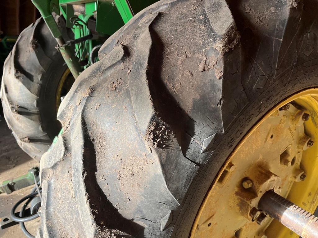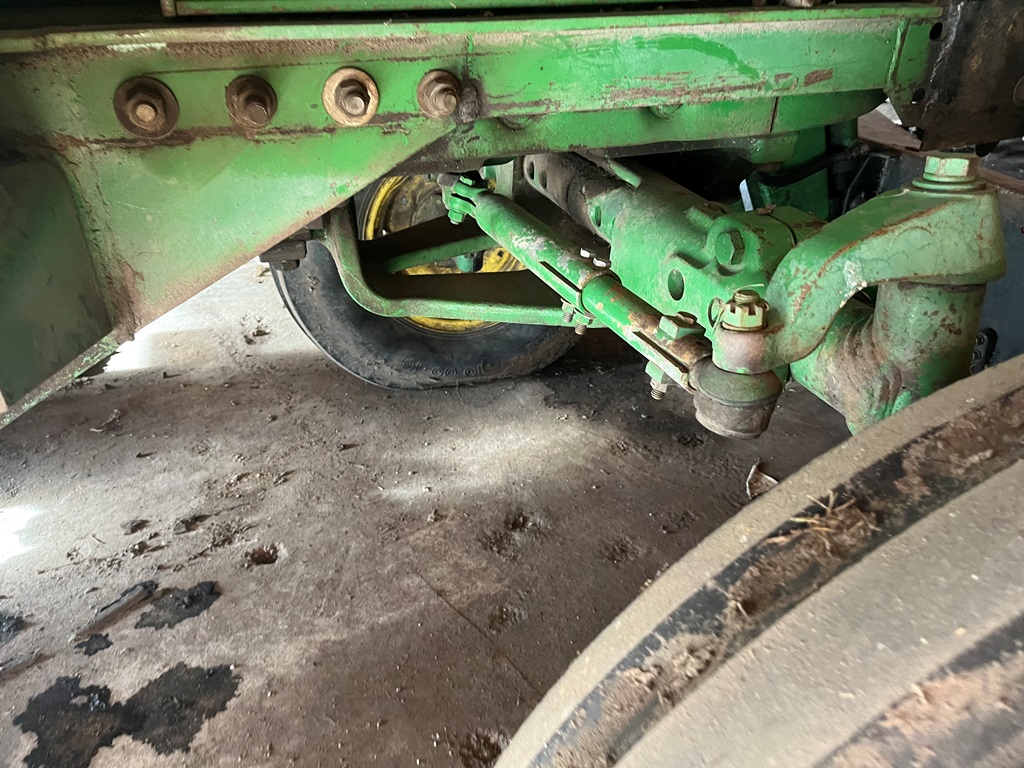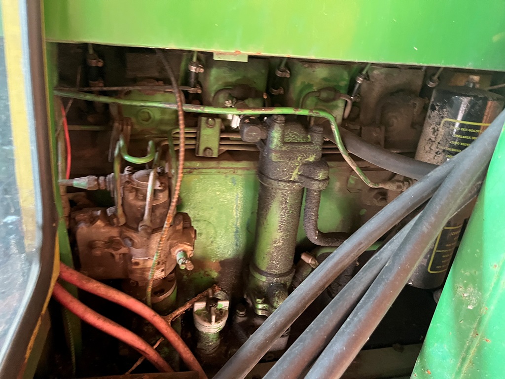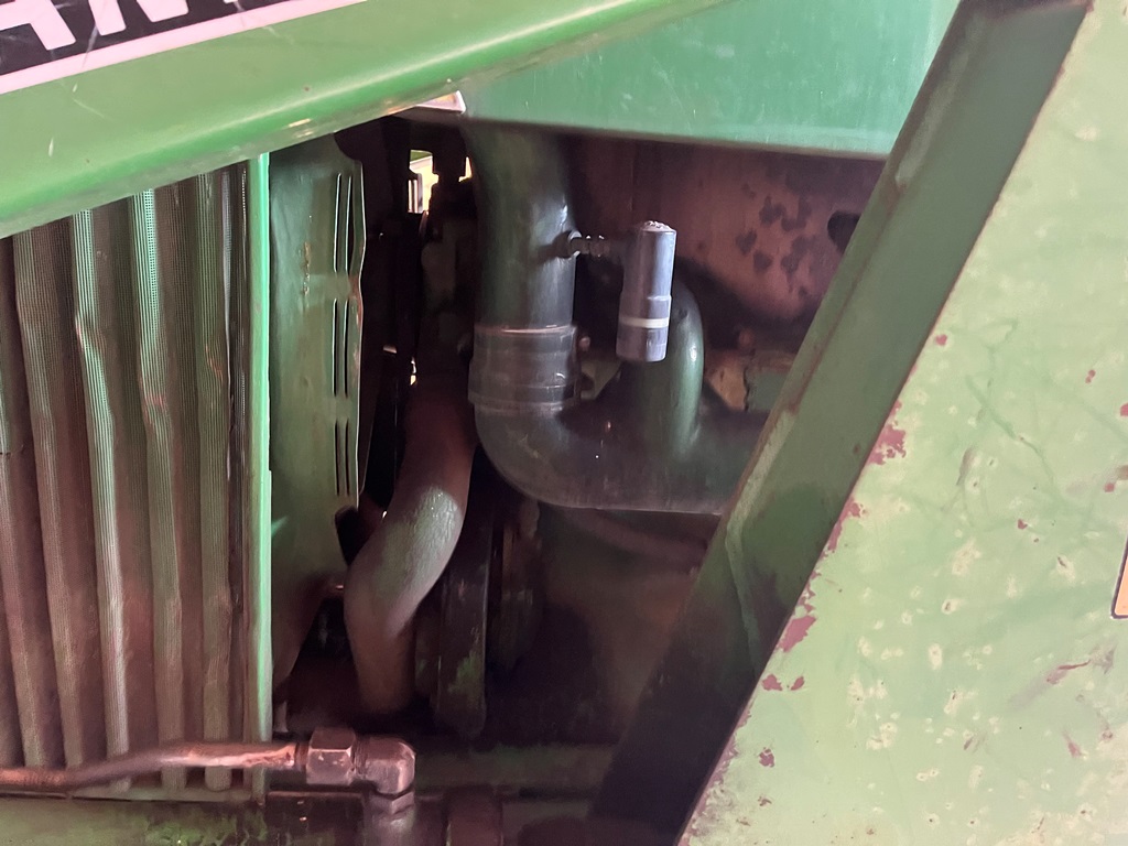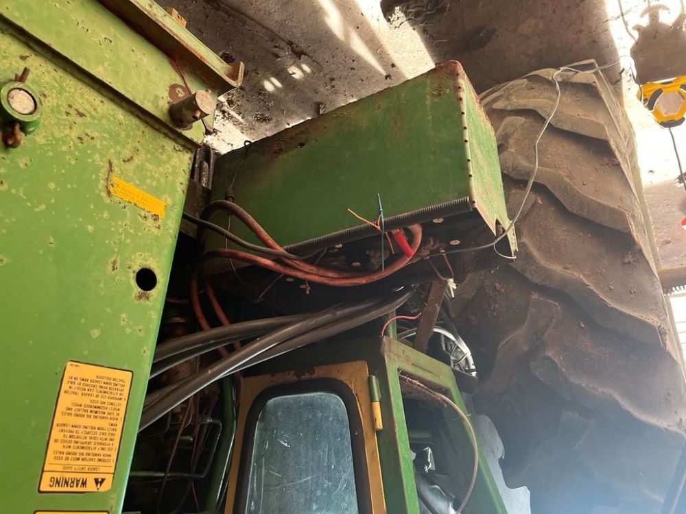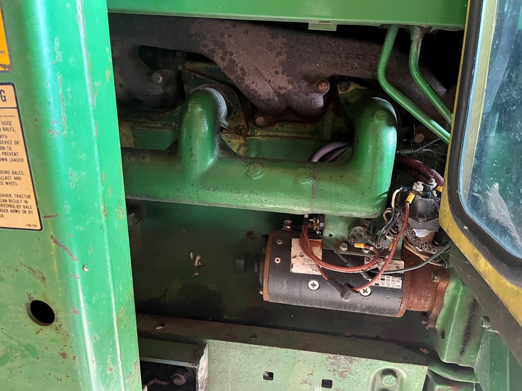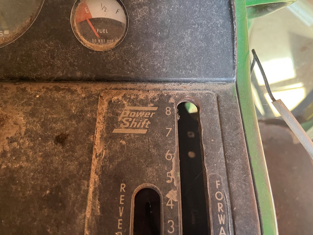 John Deere 4020 Tractor (DR3587), diesel engine, powershift transmission, Farmhand F248 hydraulic front end loader, 7' front bucket, wide front end, enclosed cab, dual hydraulic outlets, PTO, 3 point hitch, engine block heater, 18.4-34 rear tires, shows 8417 hours.