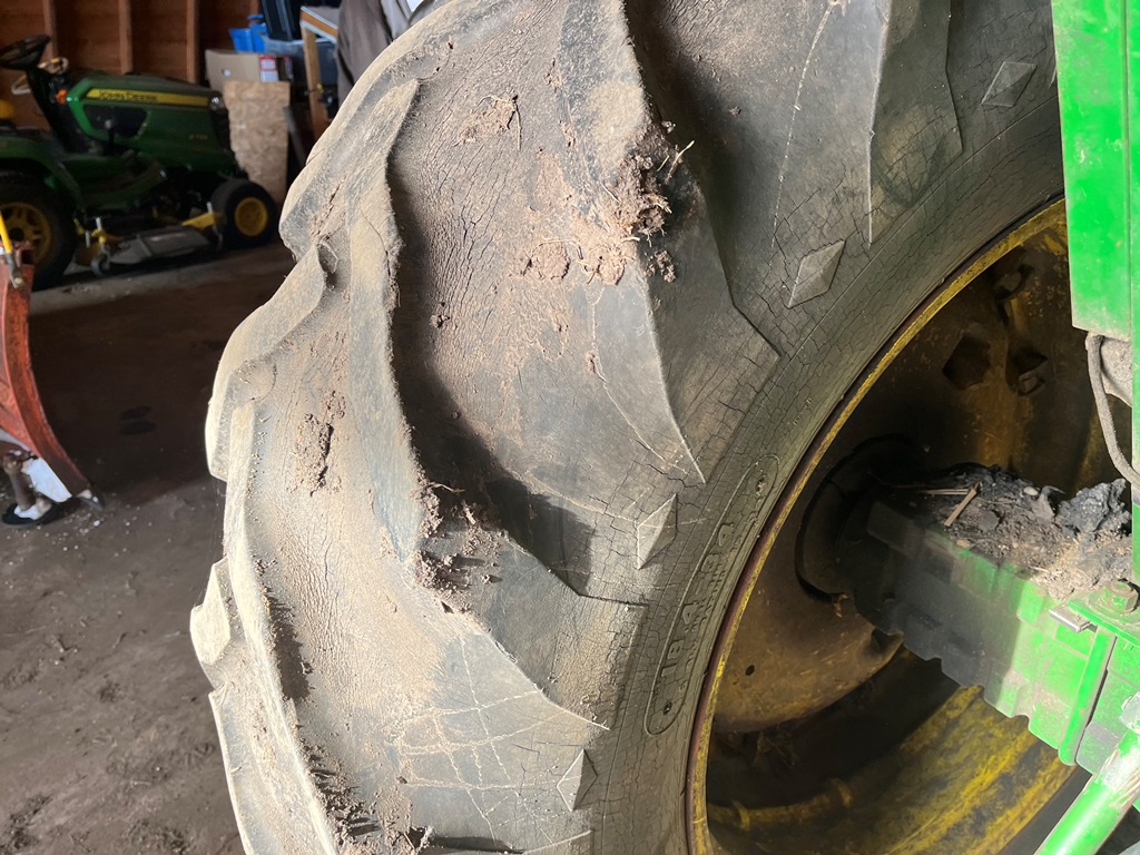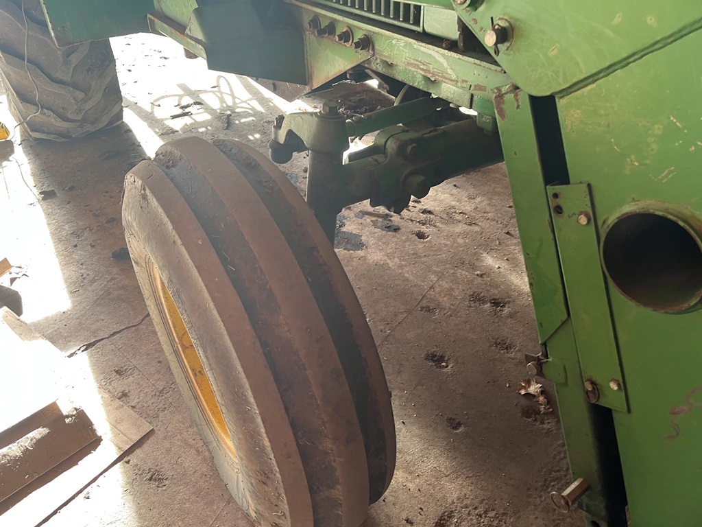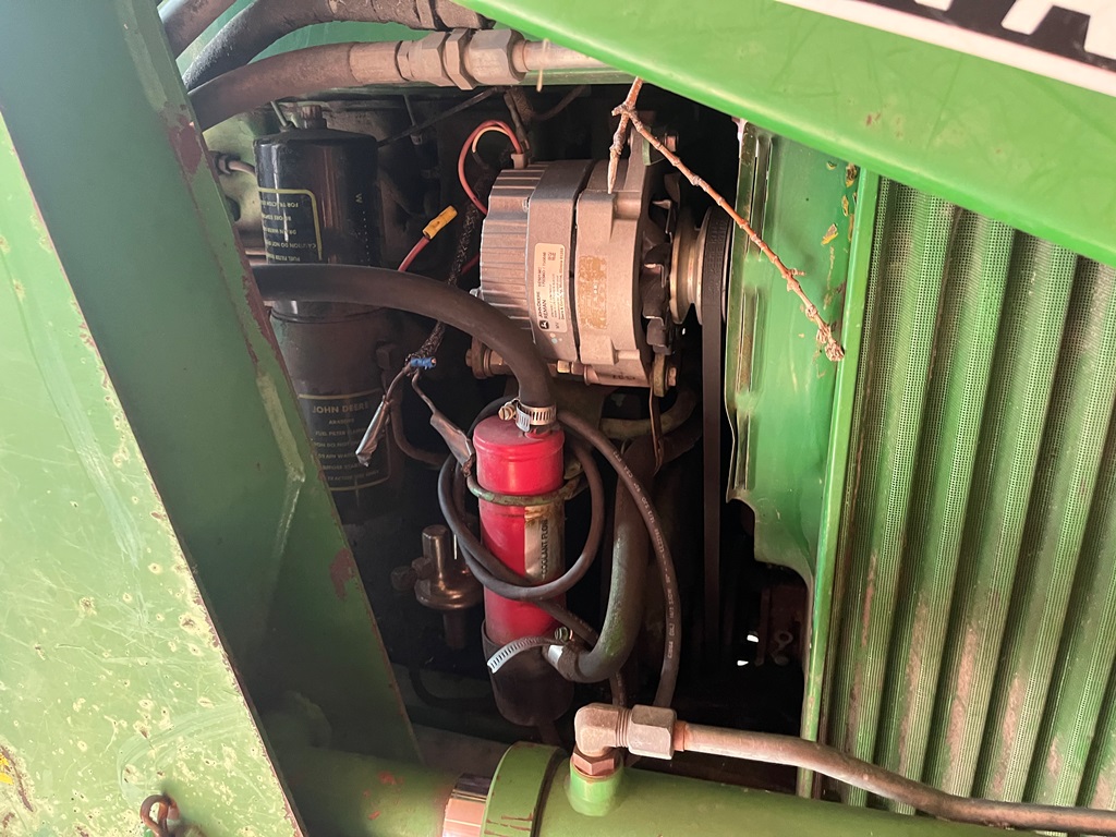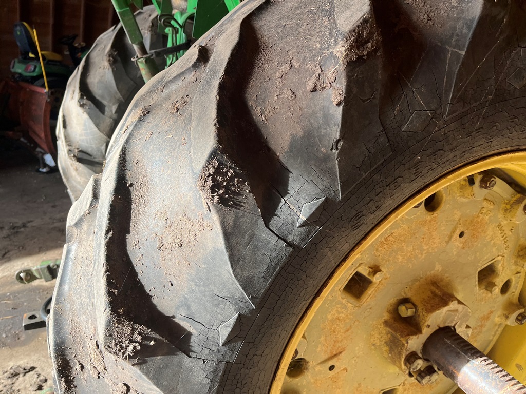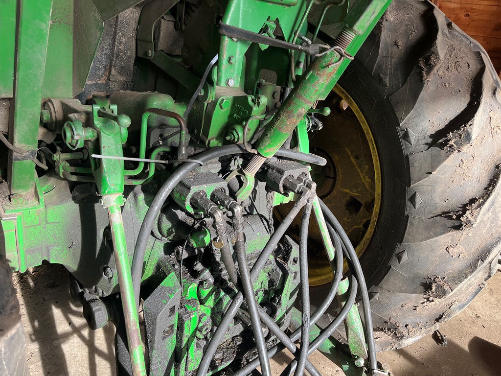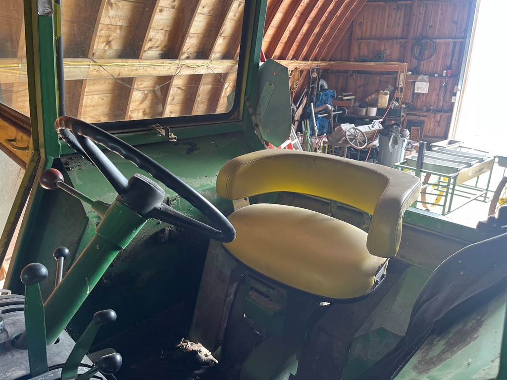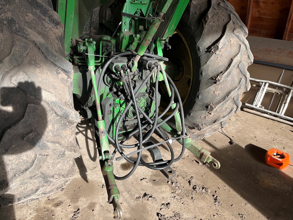 John Deere 4020 Tractor (DR3587), diesel engine, powershift transmission, Farmhand F248 hydraulic front end loader, 7' front bucket, wide front end, enclosed cab, dual hydraulic outlets, PTO, 3 point hitch, engine block heater, 18.4-34 rear tires, shows 8417 hours.