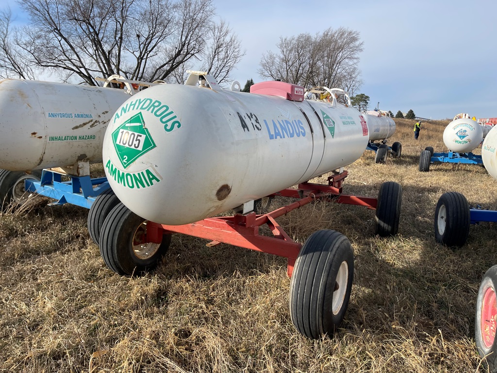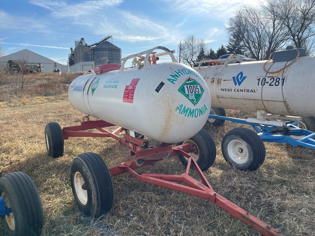 NH3 Nurse Tank (DPA2354, Unit 20-060), 1000 gallon NH3 nurse tank, top front fill, fresh water tank, data plate, 8-14 VTP, 5th wheel running gear, 12.5L-15 flotation tires.
