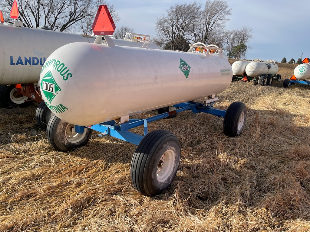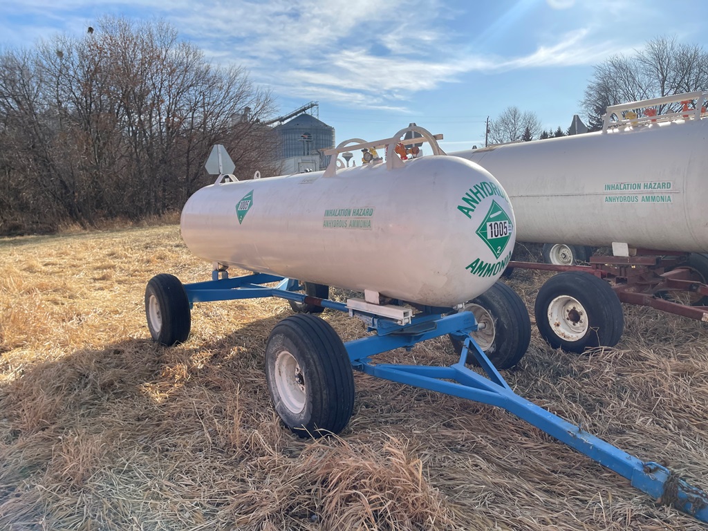 NH3 Nurse Tank (DPA2367, Unit 20-150), 1000 gallon NH3 nurse tank, top front fill, data plate, 06-16 VPT, 5th wheel running gear, 12.5L-15 flotation tires.