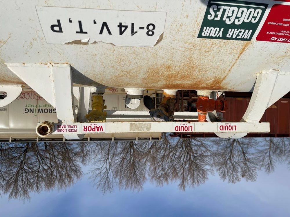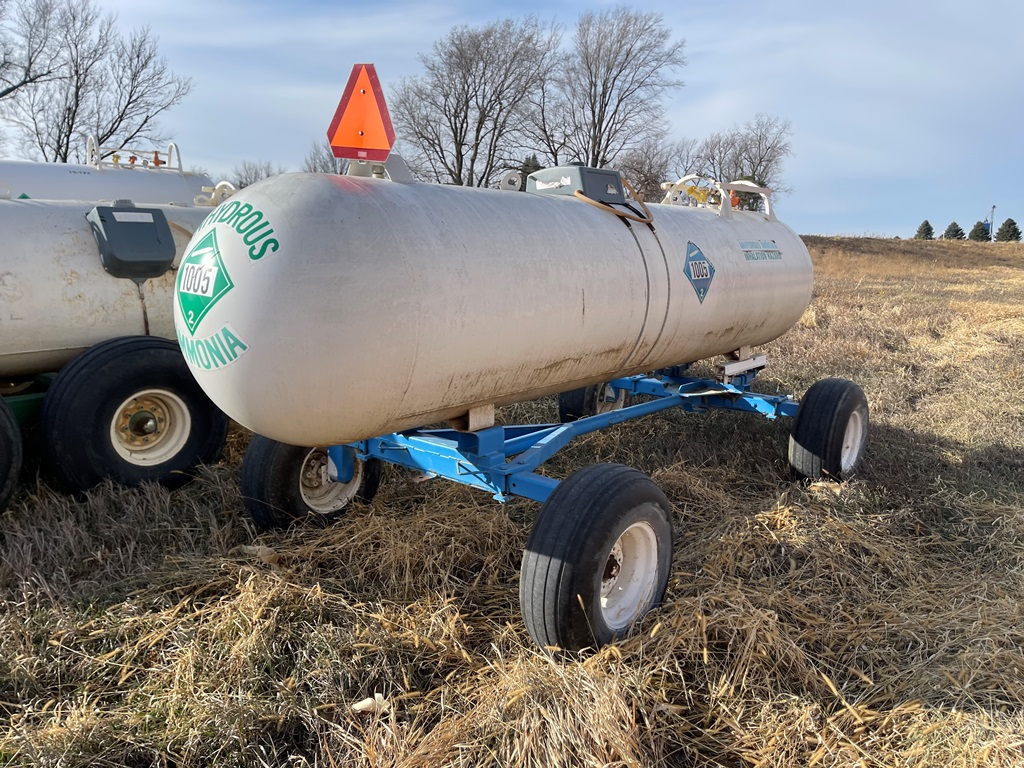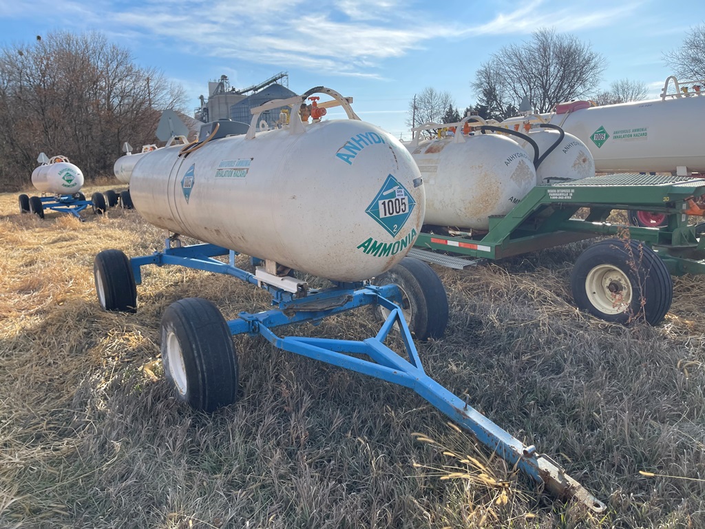 NH3 Nurse Tank (DPA2368, Unit 20-146), 1000 gallon NH3 nurse tank, top front fill, fresh water tank, data plate, 8-14 VTP, 5th wheel running gear, 12.5L-15 flotation tires.