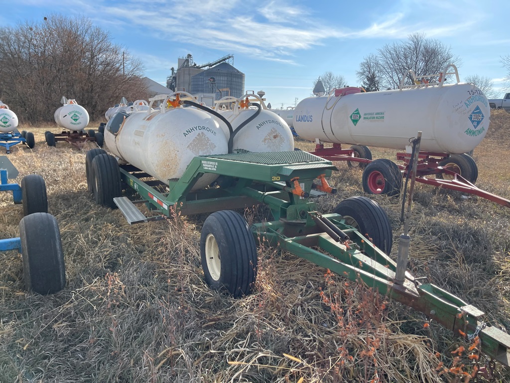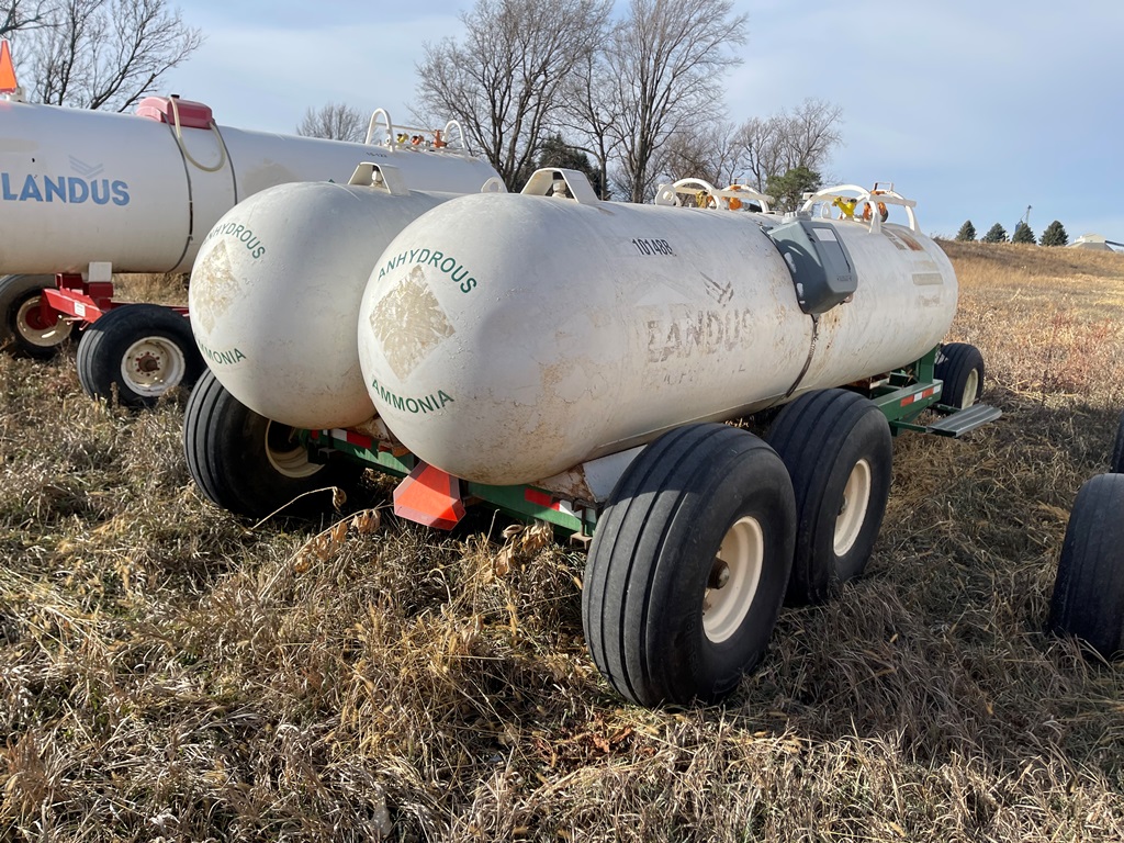 Double NH3 Nurse Tanks (DPA2369, Unit 10148), double 1000 gallon NH3 nurse tanks, fresh water tank, data plates, Vosberg 5th wheel running gear, spring tongue, side steps, 16.5L-16.1 flotation tires.