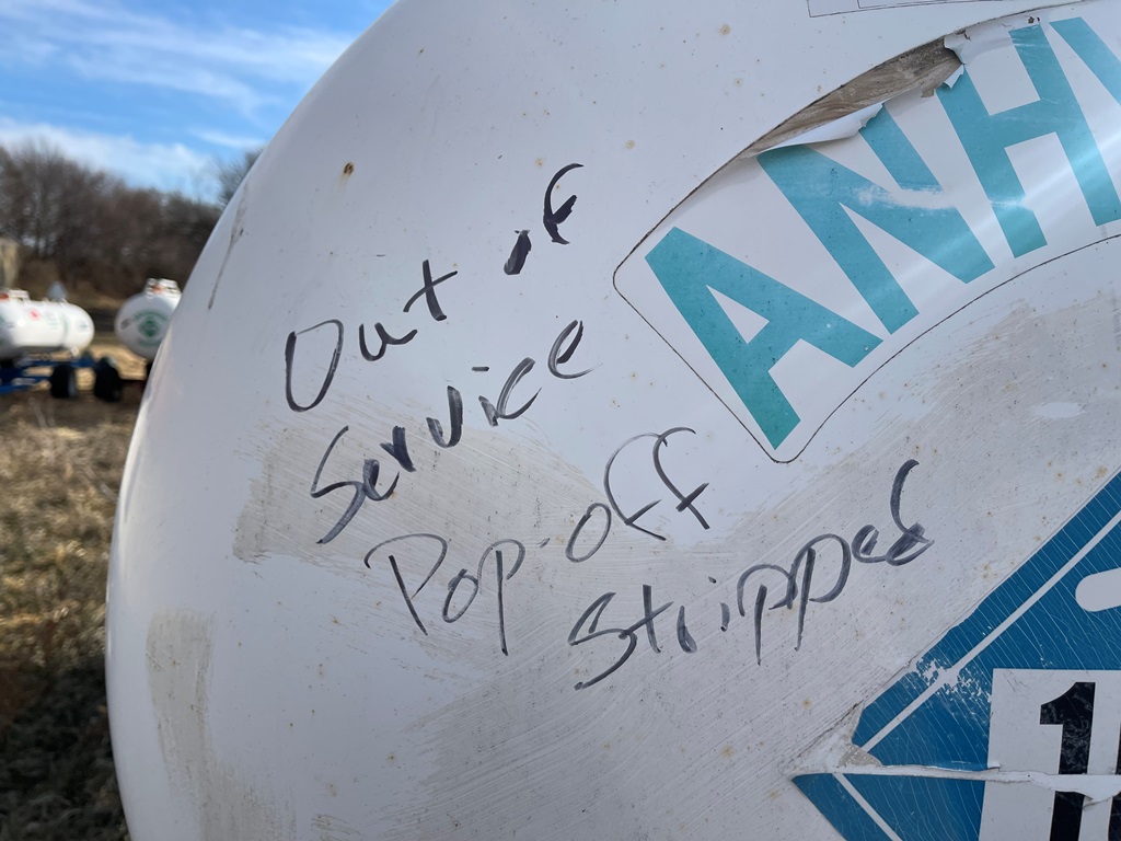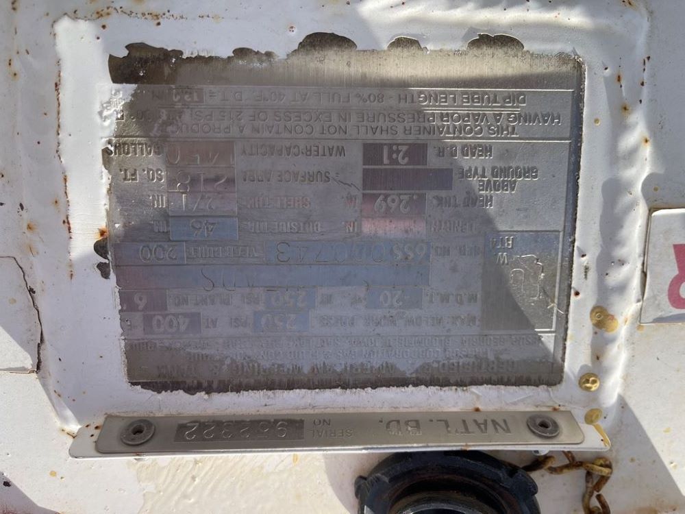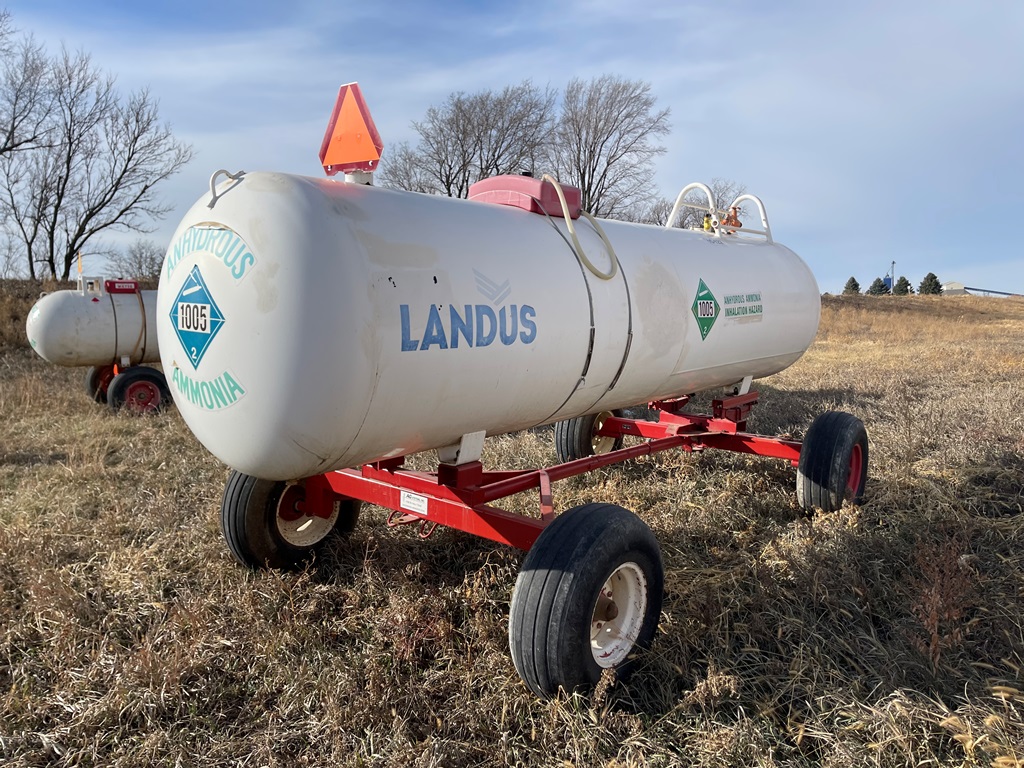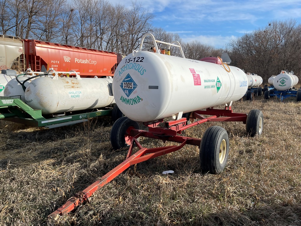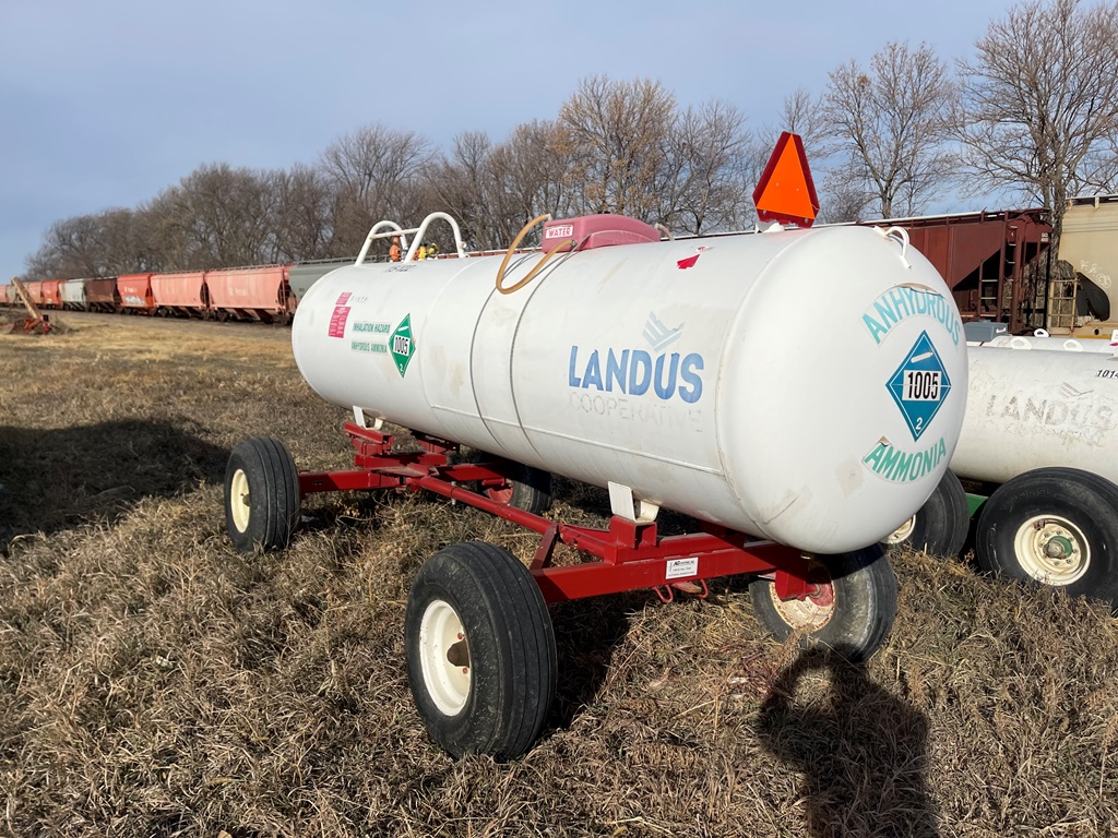NH3 Nurse Tank (DPA2370, Unit 15-122), 1450 gallon NH3 nurse tank, top front fill, fresh water tank, data plate, Ag Systems 5th wheel gear, 12.5L-15 flotation tires.
