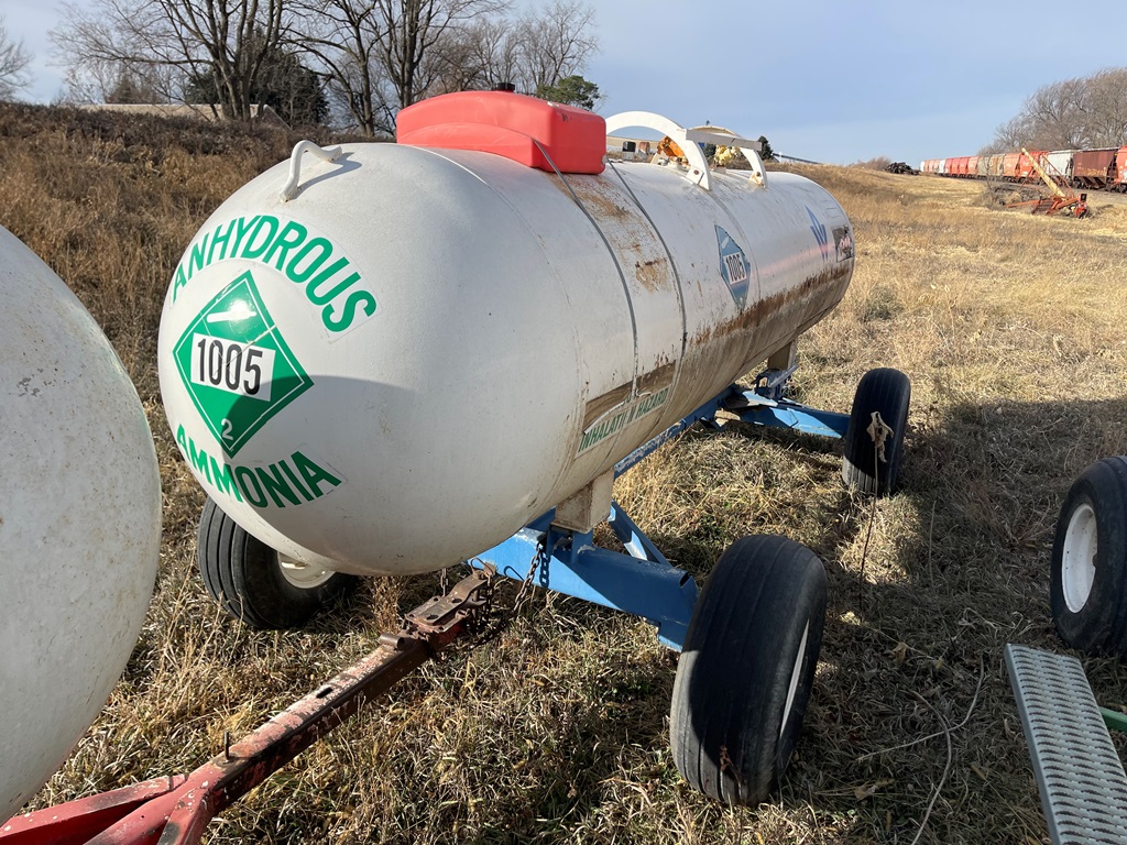 NH3 Nurse Tank (DPA2372, Unit 20-089), 1000 gallon NH3 nurse tank, center fill, fresh water tank, data plate, 8-15 VTP, 5th wheel running gear, 11L-15 flotation tires.