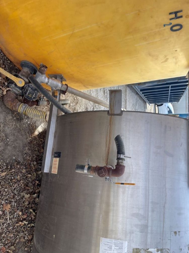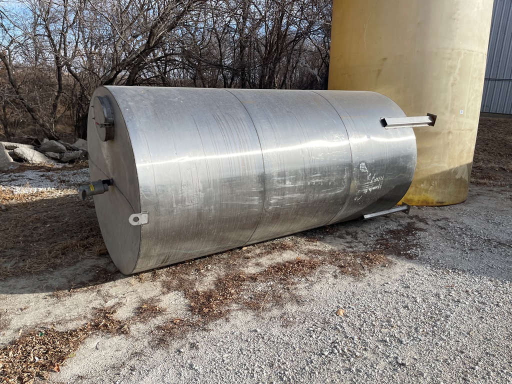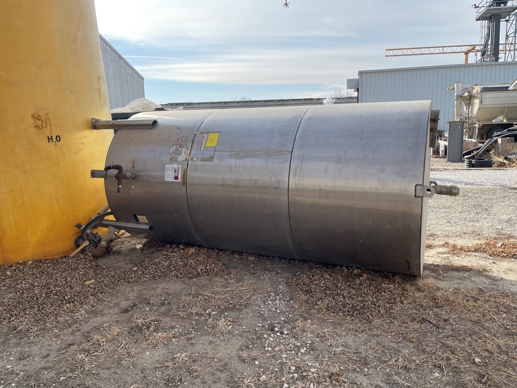 Stainless Steel Liquid Tank (DPA2379), Approx. 2,500 gallon vertical stainless steel liquid tank, stainless steel stands.