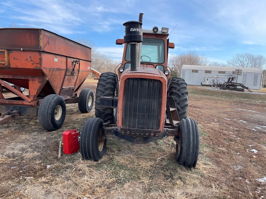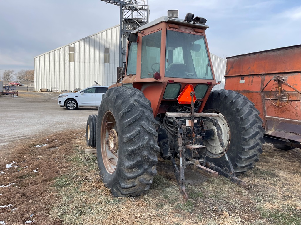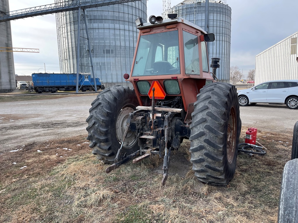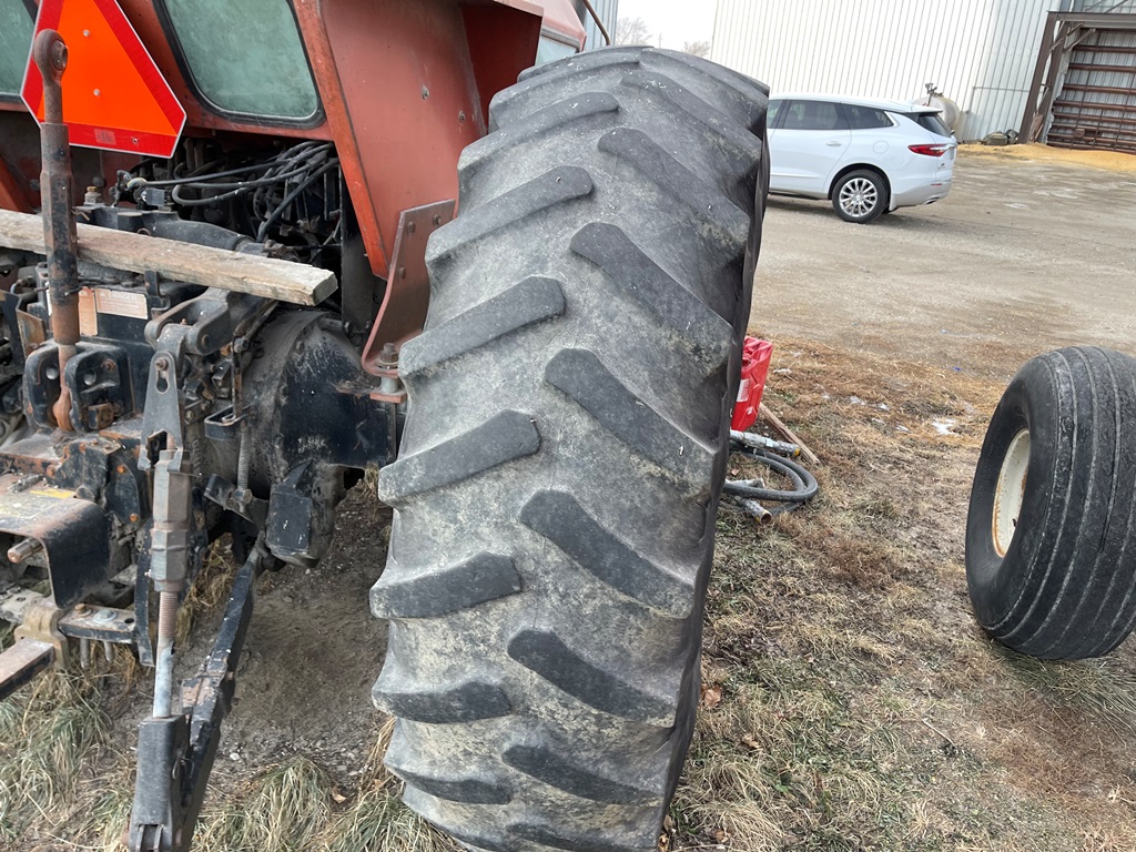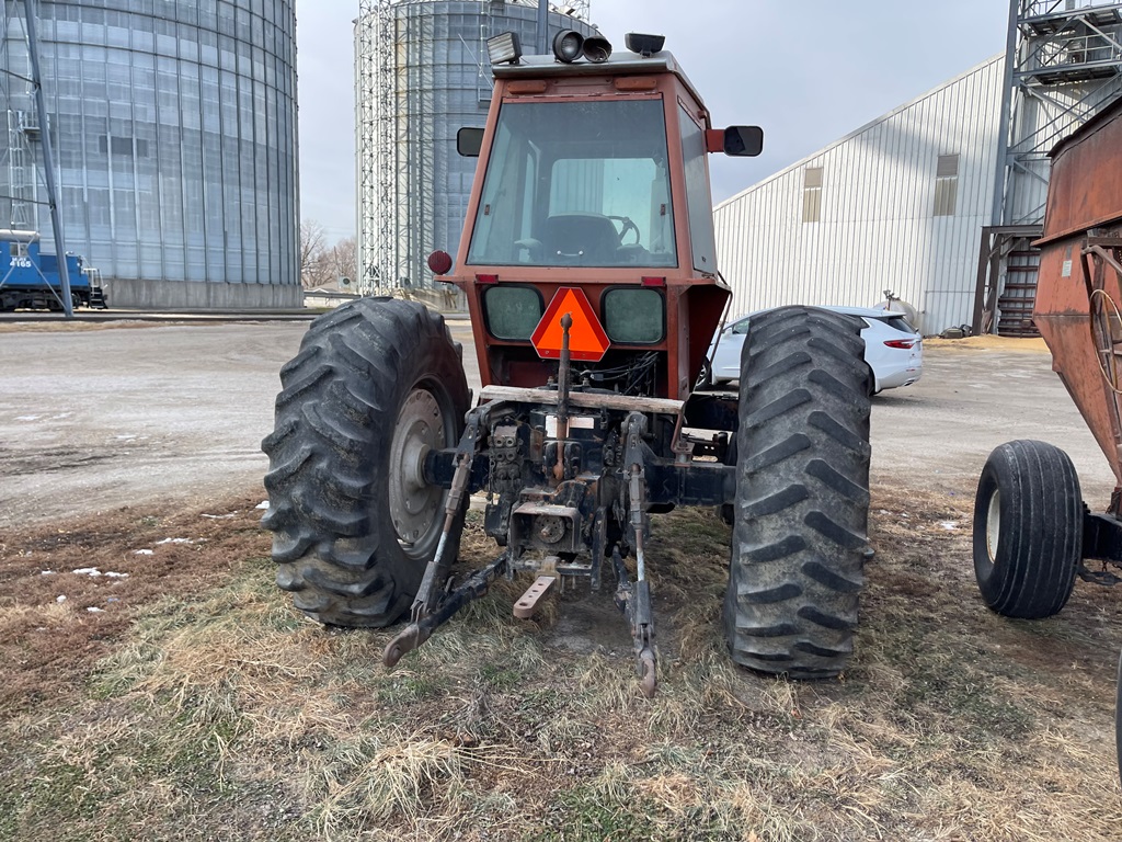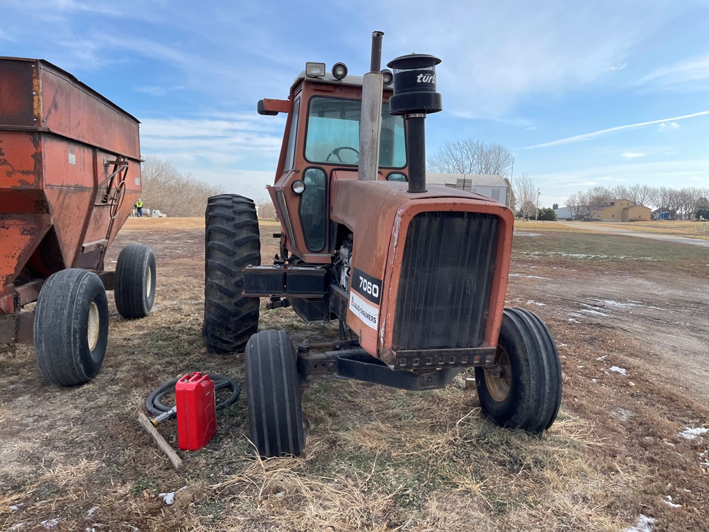 Allis - Chalmers 7060 Tractor (DPA2393), Wide front, diesel engine, cab, lights, PTO, 3-point, 3 port hydraulics, 11.00-16 front tires, 20.8R38 rear tires, shows 1,820 hours.