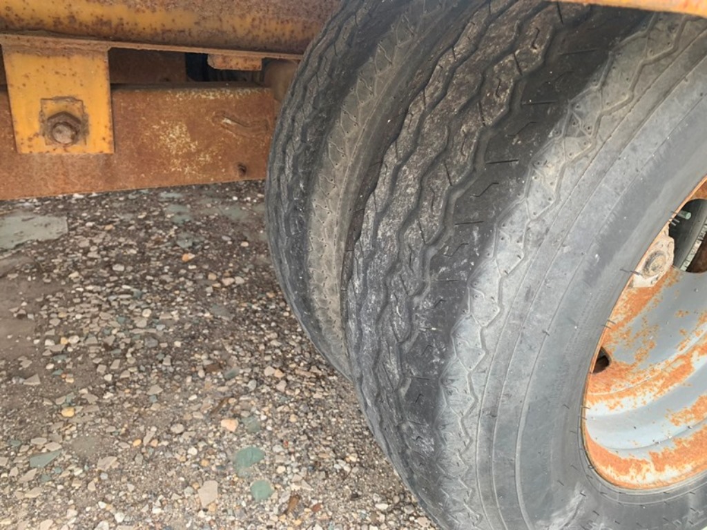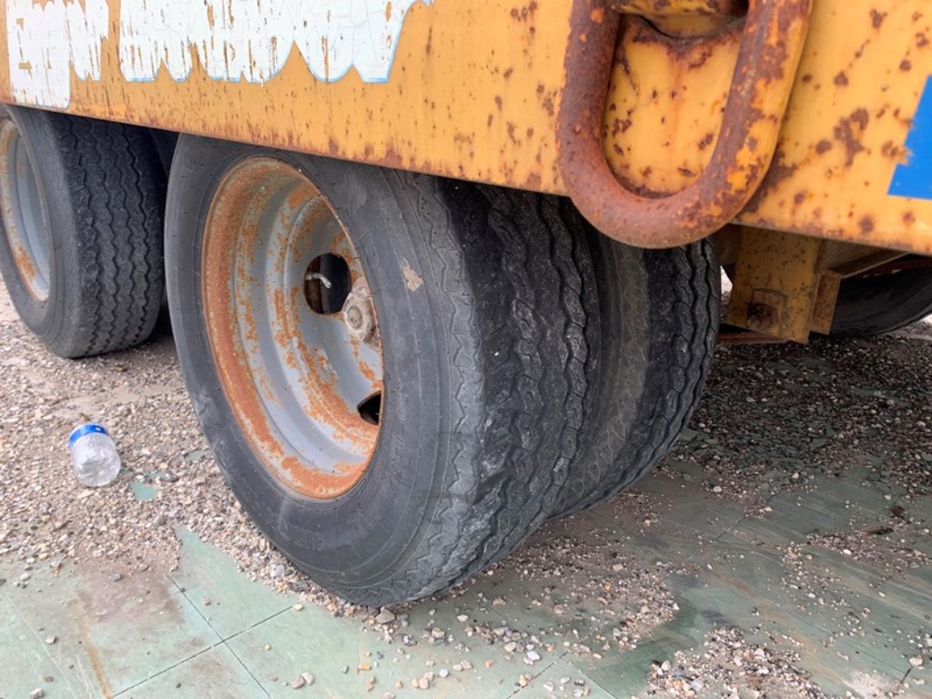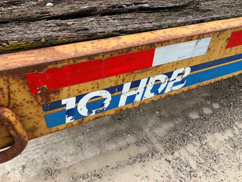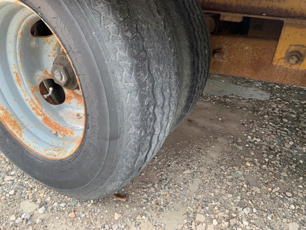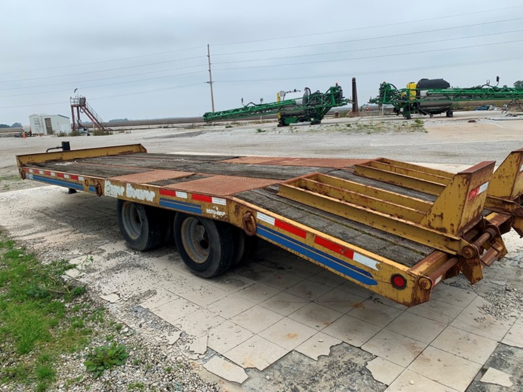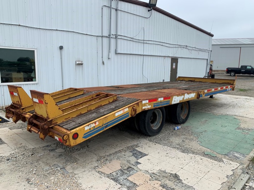 1998 Eager Beaver Trailer (CP3202) Unit 47205, 1998 Eager Beaver model 10HDB Hi-Tensile flatbed trailer, wood deck, beaver tail, fold down ramps, D - rings, pintal hitch, tandem axle, dual wheels, 8.75-16.5 tires.