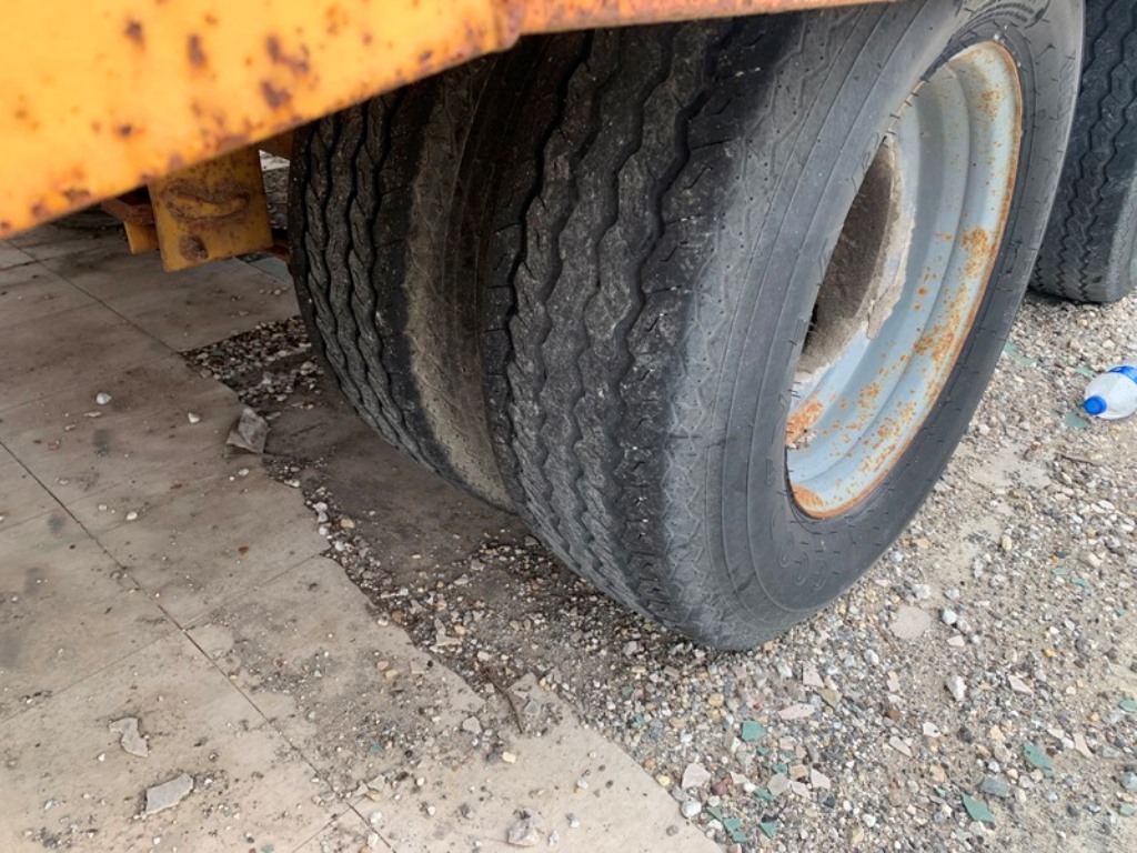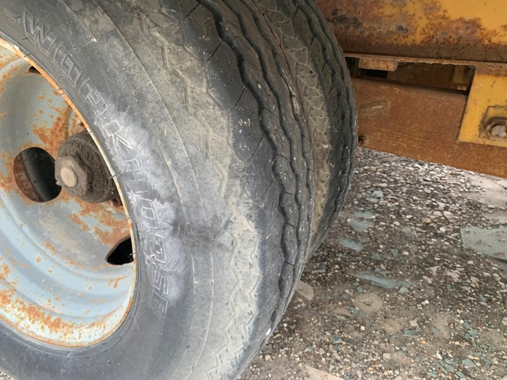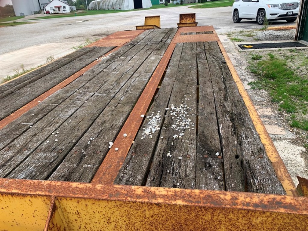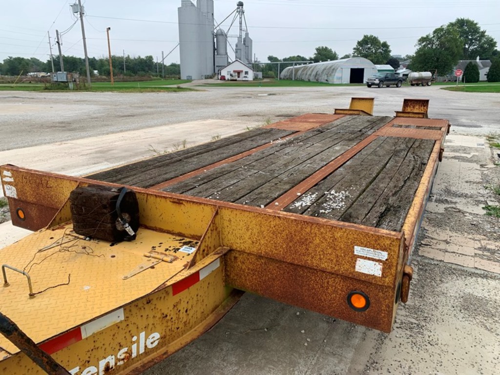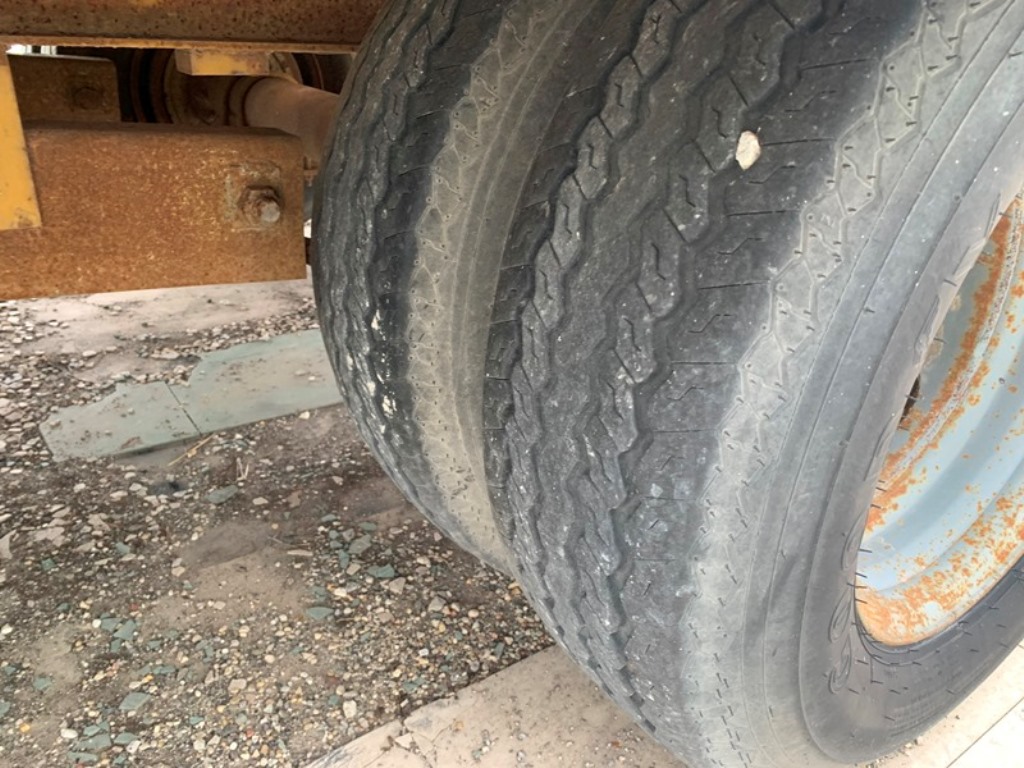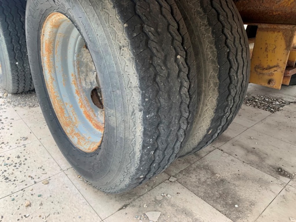 1998 Eager Beaver Trailer (CP3202) Unit 47205, 1998 Eager Beaver model 10HDB Hi-Tensile flatbed trailer, wood deck, beaver tail, fold down ramps, D - rings, pintal hitch, tandem axle, dual wheels, 8.75-16.5 tires.