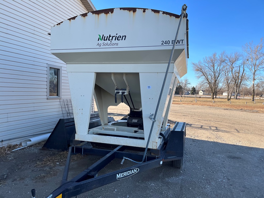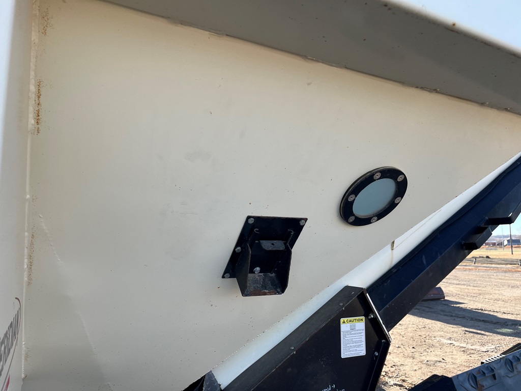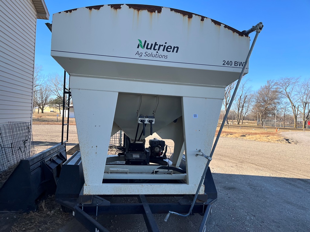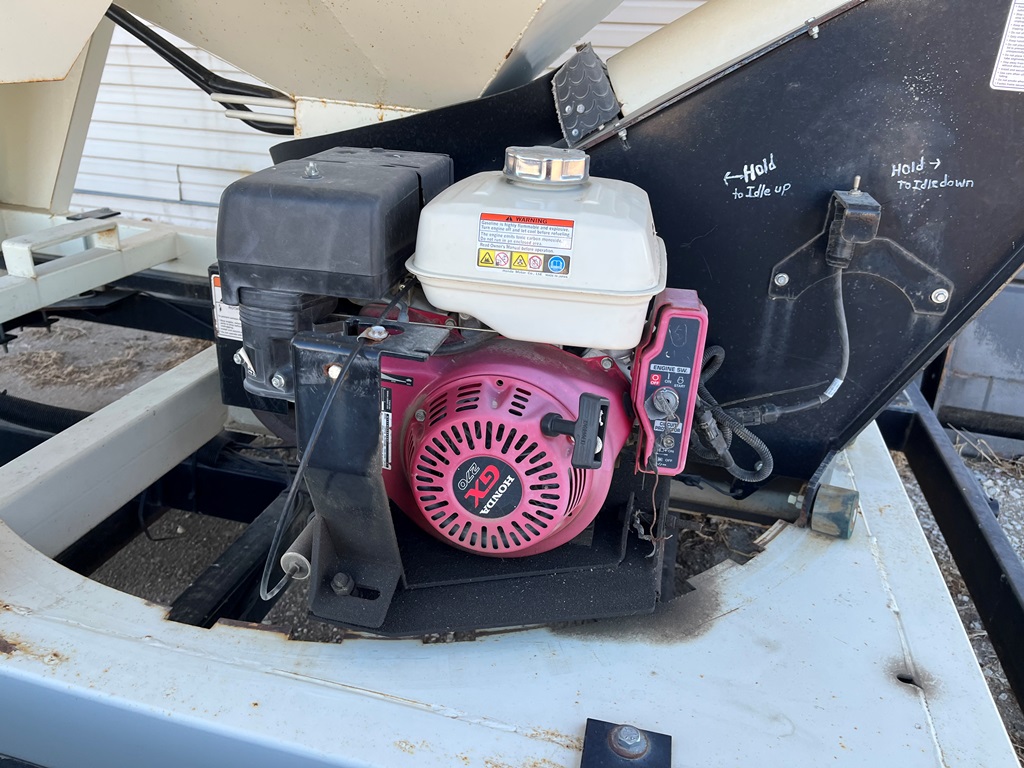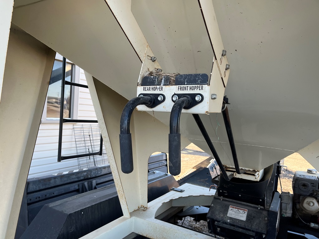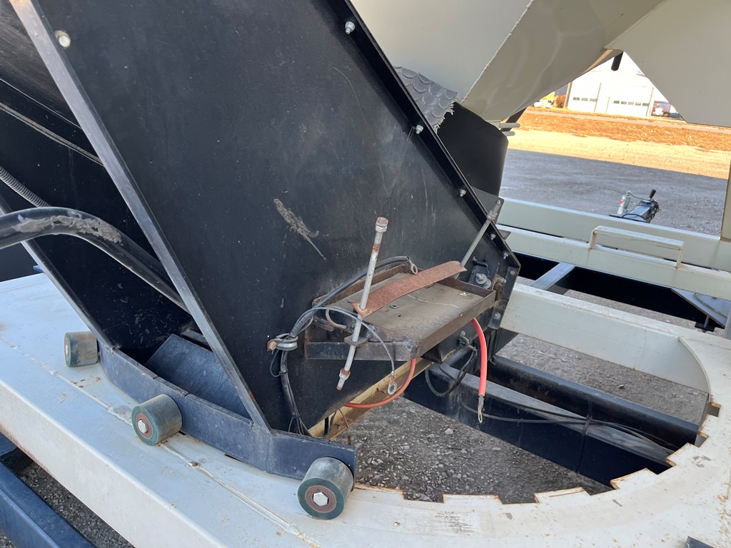 2003 Friesen Seed Tender (DR3384 Unit 88623), model 240BWT Seed Express seed tender, self contained hydraulics, gas engine w/electric start, 2 compartment, rear swing discharge conveyor, sight glass windows, sample door, roll over tarp, 235/80R16 tires.