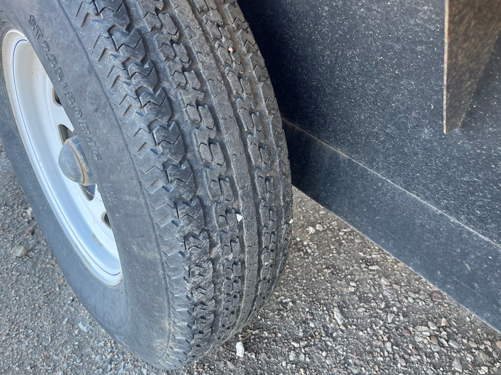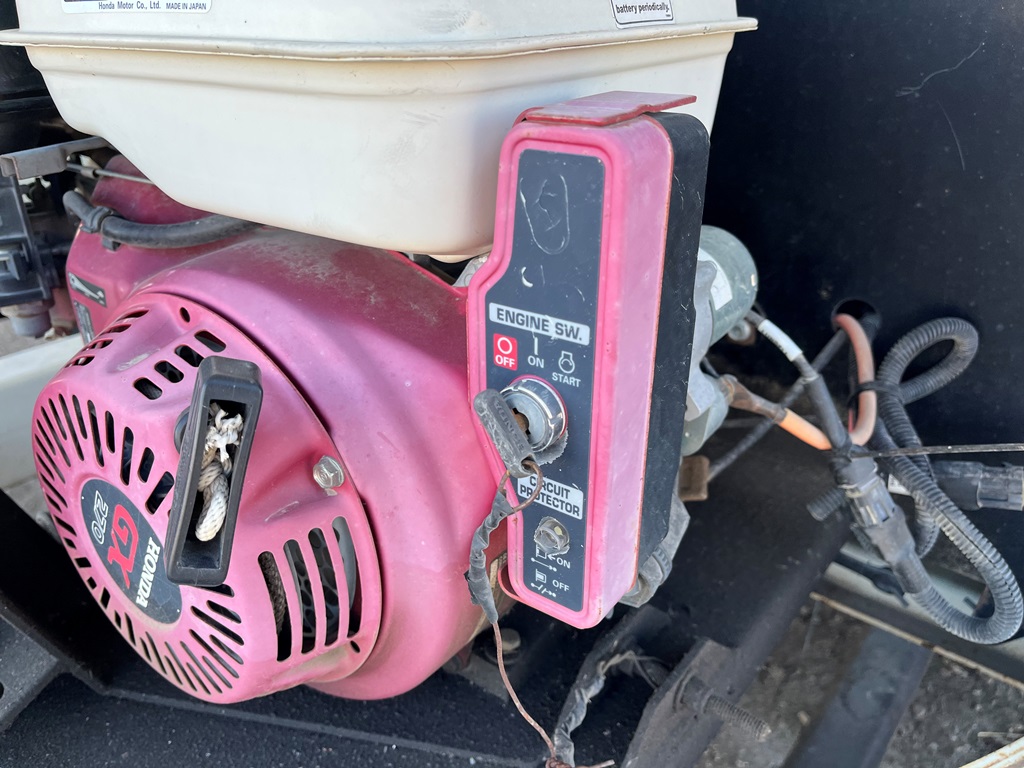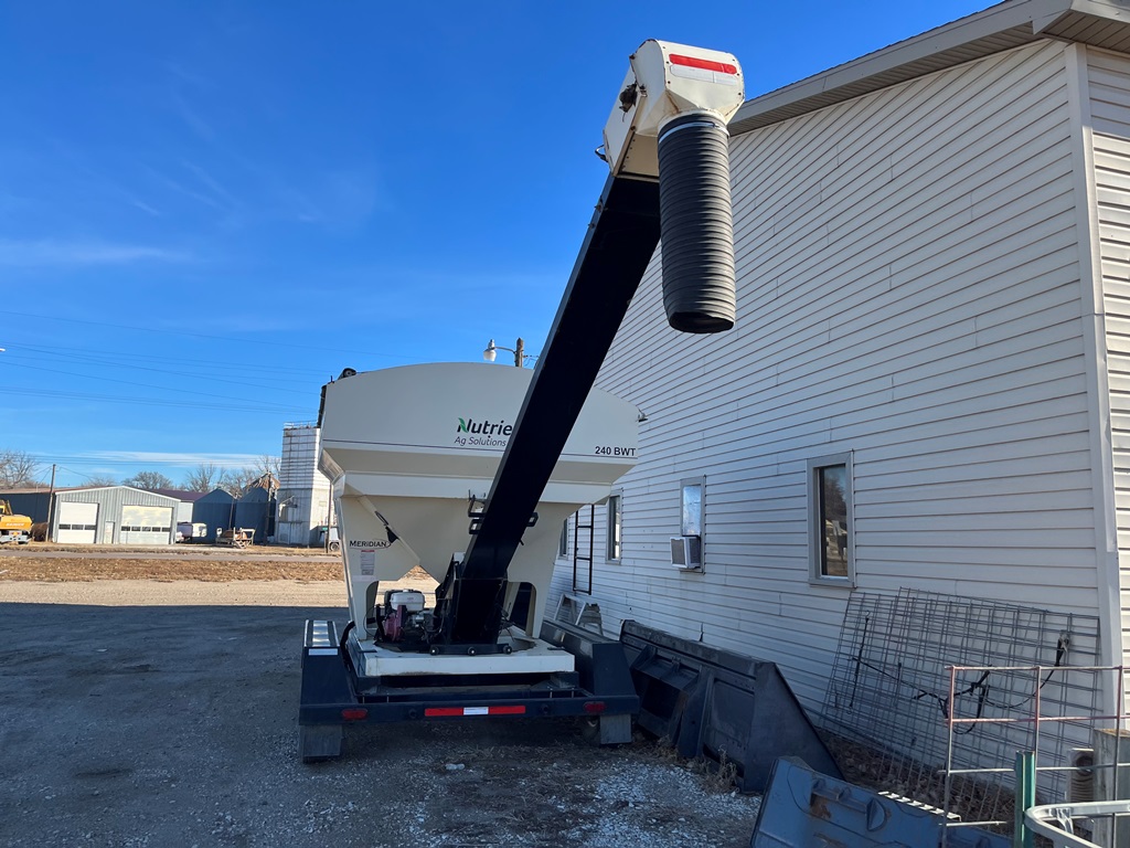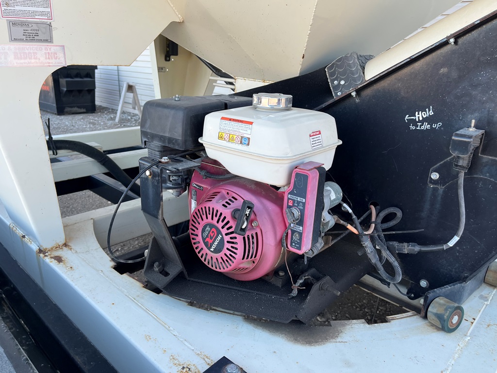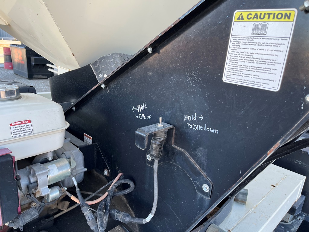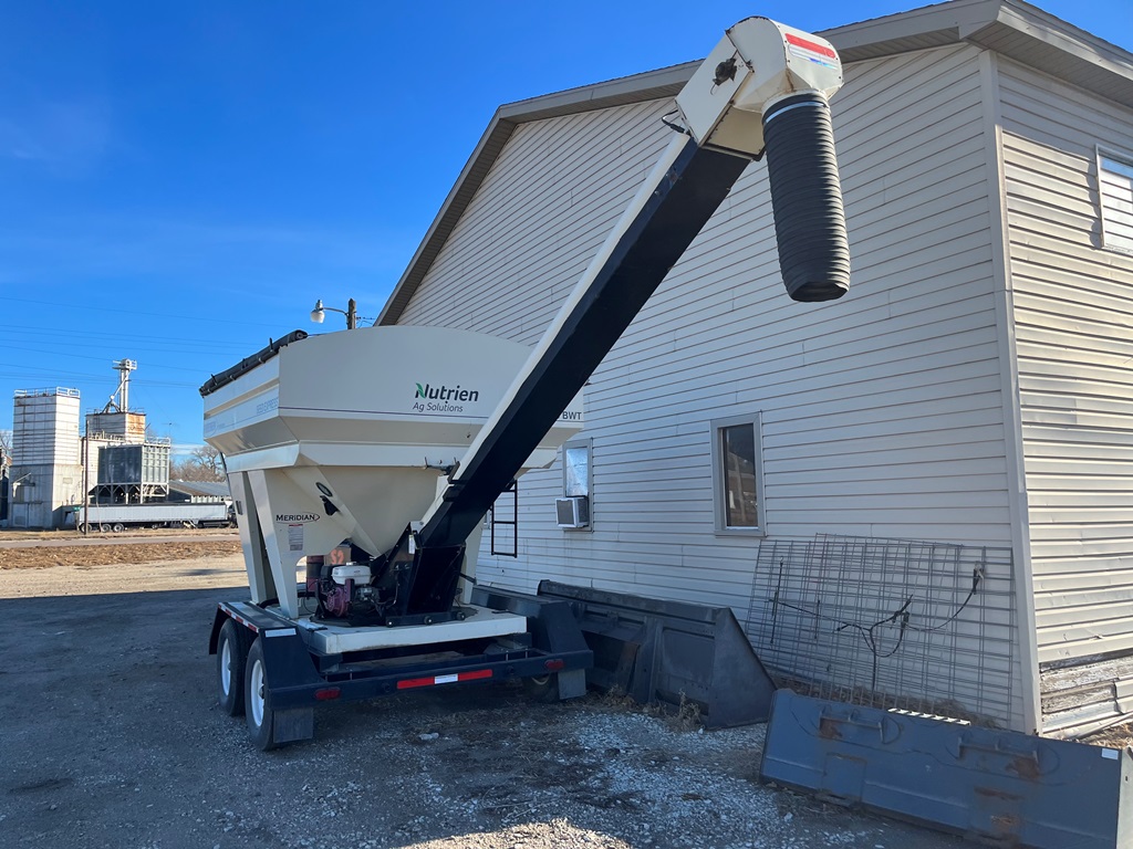 2003 Friesen Seed Tender (DR3384 Unit 88623), model 240BWT Seed Express seed tender, self contained hydraulics, gas engine w/electric start, 2 compartment, rear swing discharge conveyor, sight glass windows, sample door, roll over tarp, 235/80R16 tires.