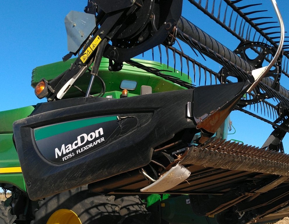 2014 Mac Don FD75-S Flex Draper Head (ED3122), 2014 Mac Don FD75-S flex draper head, 35 foot, new center belt, excellent fingers, extra sickle, field ready, has headsight and flip over reel.