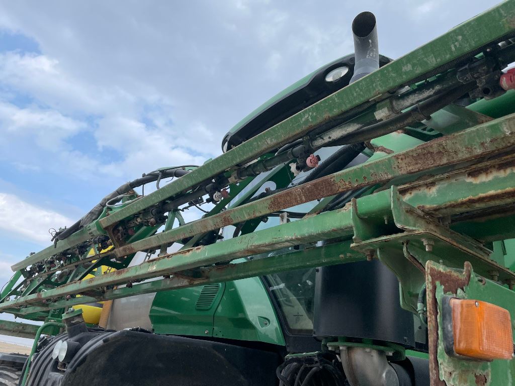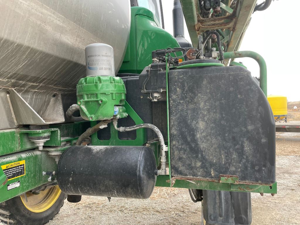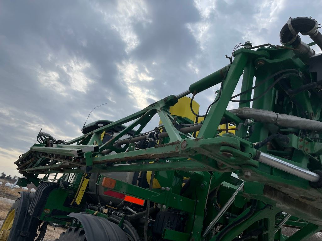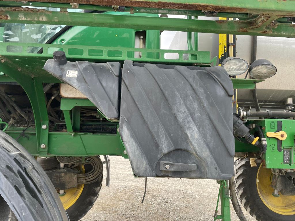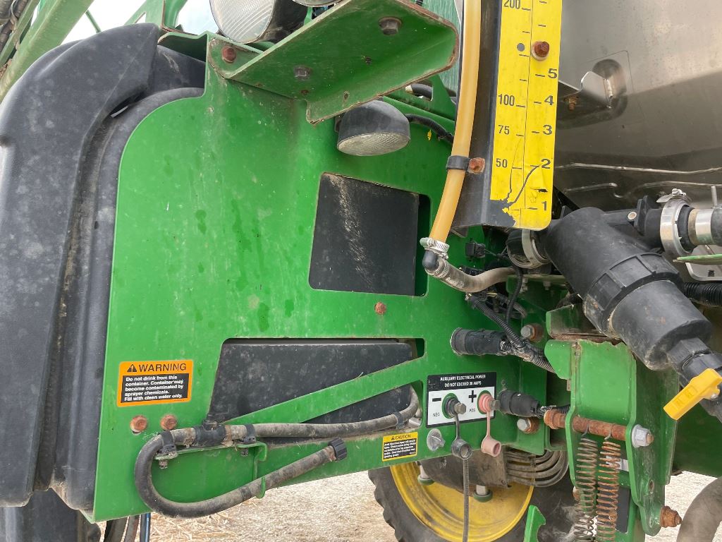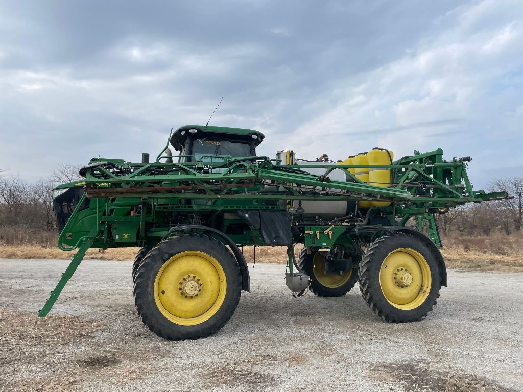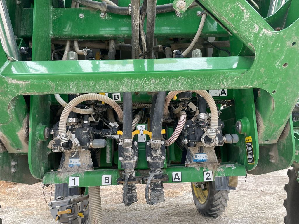 2015 John Deere R4038 Sprayer (GP2377), John Deere diesel engine (S/N RG6090U012331, hydrostatic transmission, air conditioning, heat, Am/Fm radio, 1000 gallon stainless steel liquid system, 100' boom, rear poly fresh water tank, stainless steel chemical inductor, 4 - Direct poly injection tanks, 2 - Raven Sidekick Pro pumps, Michelin Spraybib VF 380/90R46 tires, fenders, John Deere monitor, shows 3,279 hours.