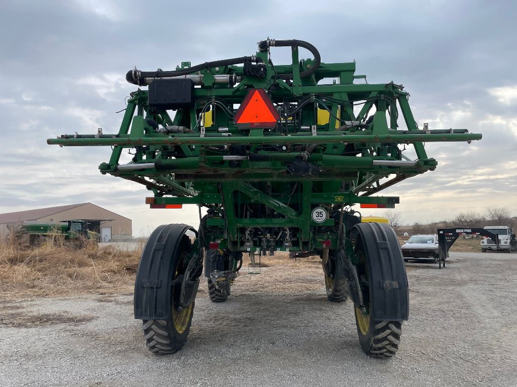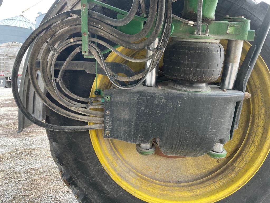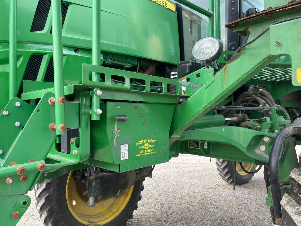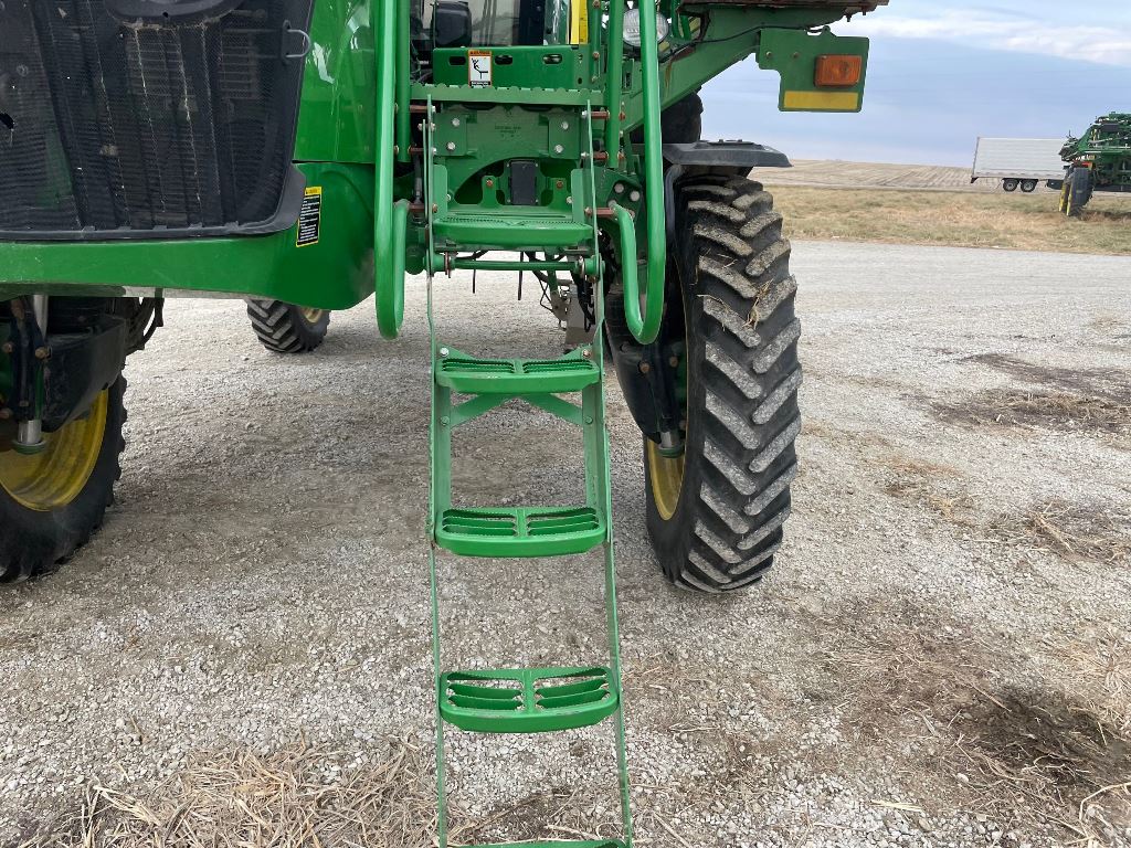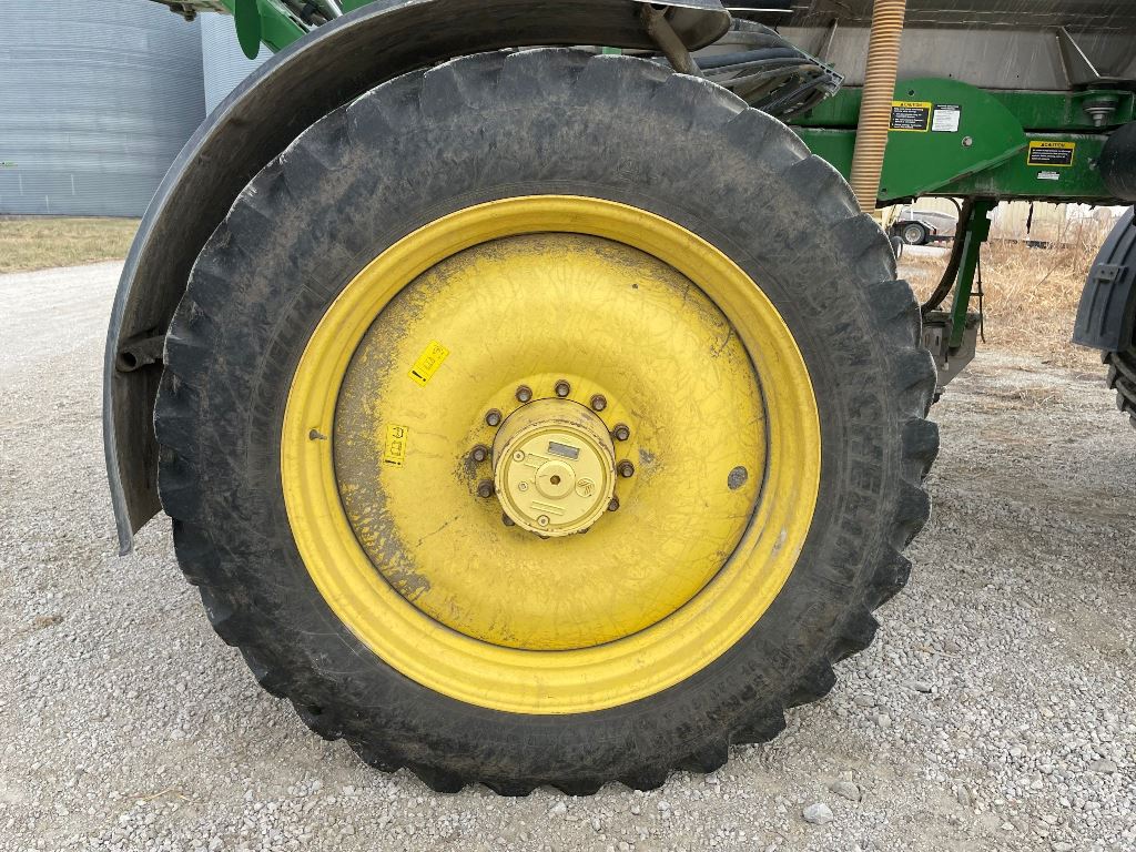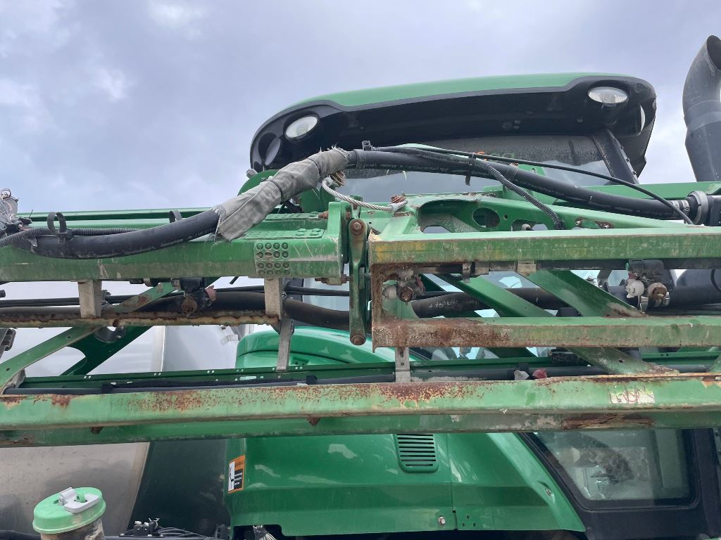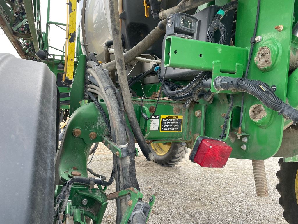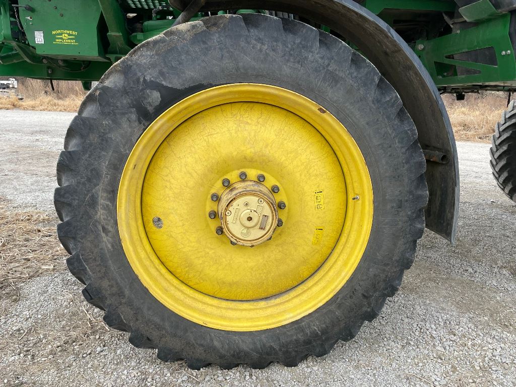 2015 John Deere R4038 Sprayer (GP2377), John Deere diesel engine (S/N RG6090U012331, hydrostatic transmission, air conditioning, heat, Am/Fm radio, 1000 gallon stainless steel liquid system, 100' boom, rear poly fresh water tank, stainless steel chemical inductor, 4 - Direct poly injection tanks, 2 - Raven Sidekick Pro pumps, Michelin Spraybib VF 380/90R46 tires, fenders, John Deere monitor, shows 3,279 hours.