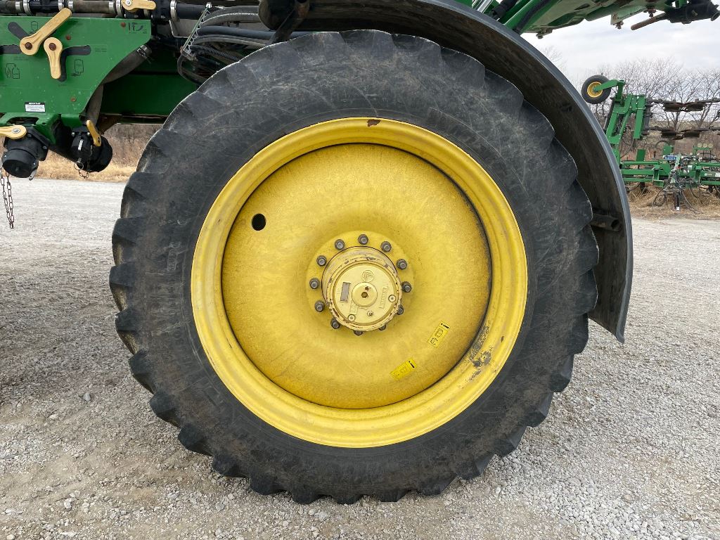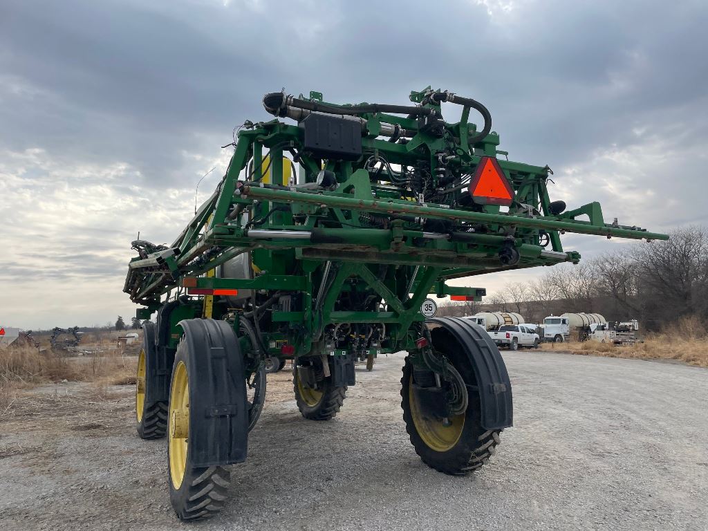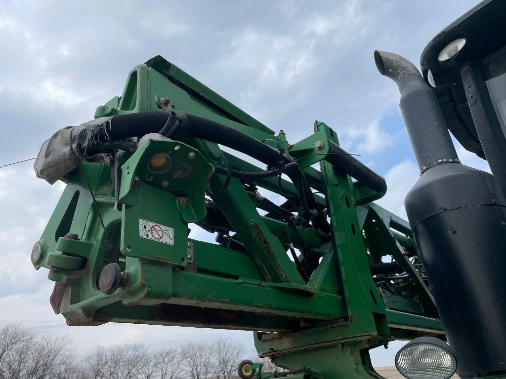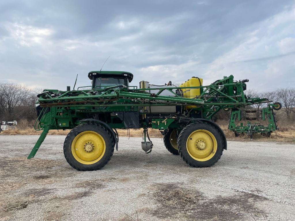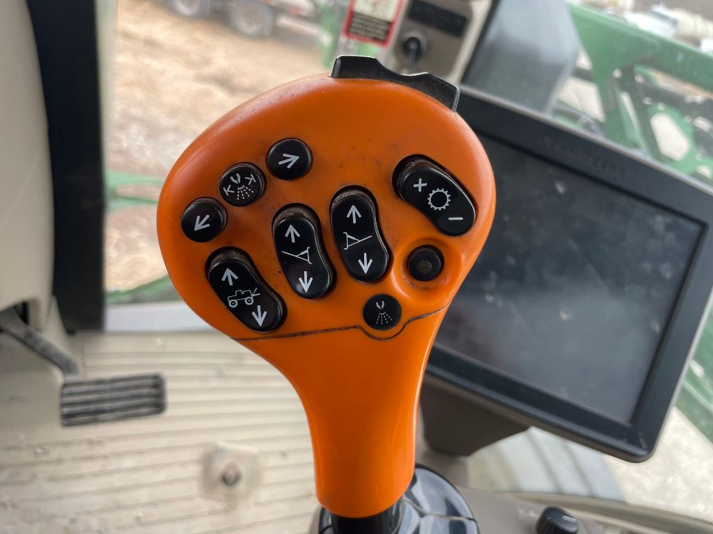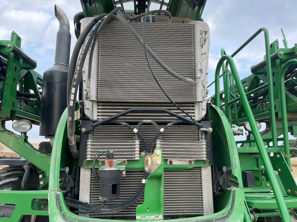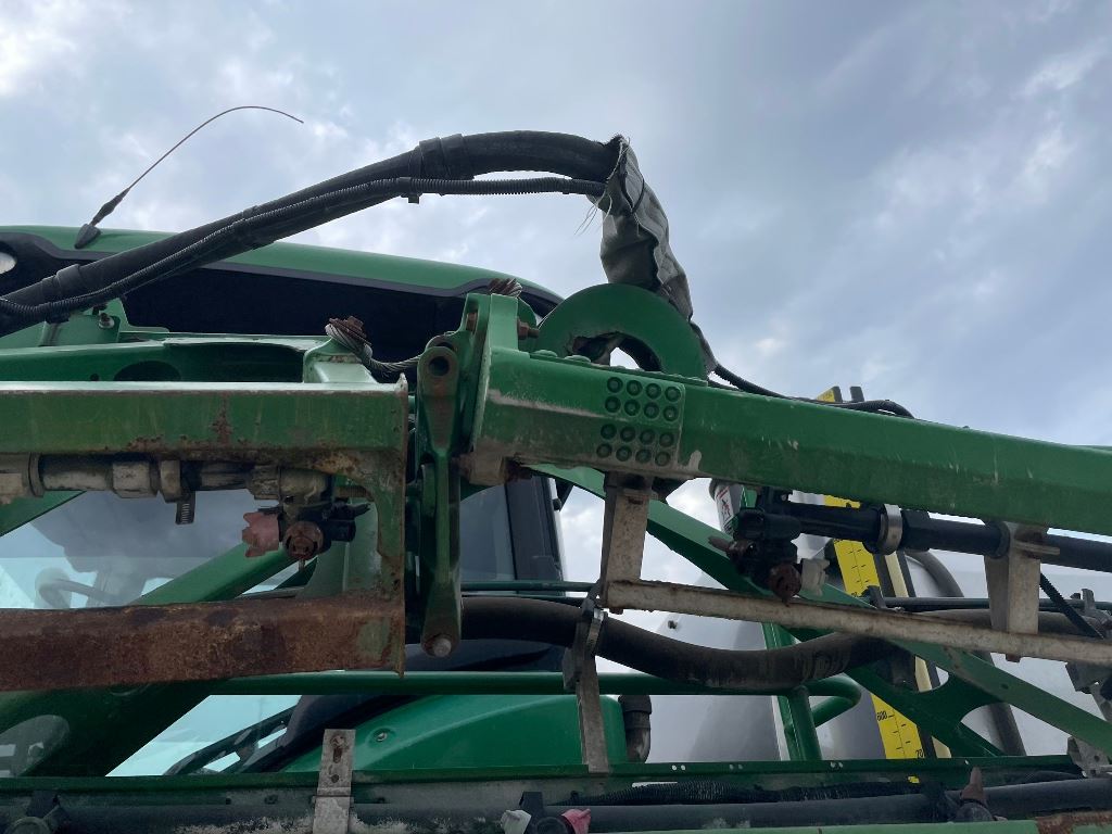 2015 John Deere R4038 Sprayer (GP2377), John Deere diesel engine (S/N RG6090U012331, hydrostatic transmission, air conditioning, heat, Am/Fm radio, 1000 gallon stainless steel liquid system, 100' boom, rear poly fresh water tank, stainless steel chemical inductor, 4 - Direct poly injection tanks, 2 - Raven Sidekick Pro pumps, Michelin Spraybib VF 380/90R46 tires, fenders, John Deere monitor, shows 3,279 hours.