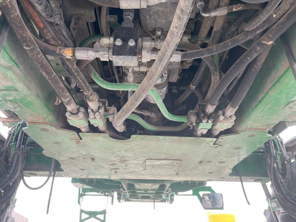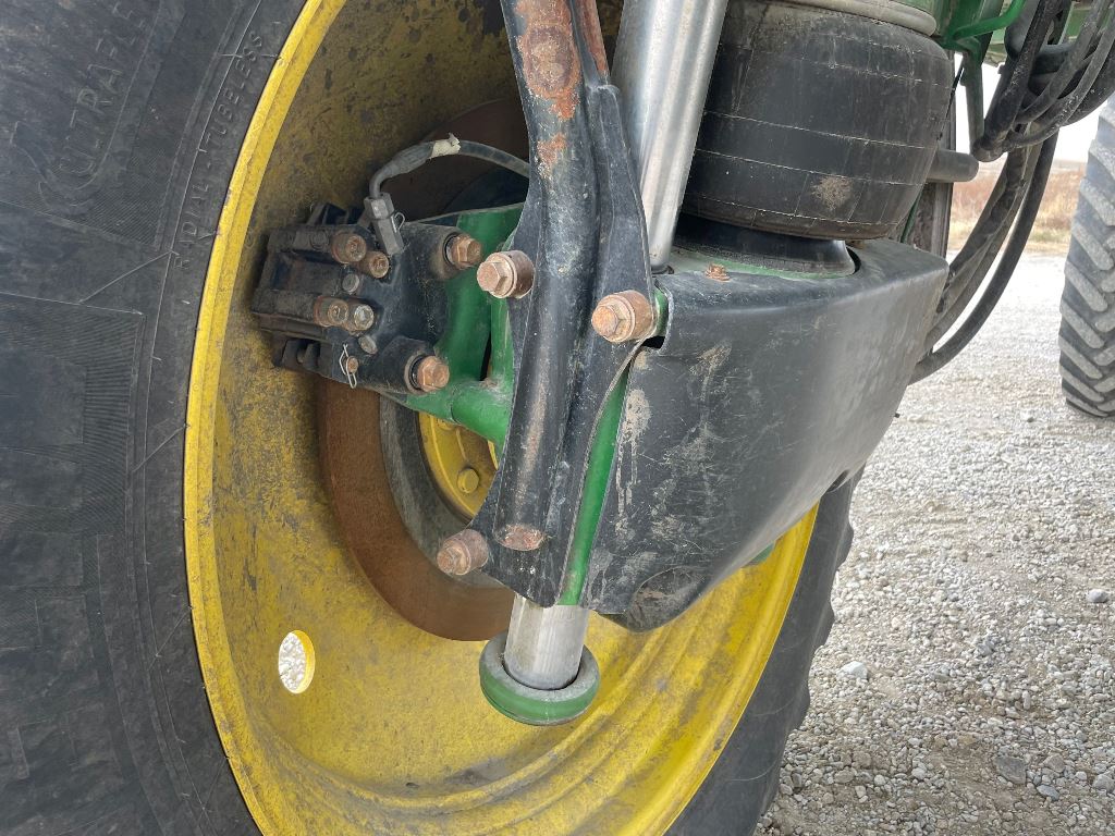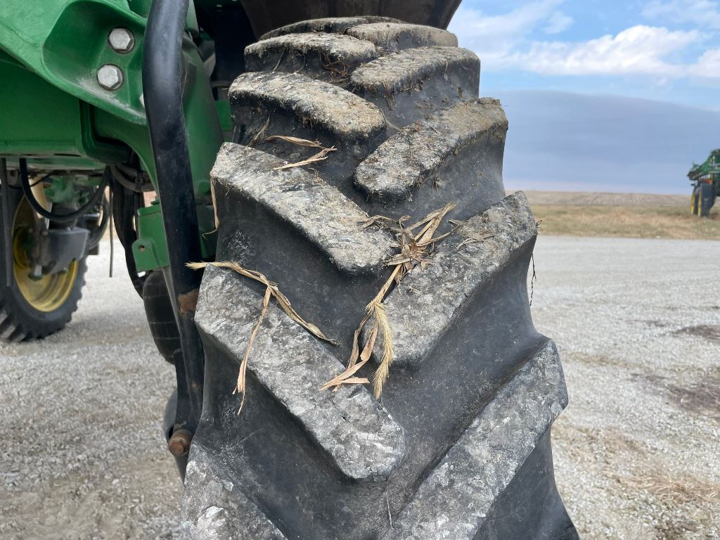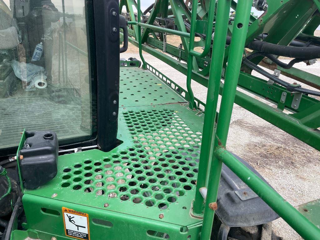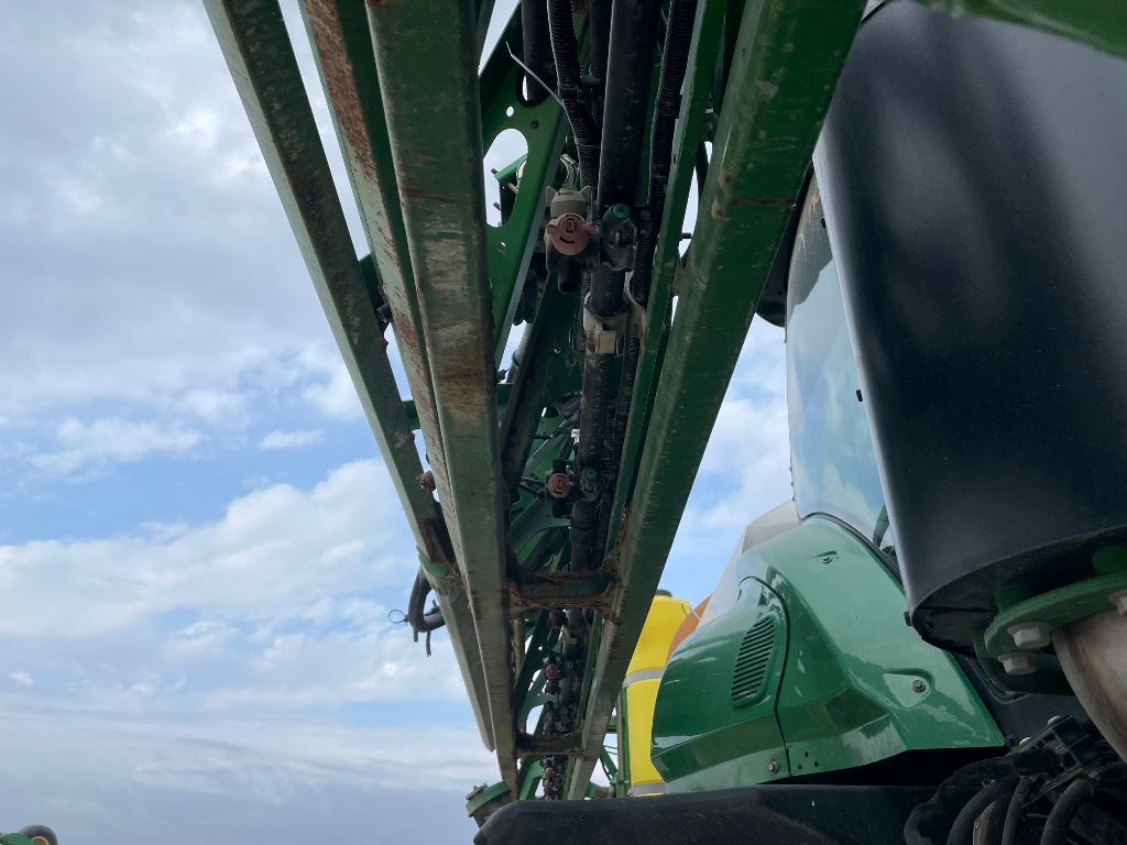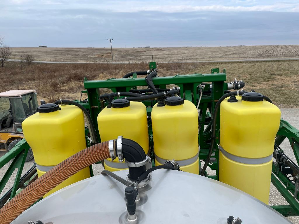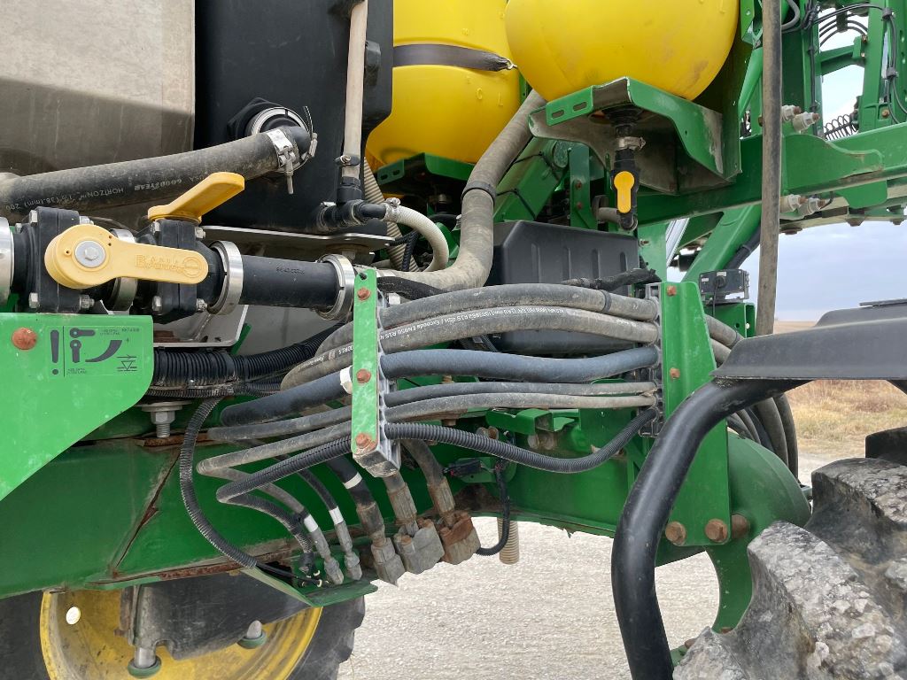 2015 John Deere R4038 Sprayer (GP2377), John Deere diesel engine (S/N RG6090U012331, hydrostatic transmission, air conditioning, heat, Am/Fm radio, 1000 gallon stainless steel liquid system, 100' boom, rear poly fresh water tank, stainless steel chemical inductor, 4 - Direct poly injection tanks, 2 - Raven Sidekick Pro pumps, Michelin Spraybib VF 380/90R46 tires, fenders, John Deere monitor, shows 3,279 hours.