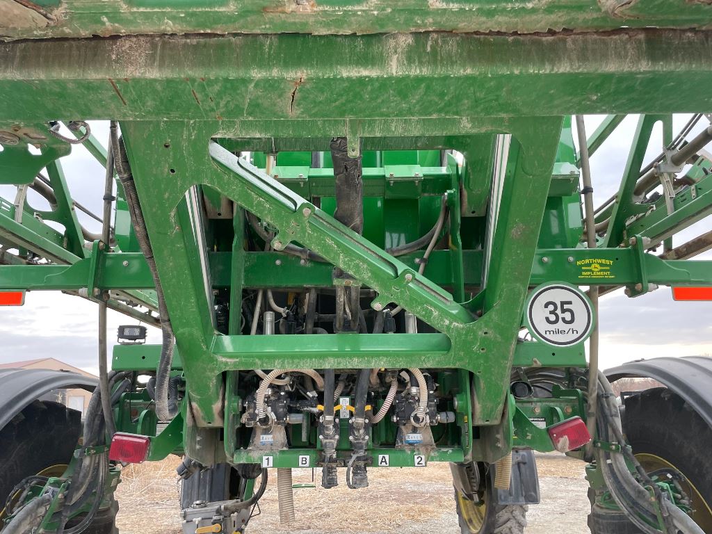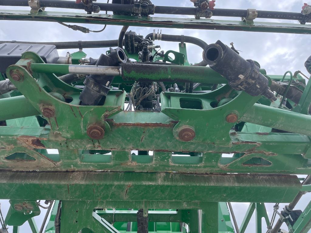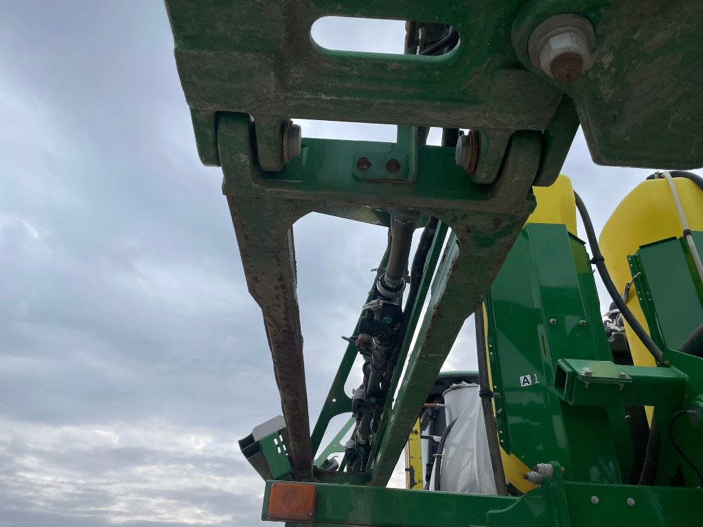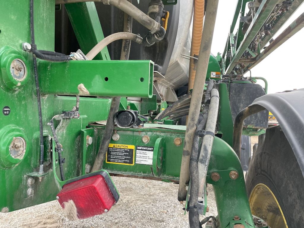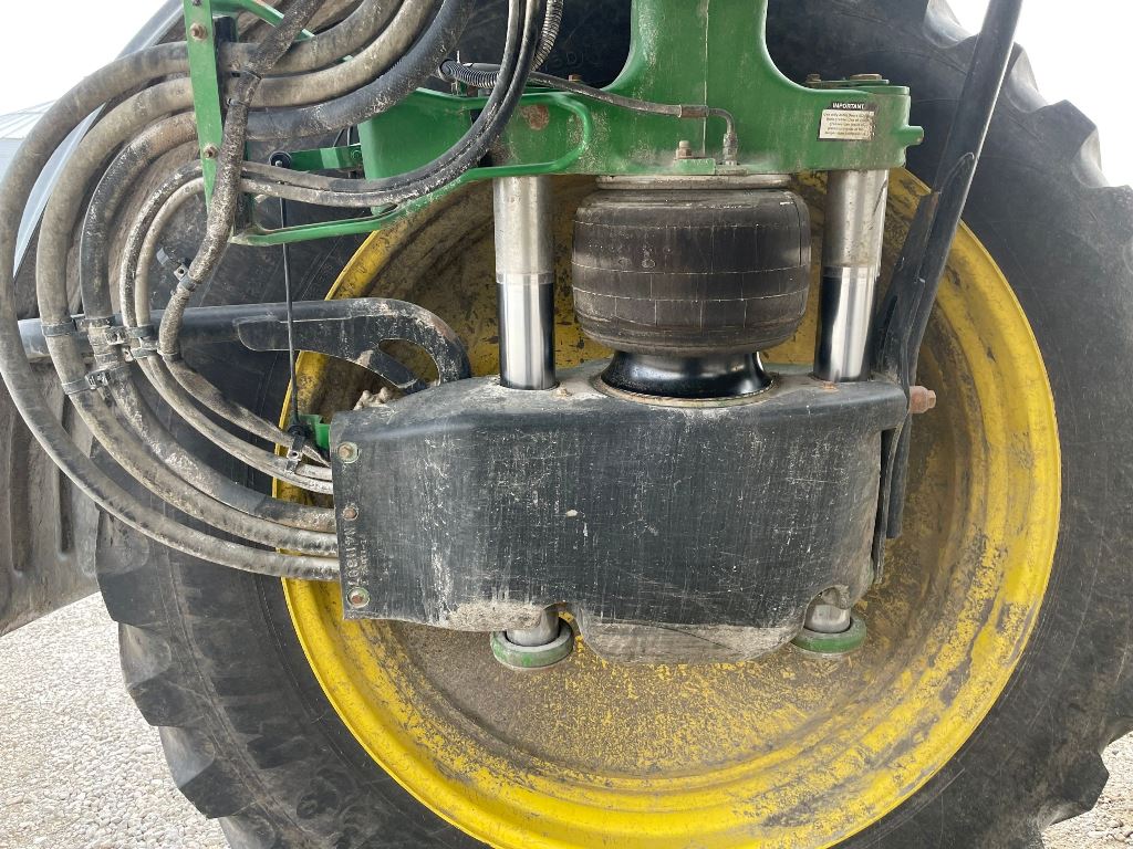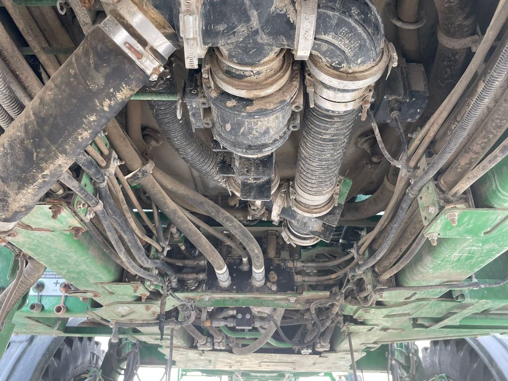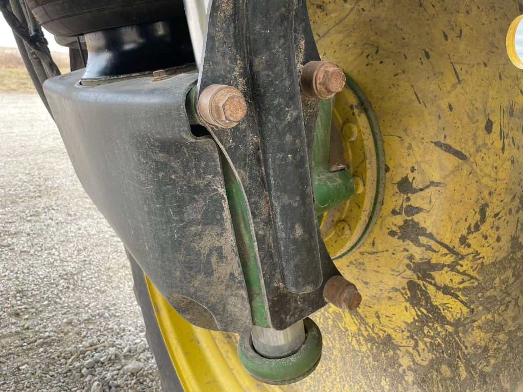 2015 John Deere R4038 Sprayer (GP2377), John Deere diesel engine (S/N RG6090U012331, hydrostatic transmission, air conditioning, heat, Am/Fm radio, 1000 gallon stainless steel liquid system, 100' boom, rear poly fresh water tank, stainless steel chemical inductor, 4 - Direct poly injection tanks, 2 - Raven Sidekick Pro pumps, Michelin Spraybib VF 380/90R46 tires, fenders, John Deere monitor, shows 3,279 hours.