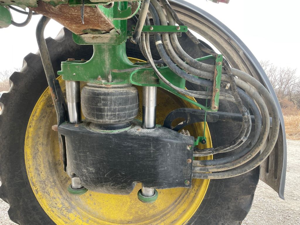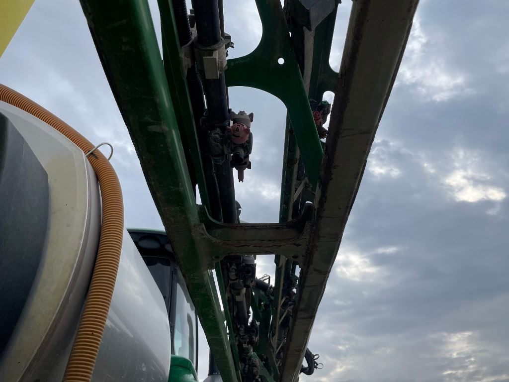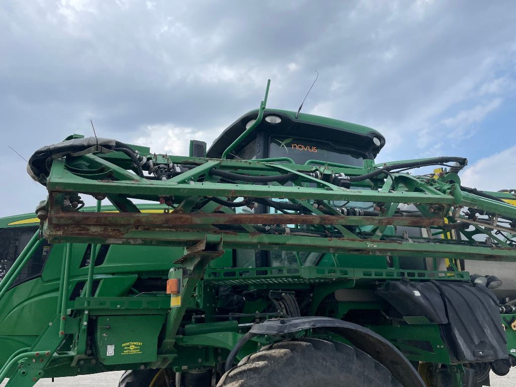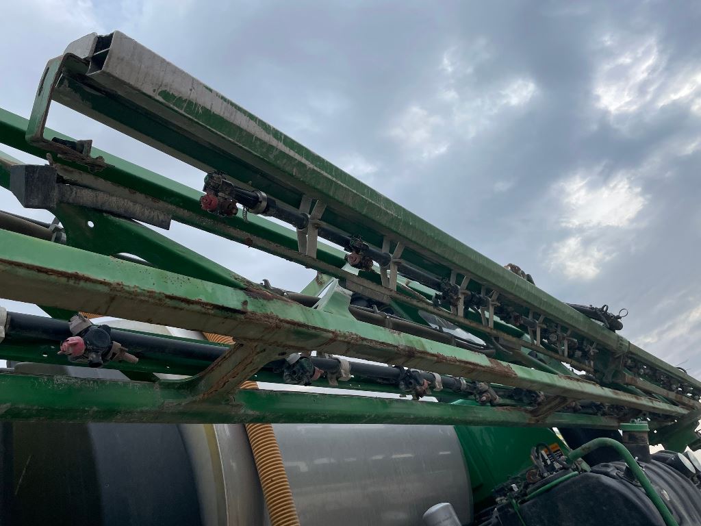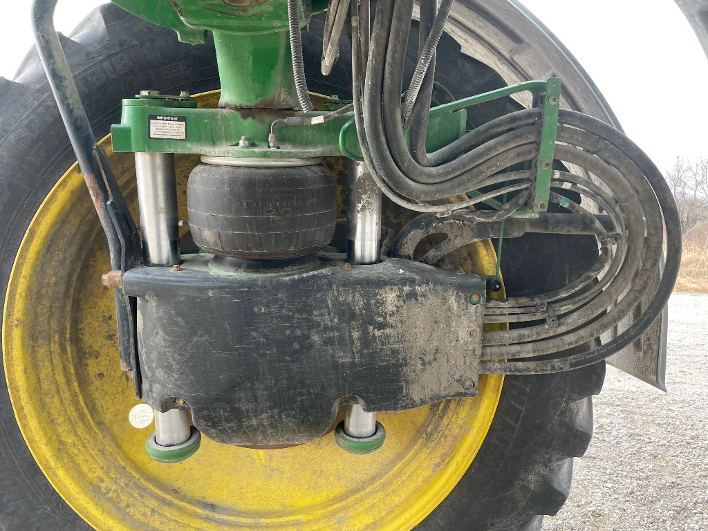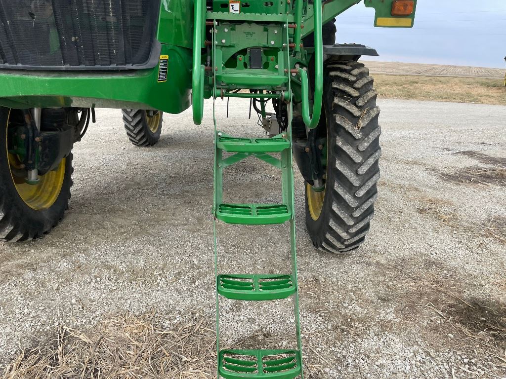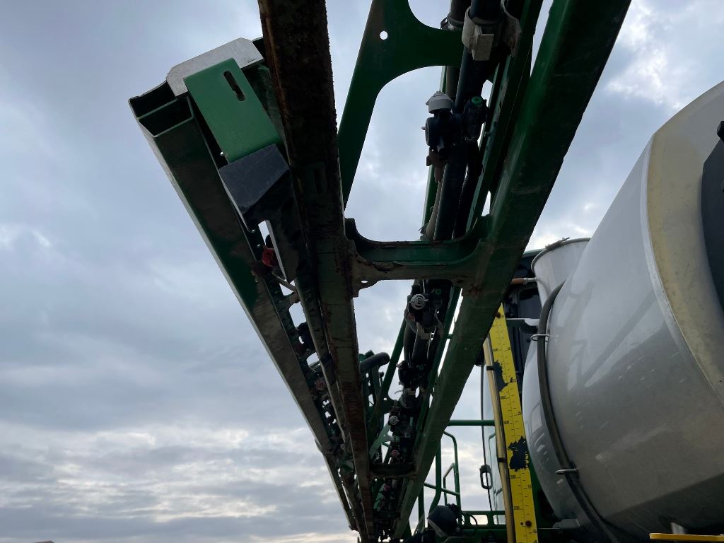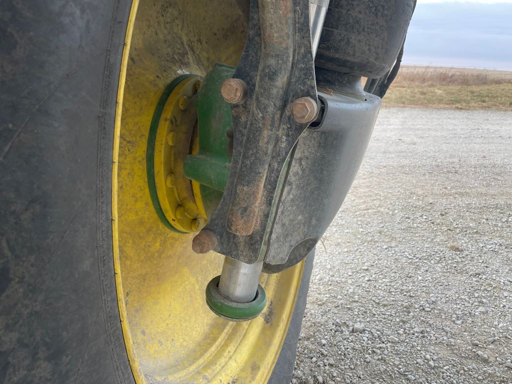 2015 John Deere R4038 Sprayer (GP2377), John Deere diesel engine (S/N RG6090U012331, hydrostatic transmission, air conditioning, heat, Am/Fm radio, 1000 gallon stainless steel liquid system, 100' boom, rear poly fresh water tank, stainless steel chemical inductor, 4 - Direct poly injection tanks, 2 - Raven Sidekick Pro pumps, Michelin Spraybib VF 380/90R46 tires, fenders, John Deere monitor, shows 3,279 hours.