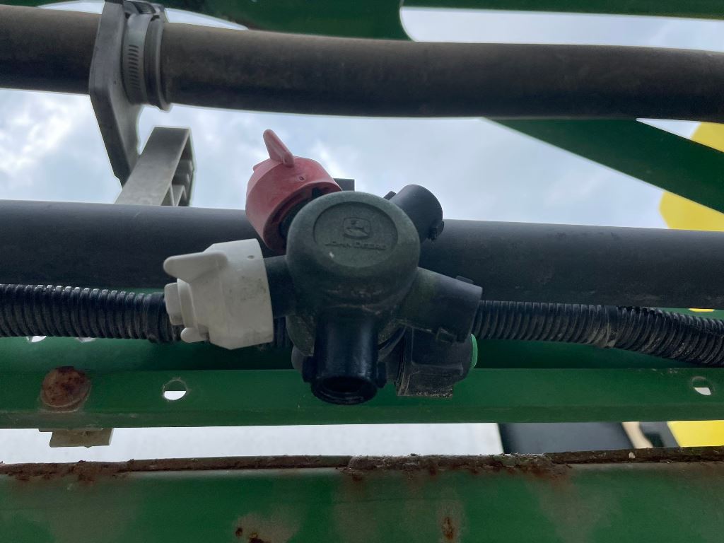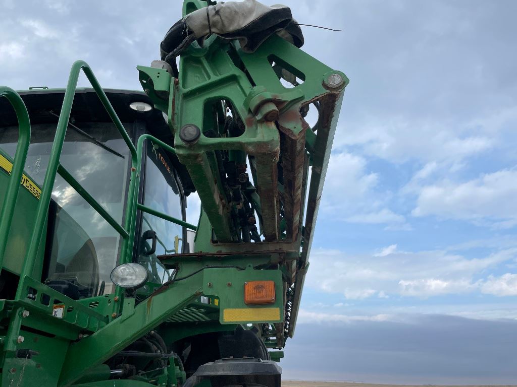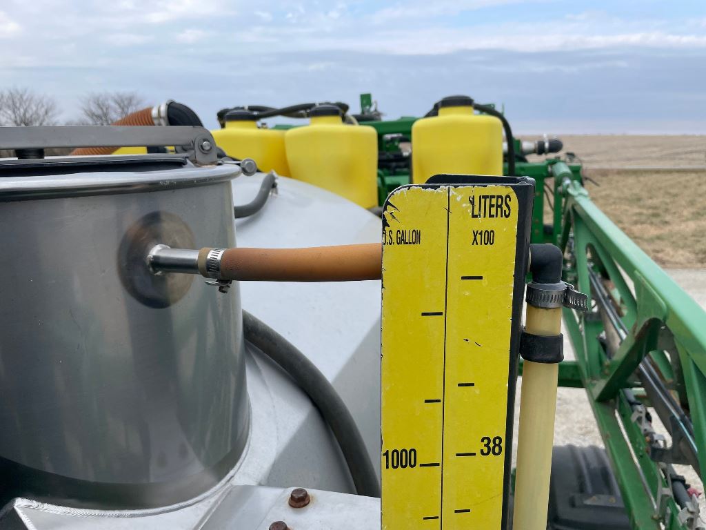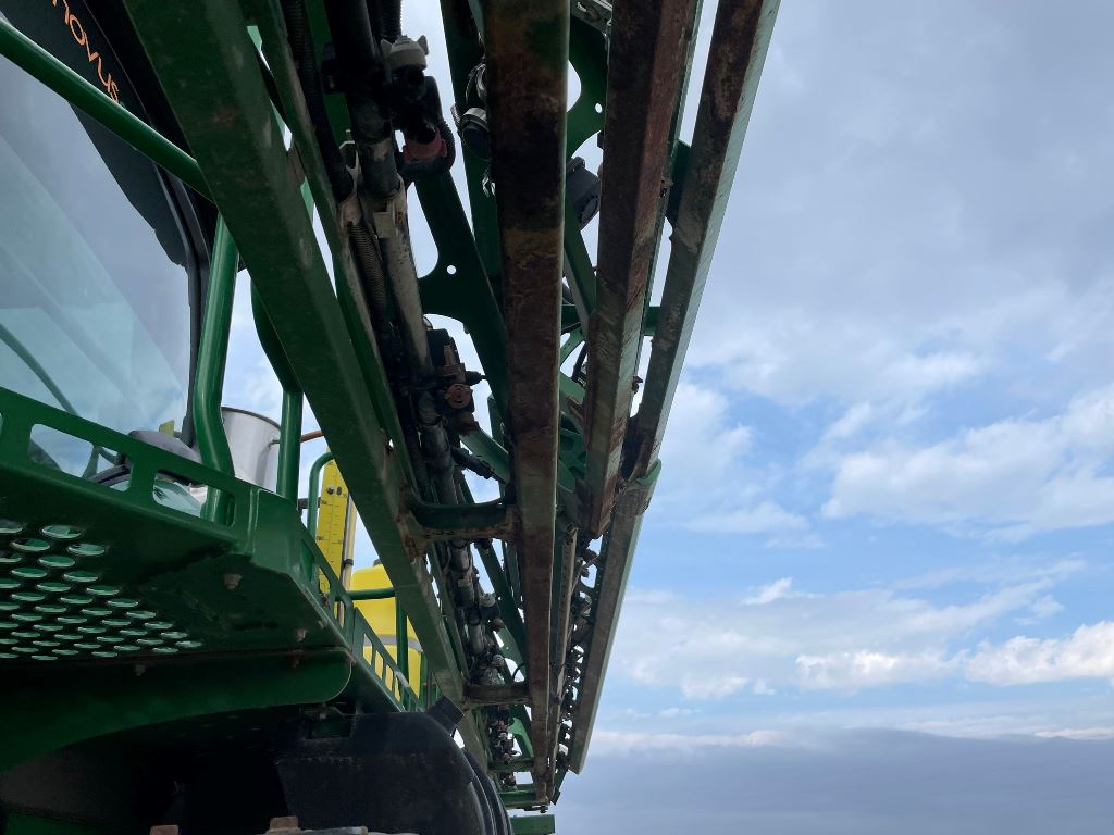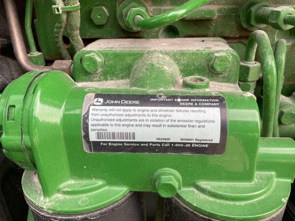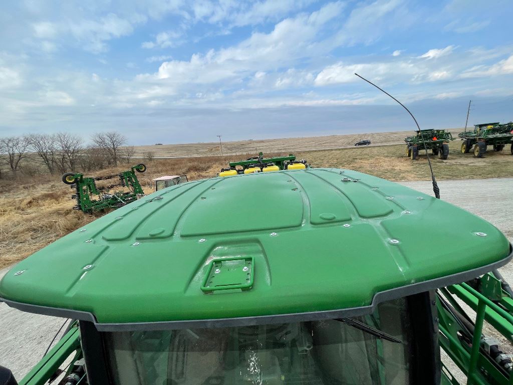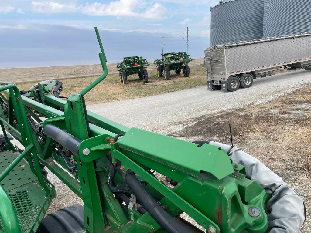 2015 John Deere R4038 Sprayer (GP2377), John Deere diesel engine (S/N RG6090U012331, hydrostatic transmission, air conditioning, heat, Am/Fm radio, 1000 gallon stainless steel liquid system, 100' boom, rear poly fresh water tank, stainless steel chemical inductor, 4 - Direct poly injection tanks, 2 - Raven Sidekick Pro pumps, Michelin Spraybib VF 380/90R46 tires, fenders, John Deere monitor, shows 3,279 hours.