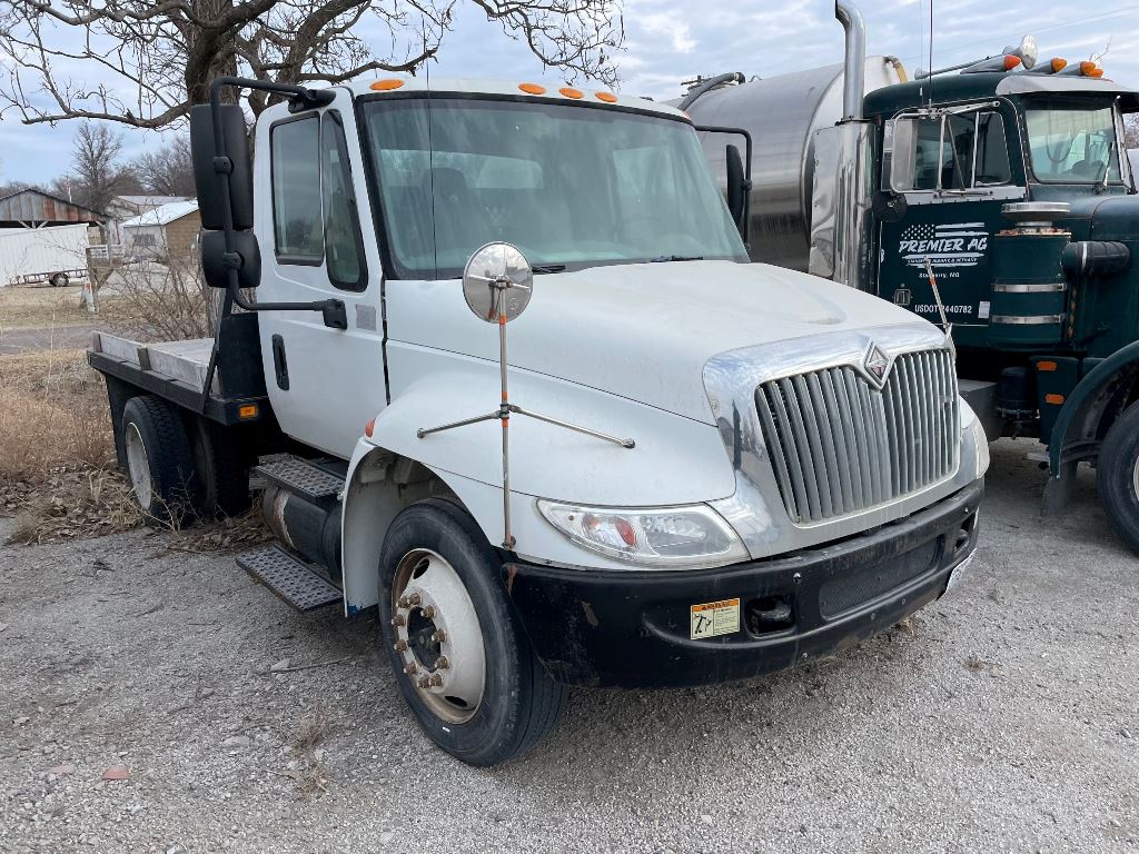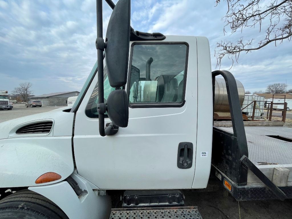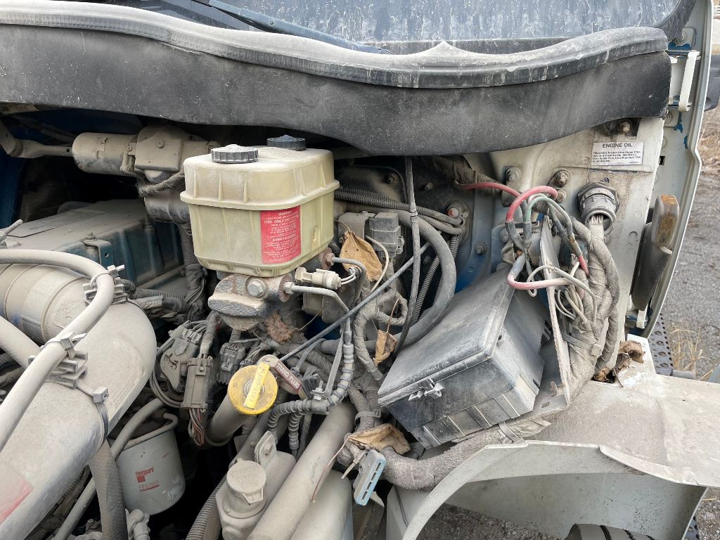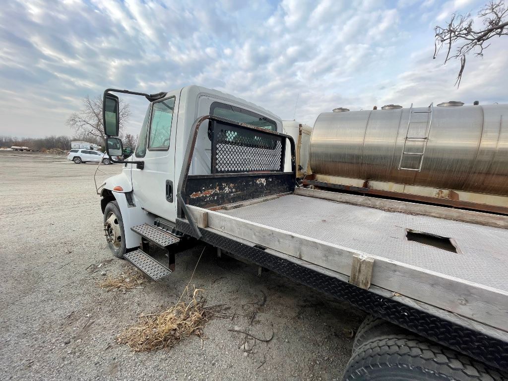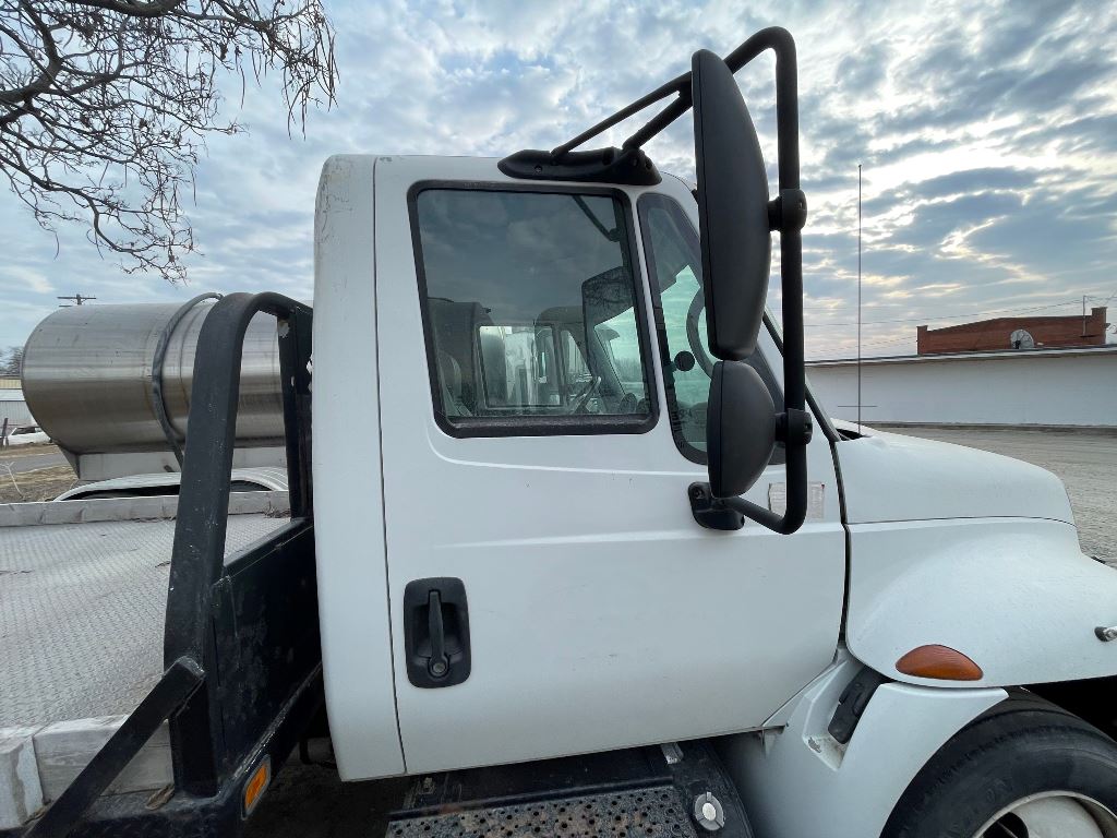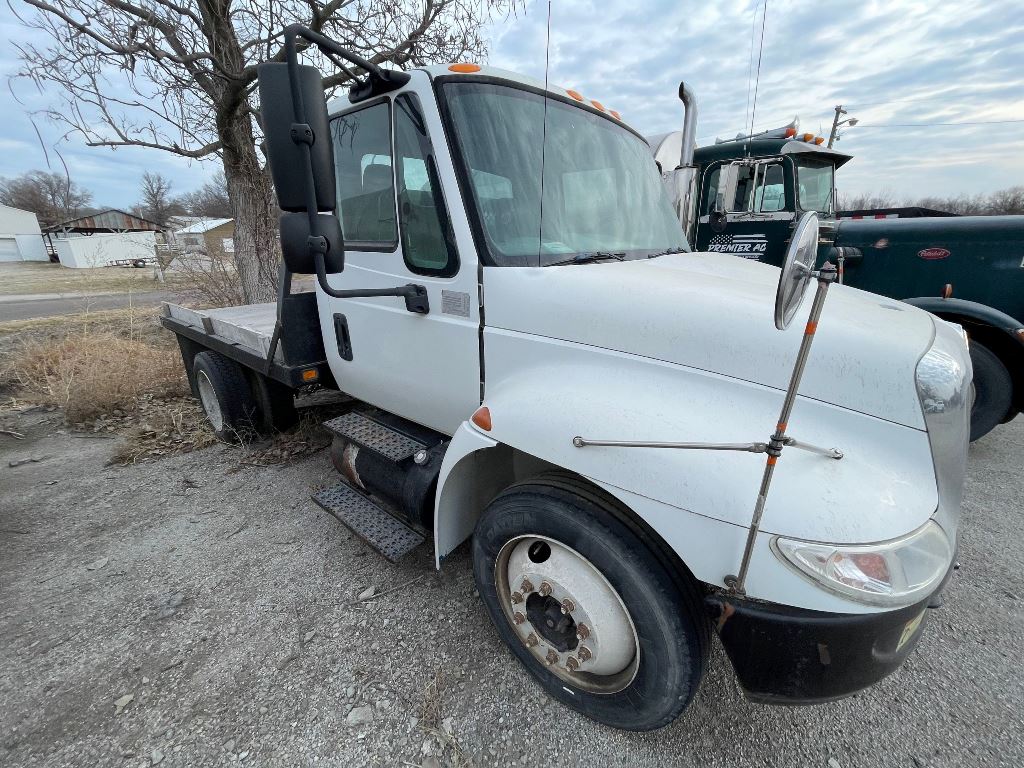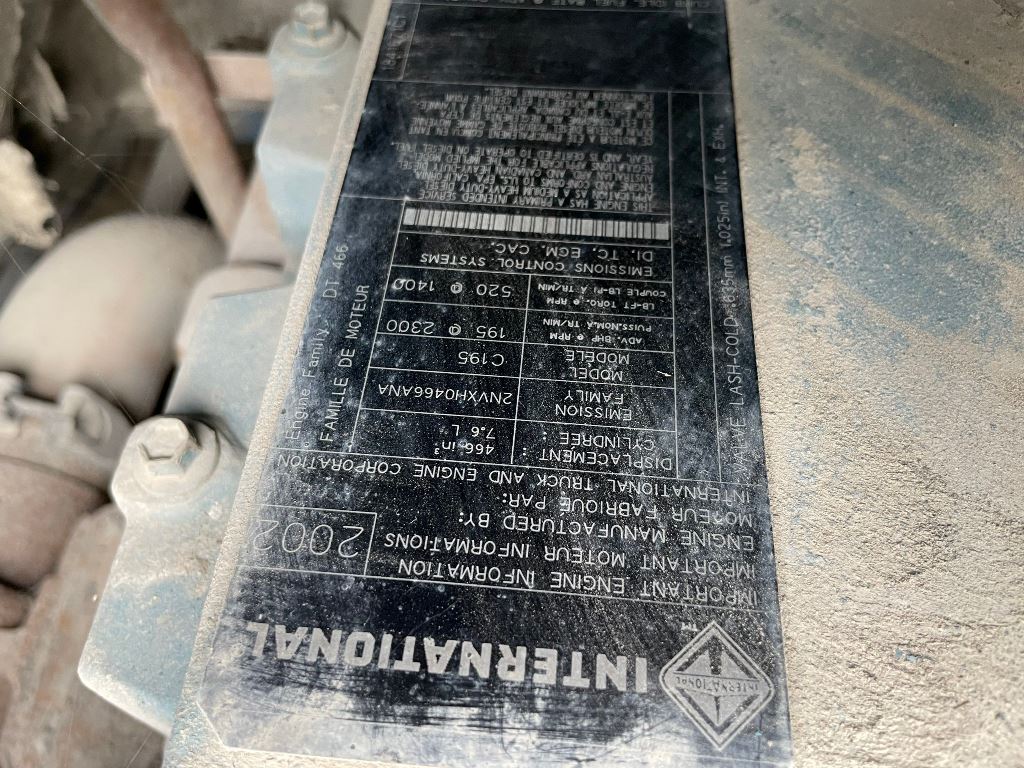 2003 IHC Flatbed Truck (GP2362, Unit 11689), 7.6L diesel engine, automatic transmission, air conditioning, heat, Am/Fm CD radio, cruise control, single axle, spring suspension, 10' steel flatbed, 5th wheel ball, 255/70R22.5 tires, shows 209,414 miles, 11,040 hours.
