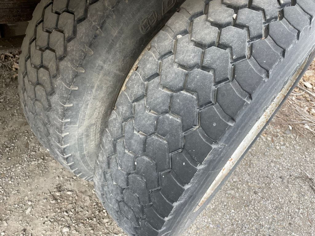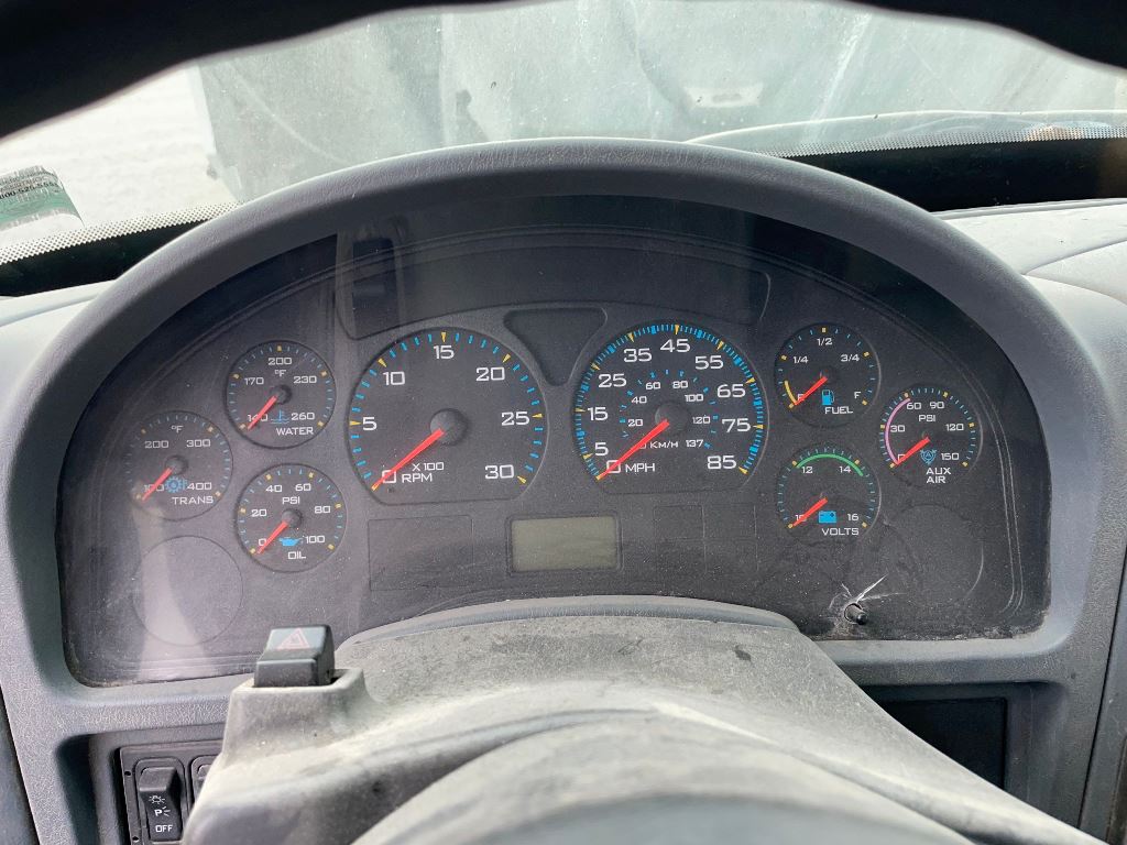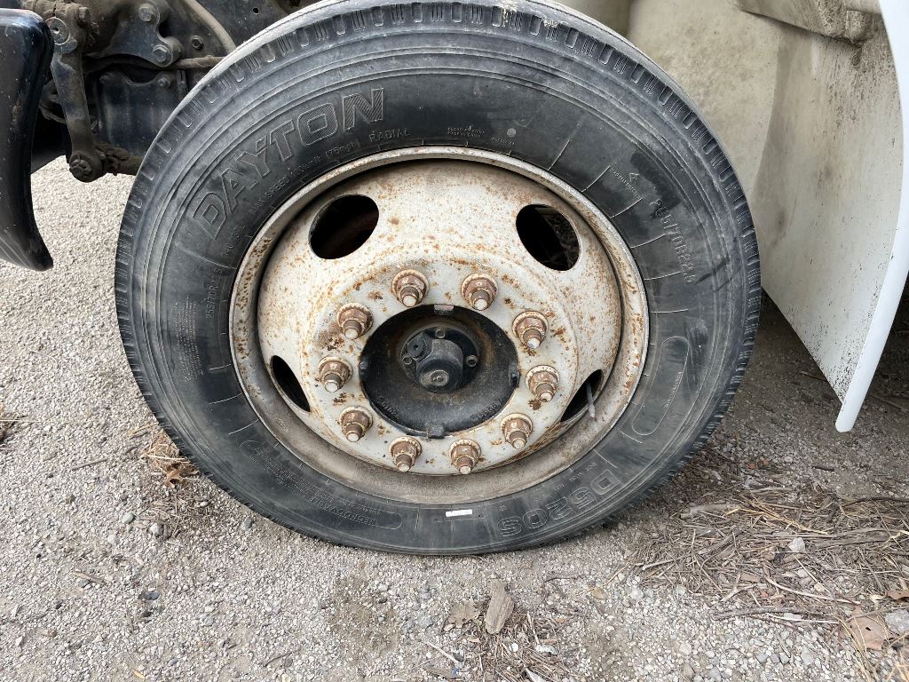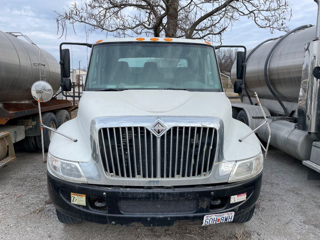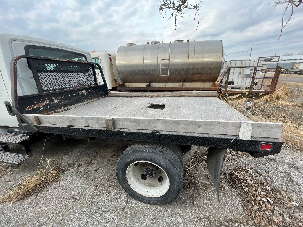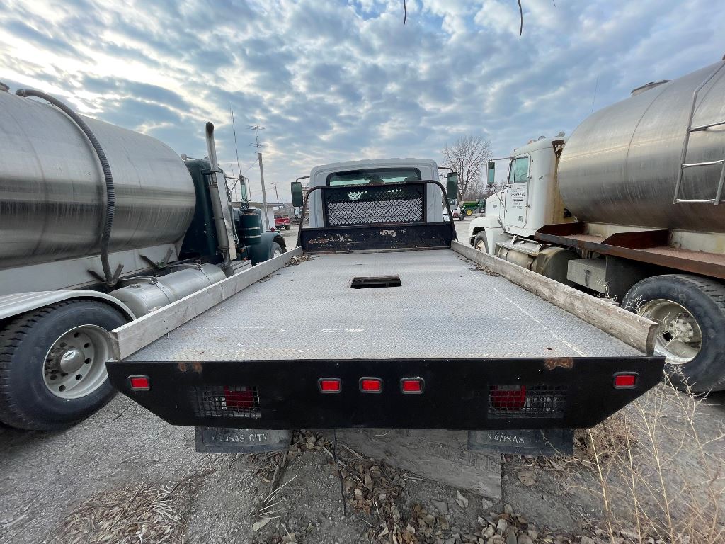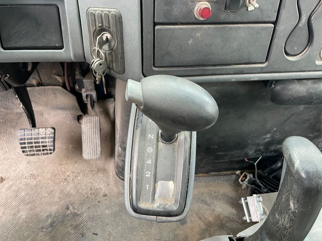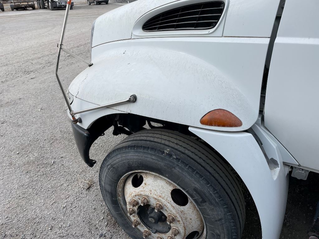 2003 IHC Flatbed Truck (GP2362, Unit 11689), 7.6L diesel engine, automatic transmission, air conditioning, heat, Am/Fm CD radio, cruise control, single axle, spring suspension, 10' steel flatbed, 5th wheel ball, 255/70R22.5 tires, shows 209,414 miles, 11,040 hours.