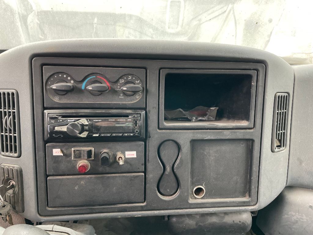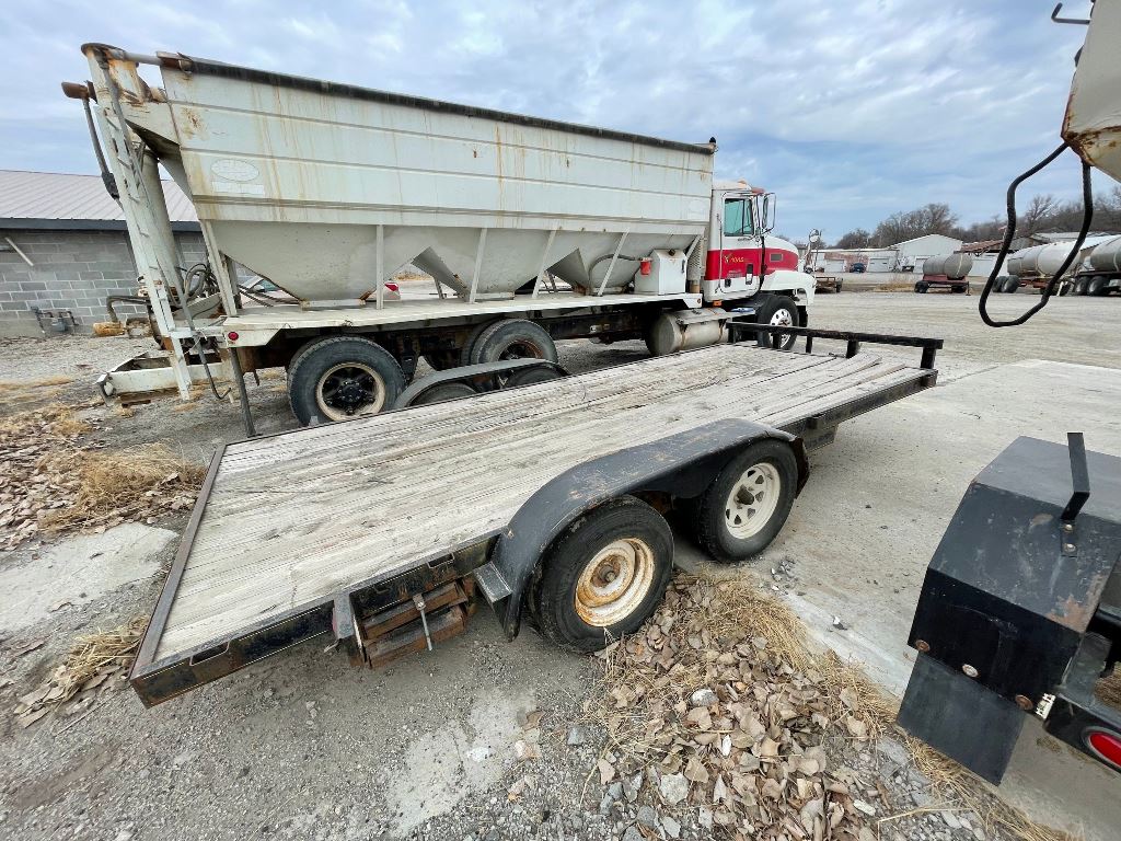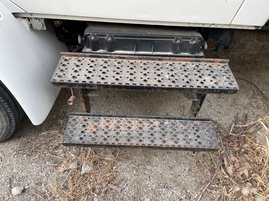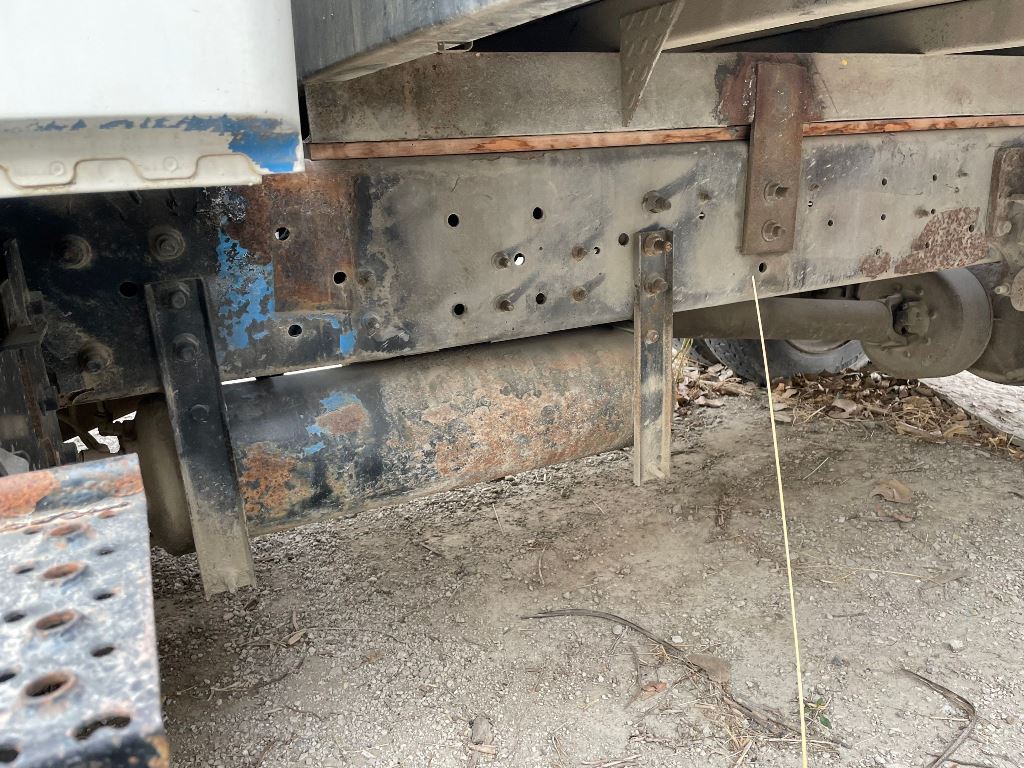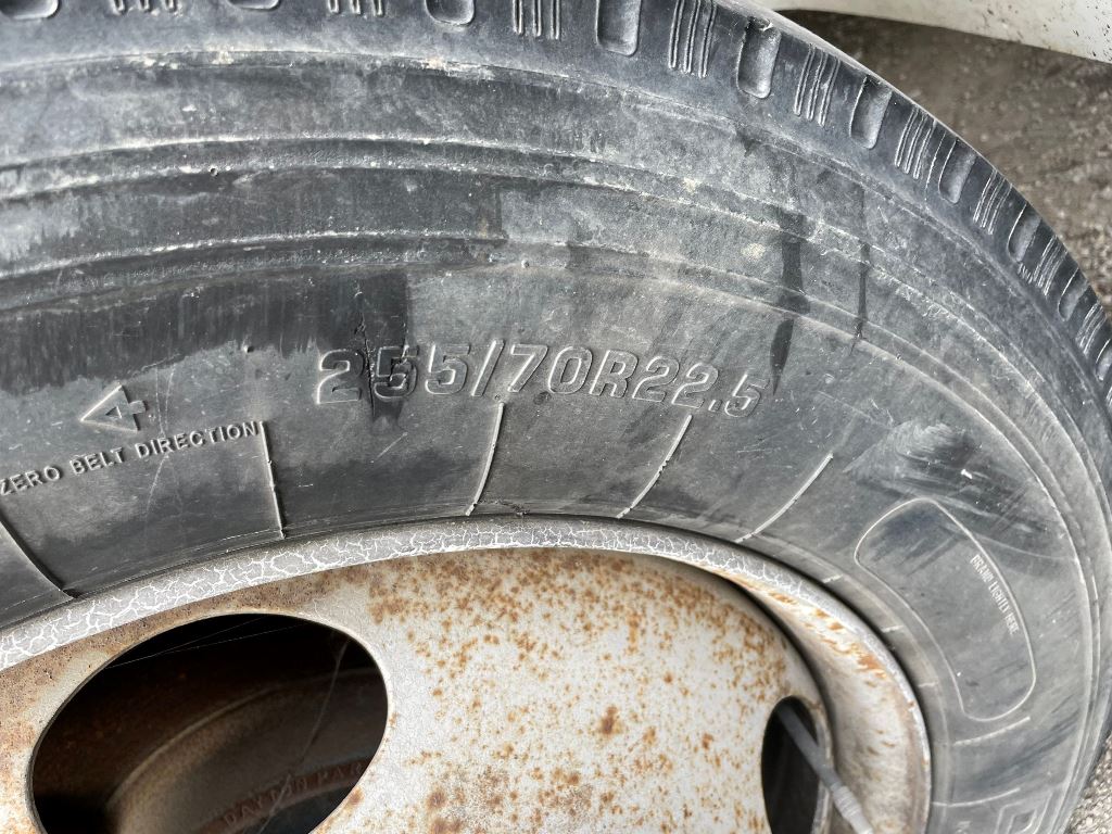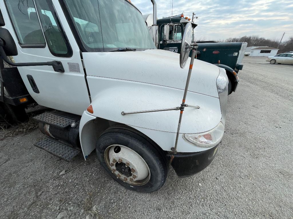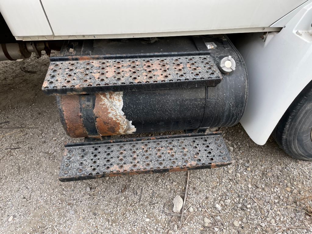 2003 IHC Flatbed Truck (GP2362, Unit 11689), 7.6L diesel engine, automatic transmission, air conditioning, heat, Am/Fm CD radio, cruise control, single axle, spring suspension, 10' steel flatbed, 5th wheel ball, 255/70R22.5 tires, shows 209,414 miles, 11,040 hours.