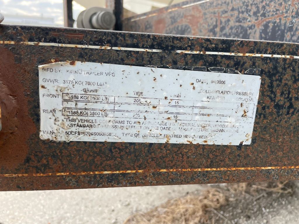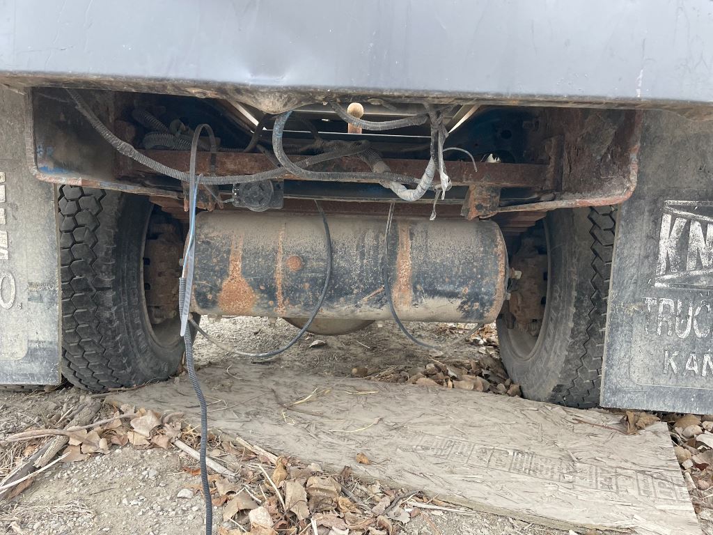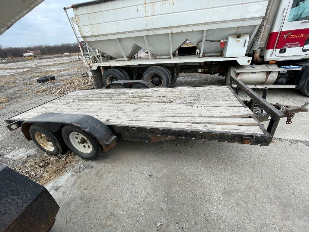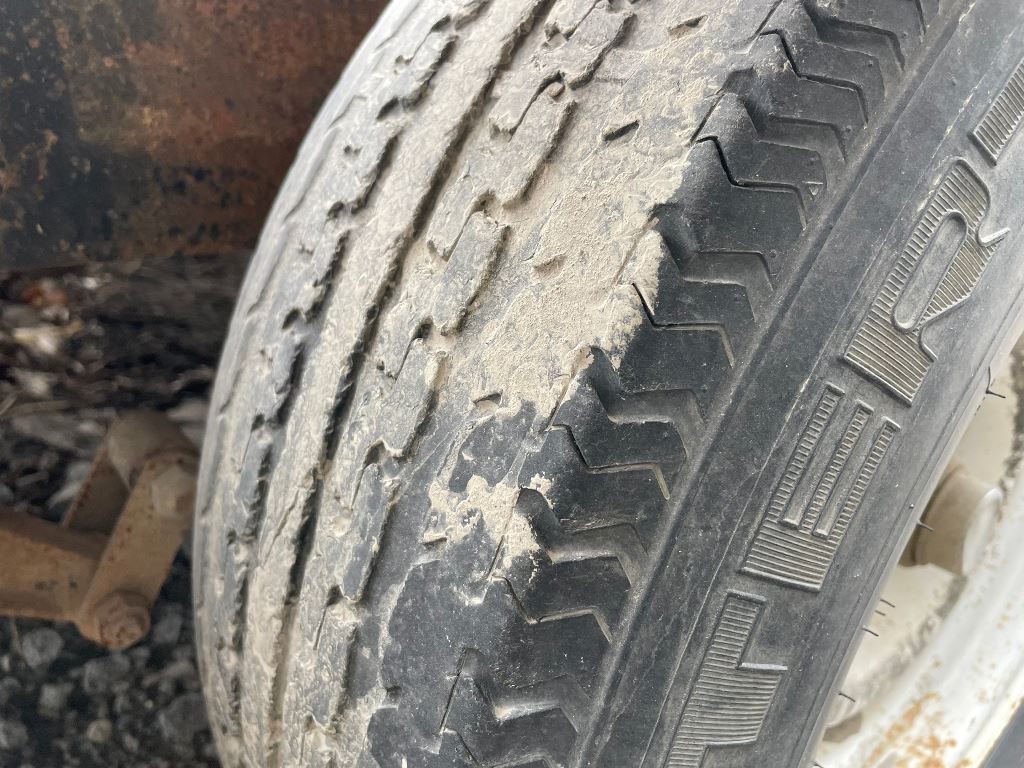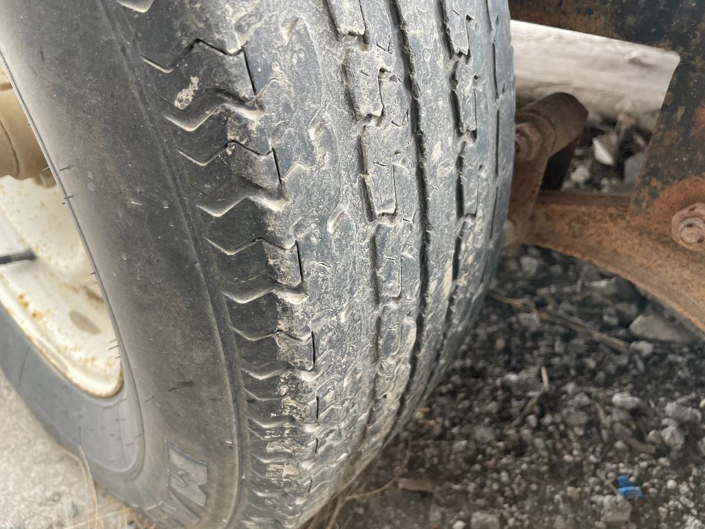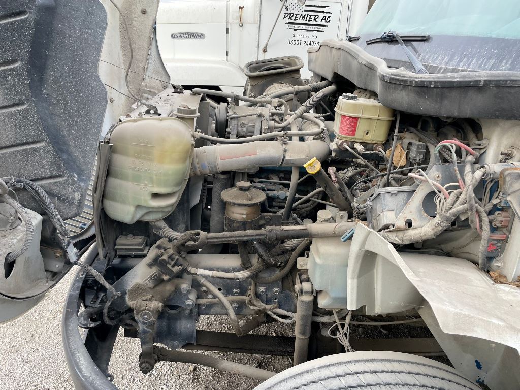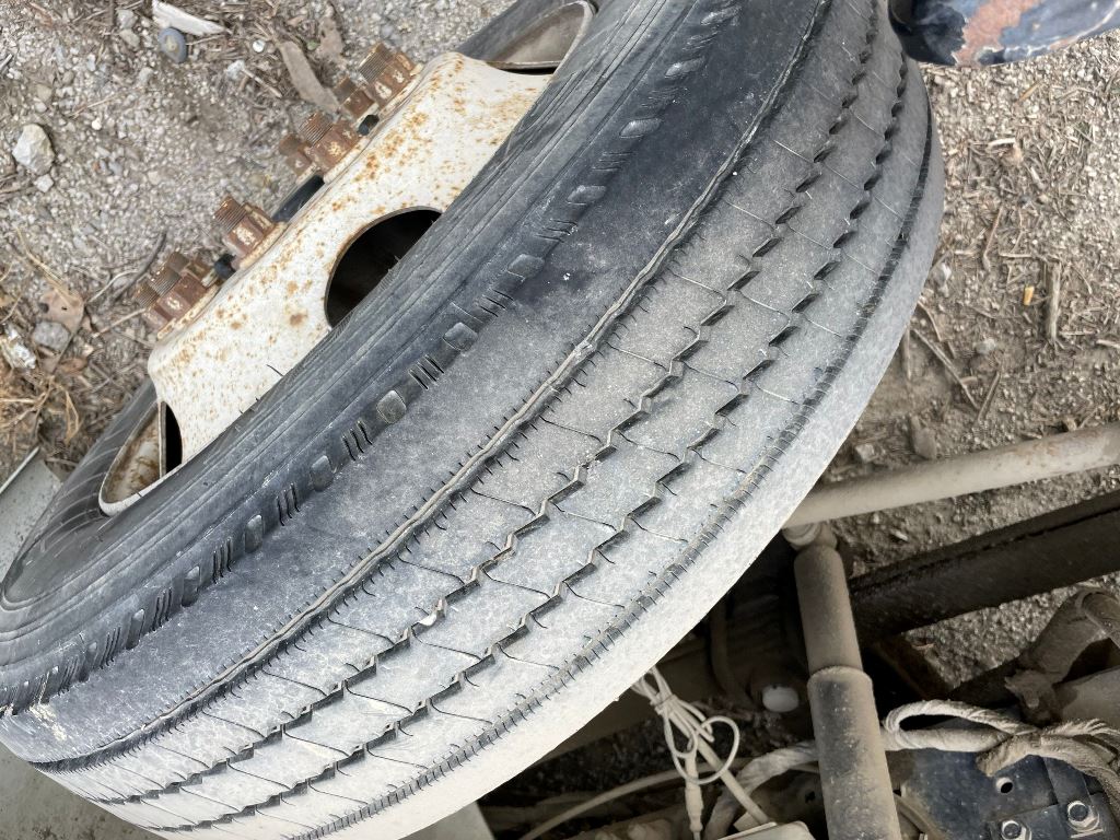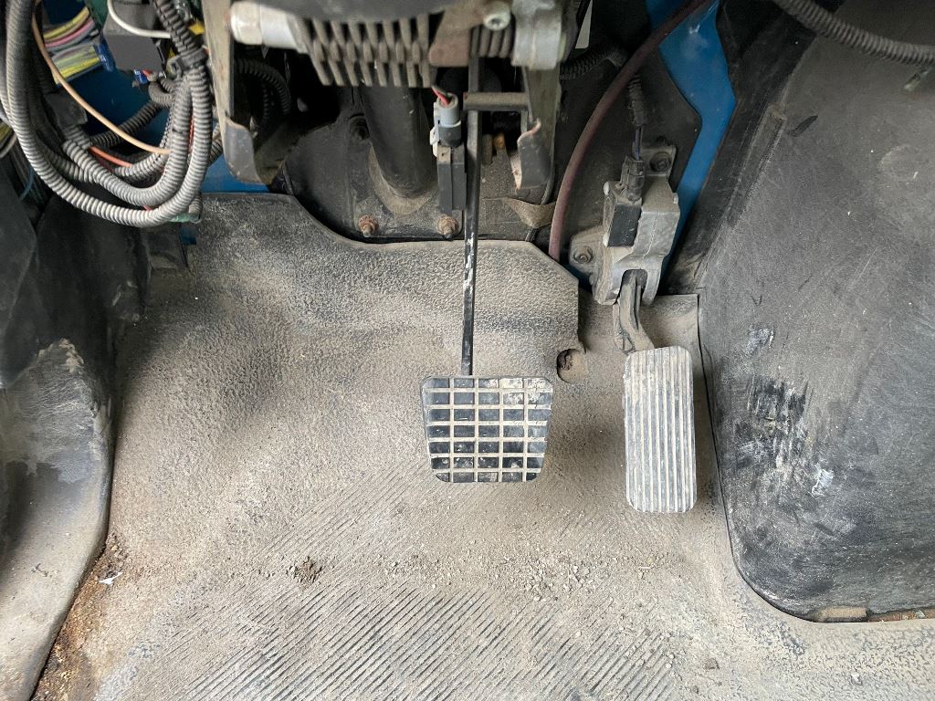 2003 IHC Flatbed Truck (GP2362, Unit 11689), 7.6L diesel engine, automatic transmission, air conditioning, heat, Am/Fm CD radio, cruise control, single axle, spring suspension, 10' steel flatbed, 5th wheel ball, 255/70R22.5 tires, shows 209,414 miles, 11,040 hours.