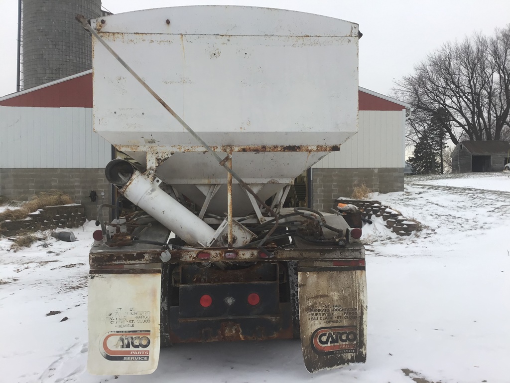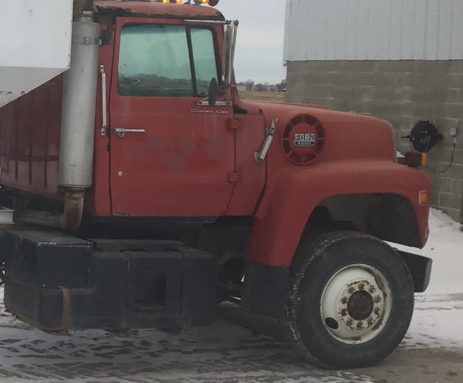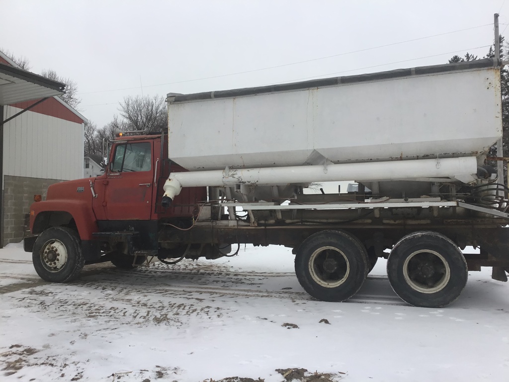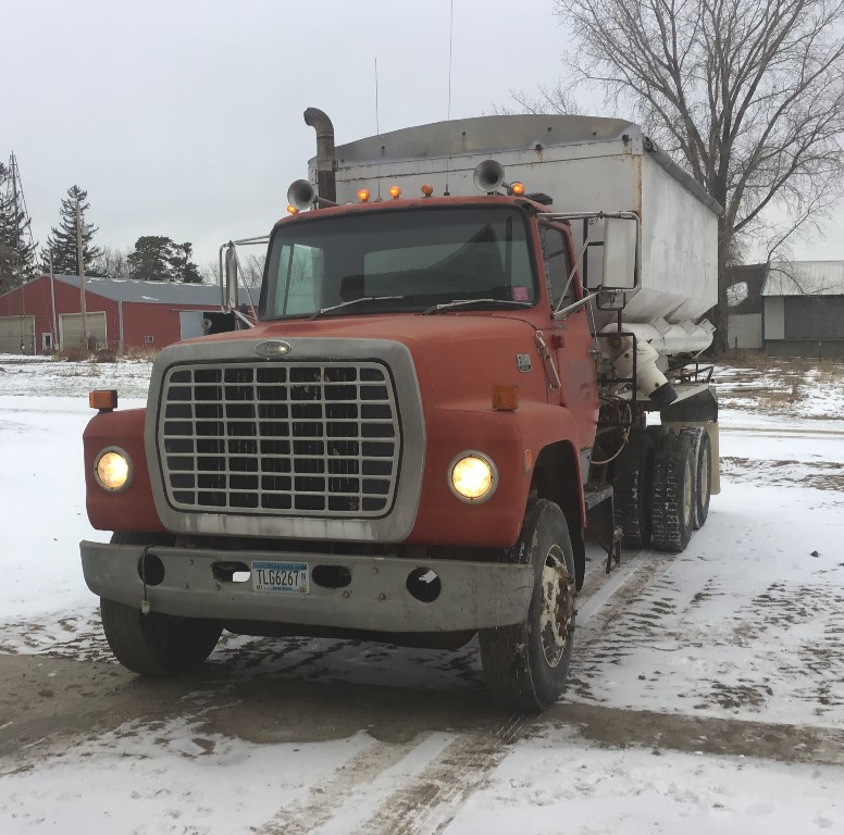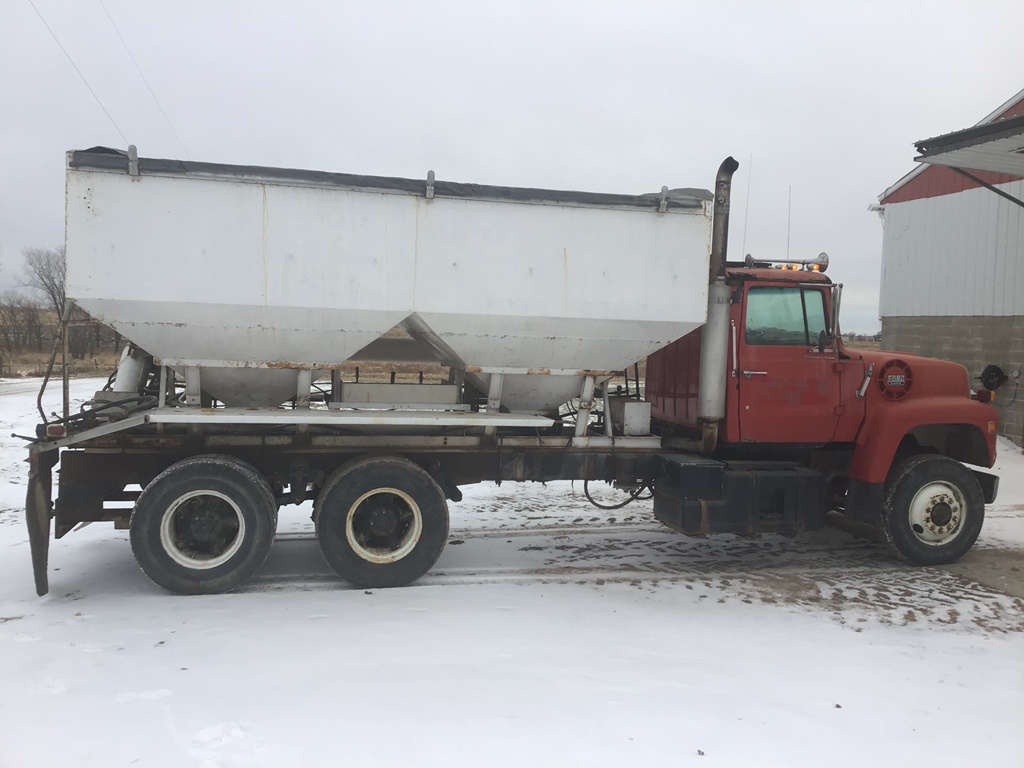 1986 Ford 9000 Fertilizer Truck (ED3129), 1986 Ford 9000 fertilizer truck with 16 ton Tyler side shooter, Cummins diesel engine, Eaton 10 speed, new batteries 2022, recently replaced driveshafts and universal joints, shows 40,099 miles.