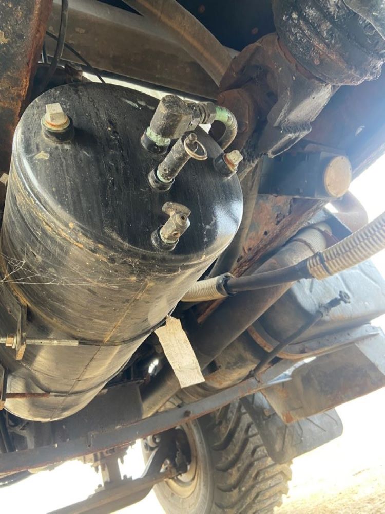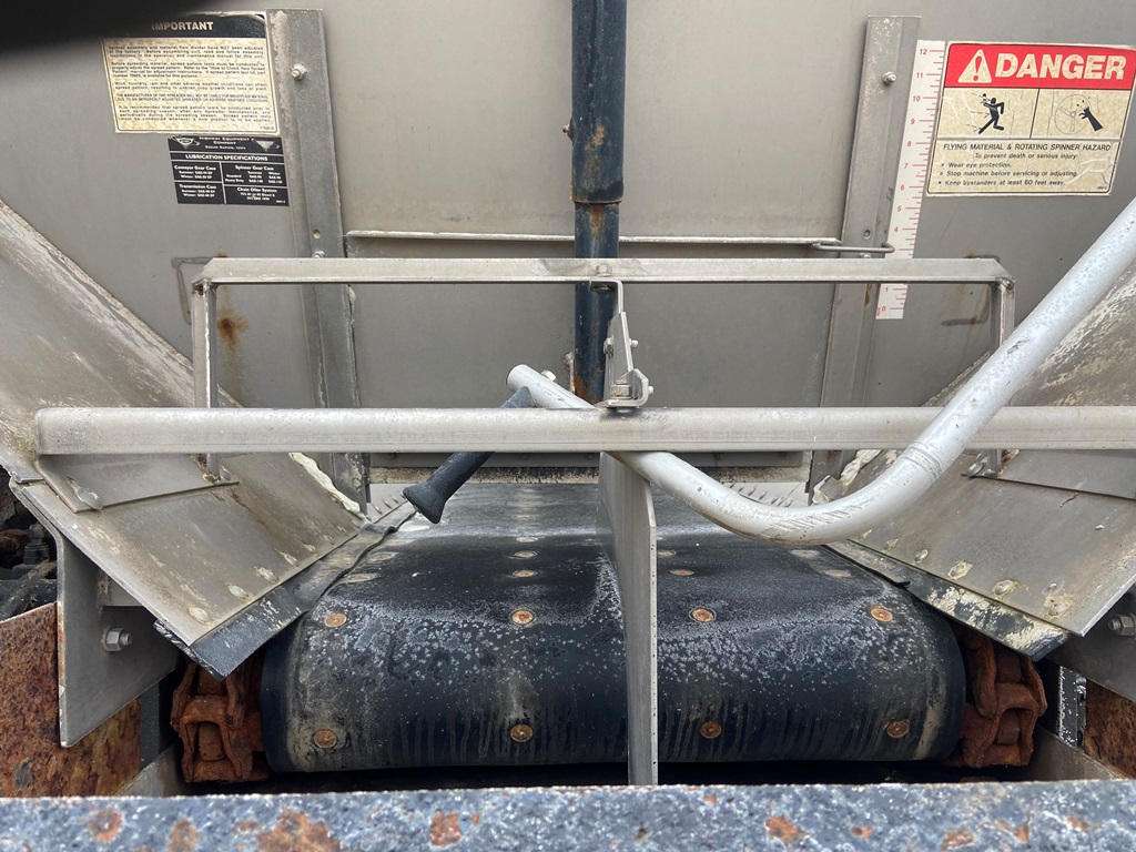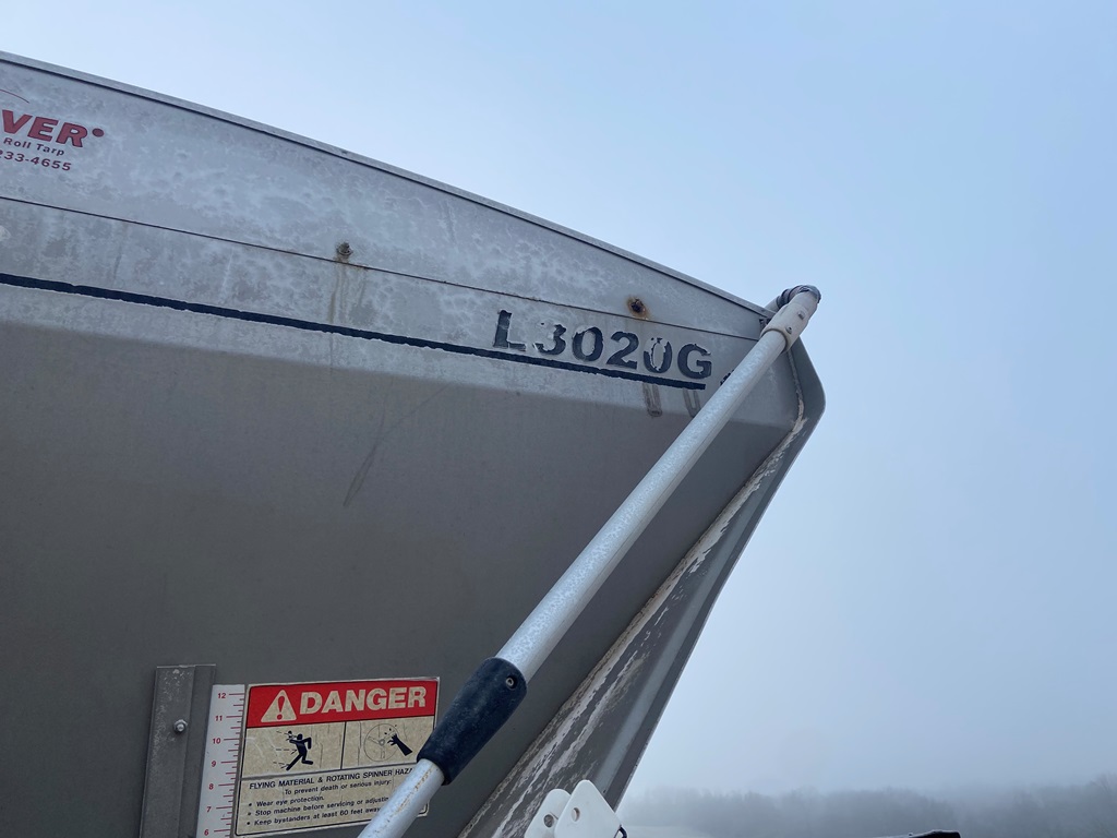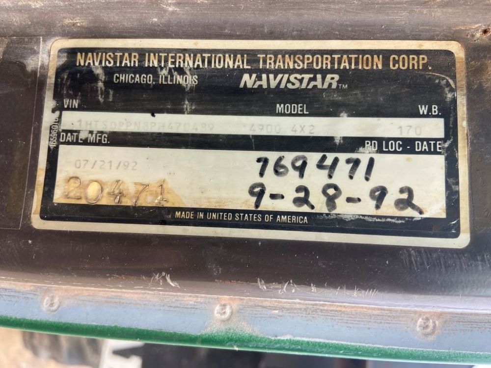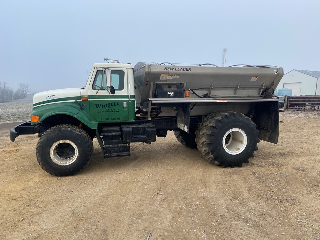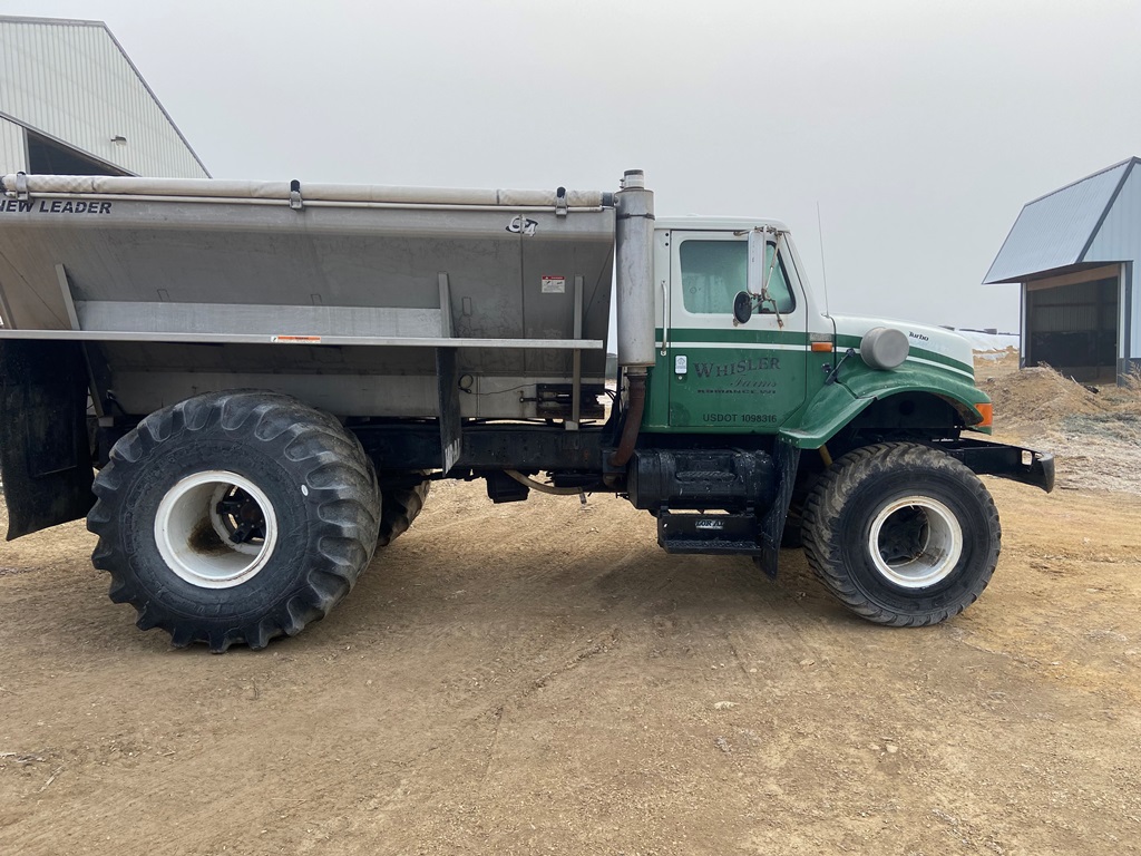 1993 Loral Easy Rider Dry Floater (DR3623), DT466 diesel engine, Allison automatic transmission, New Leader L3020 G4 hydraulic stainless steel dry spinner box, belt/chain, roll over tarp, New Leader controller, Outback swathing, cab heat/air conditioning, 66X43.00-25 rear tires, 48X25.00-20 front tires, shows 134,021 miles, 11,409 hours.