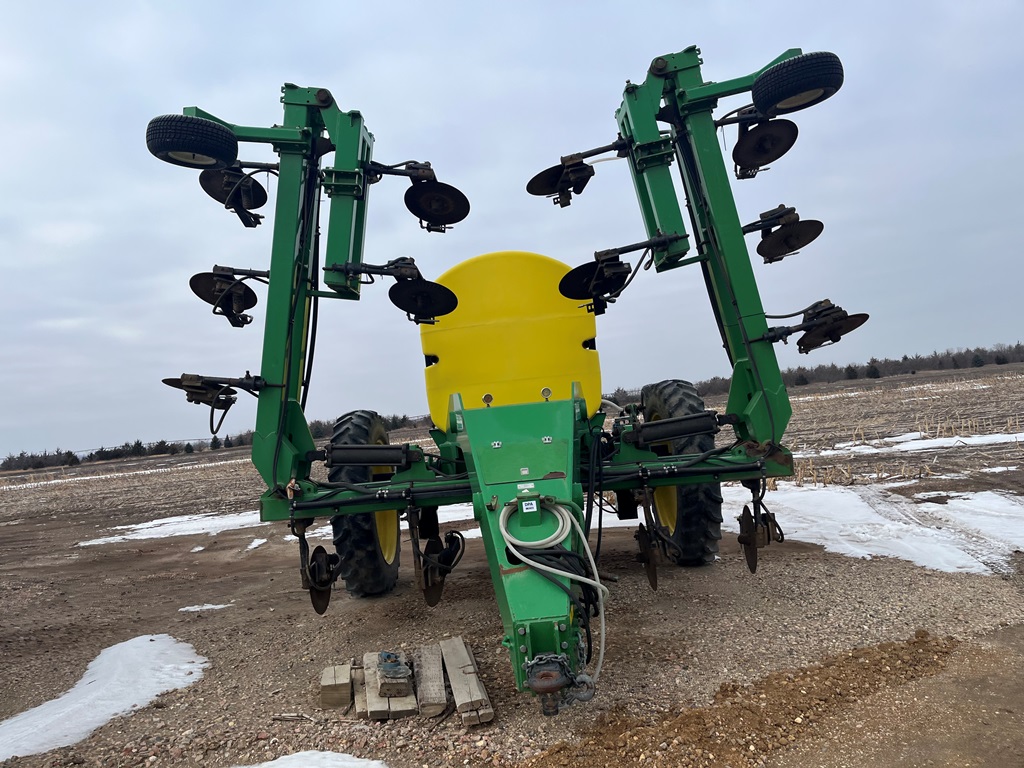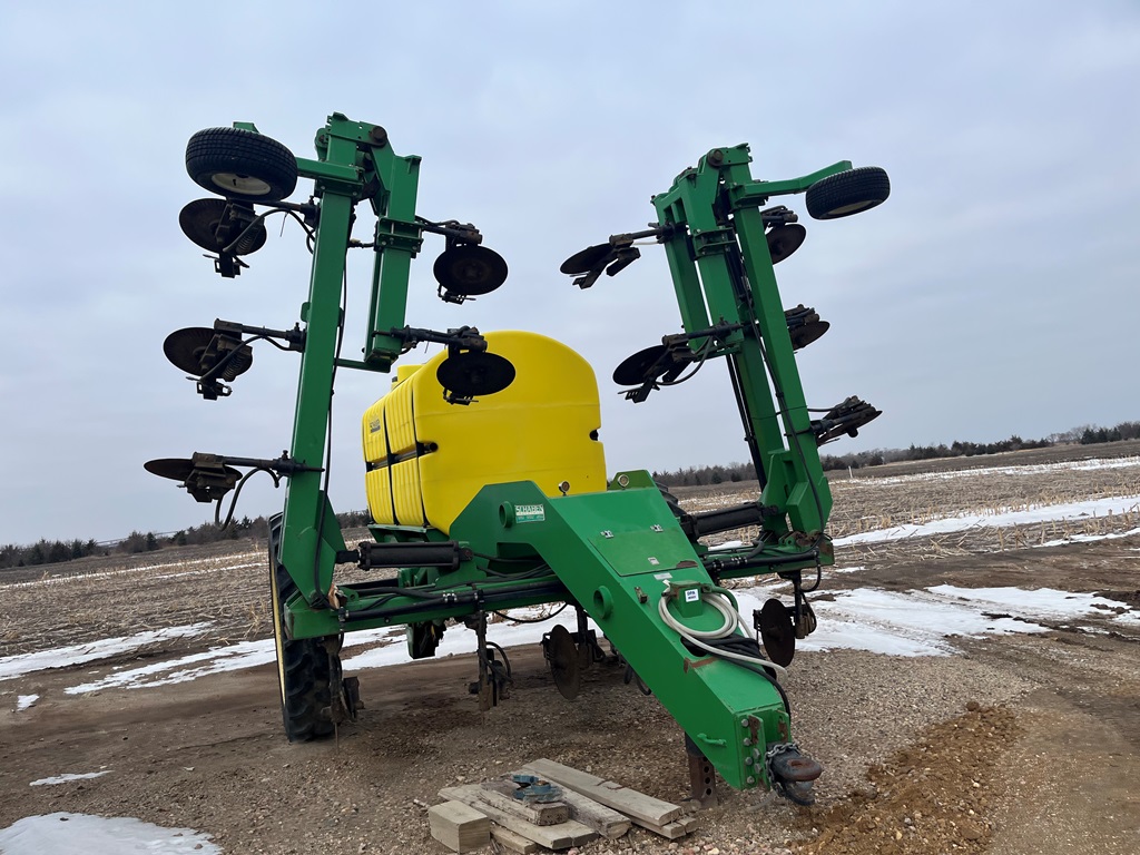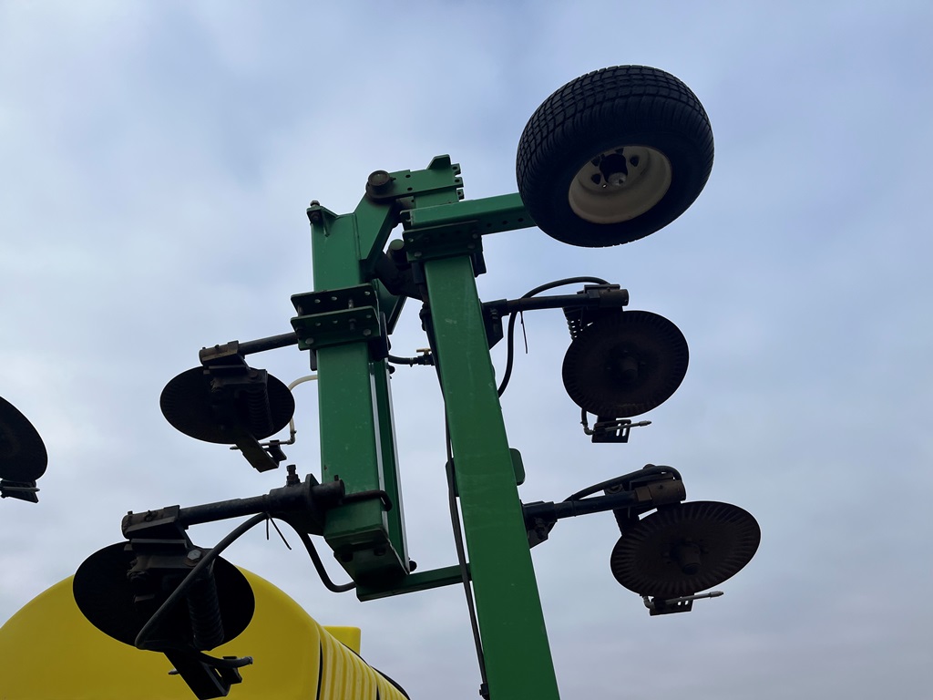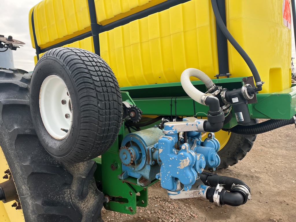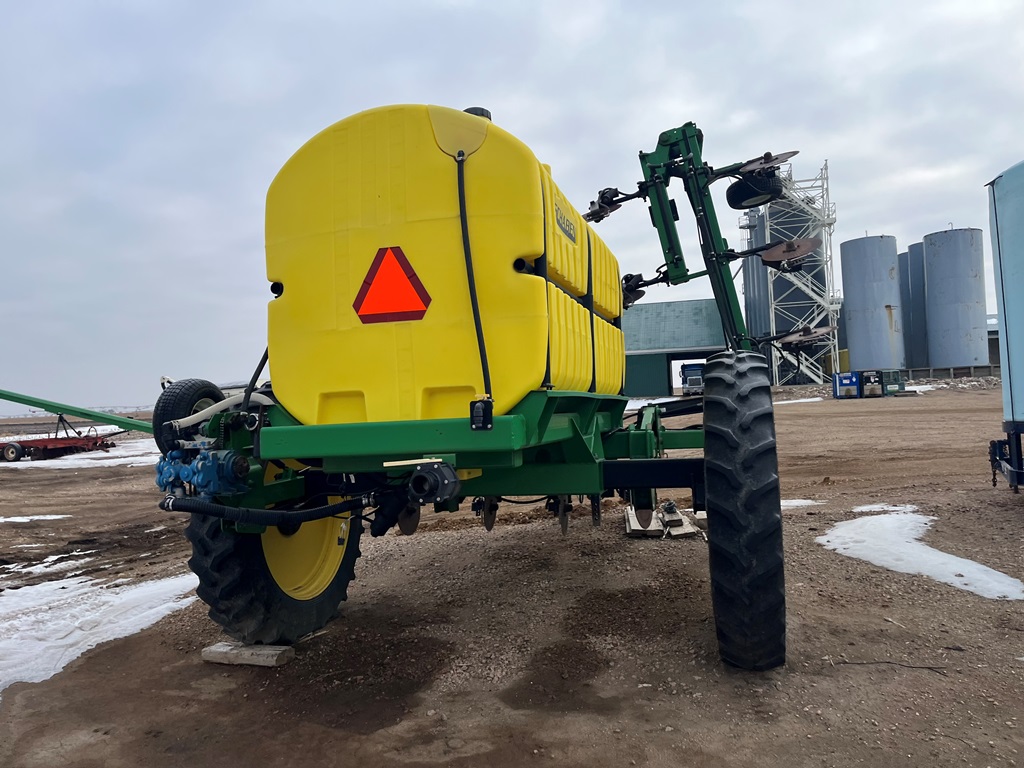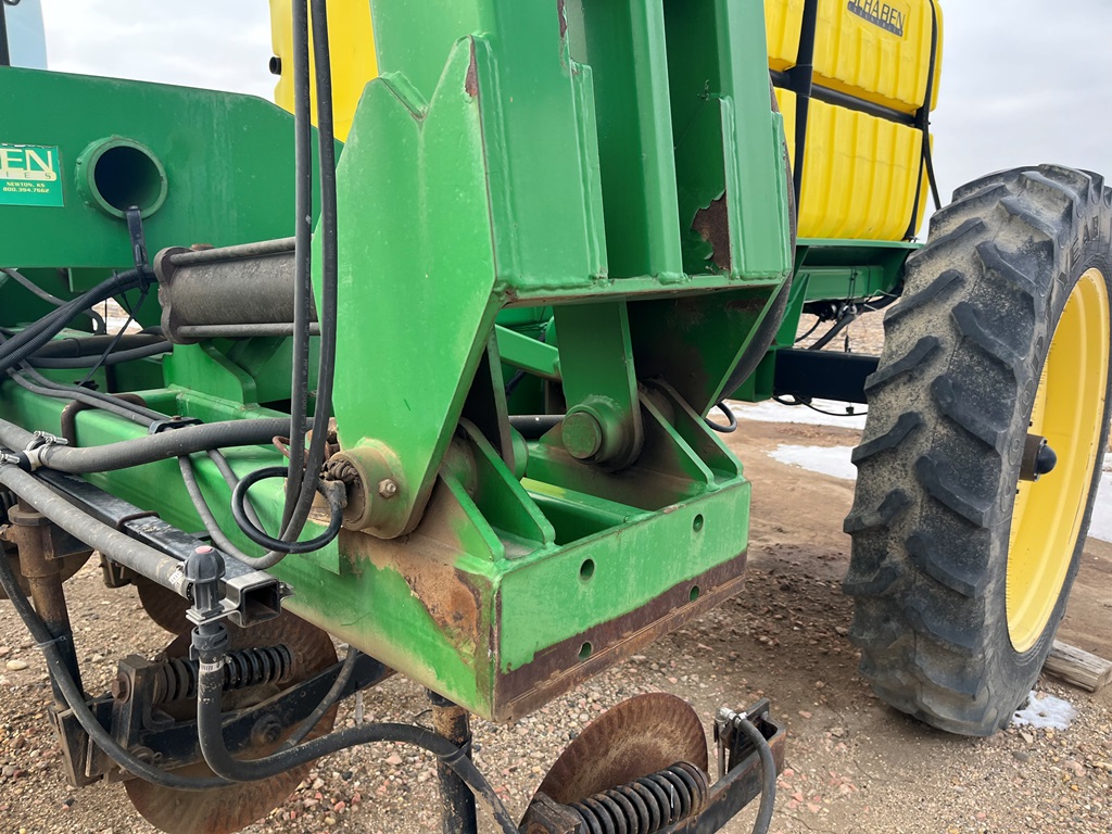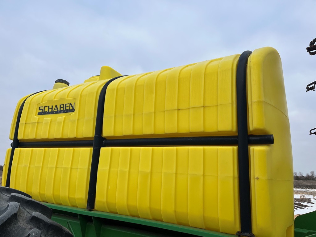 Schaben Applicator (DR3622), model LA-9000 15 row side dress liquid applicator, 1,500 gallon poly tank, John-blu ground drive pump, hydraulic fold, ripple coulters, adjustable axles, 380/90R46 row crop tires.