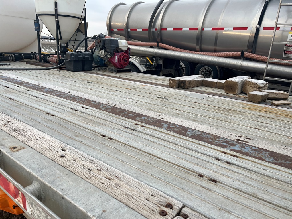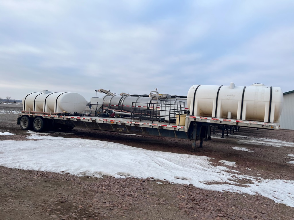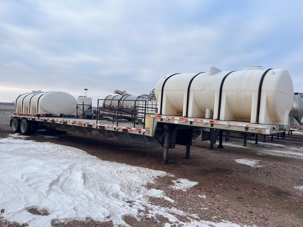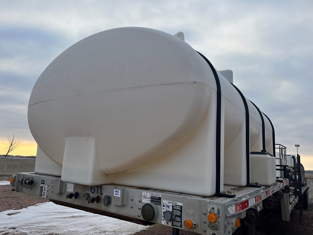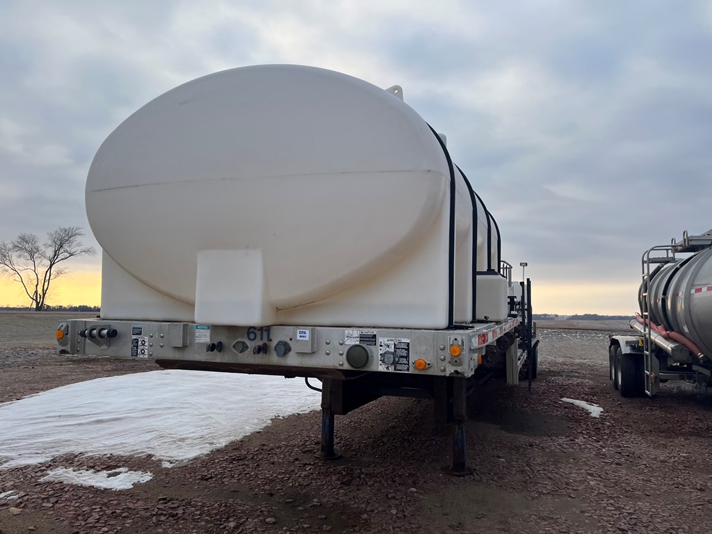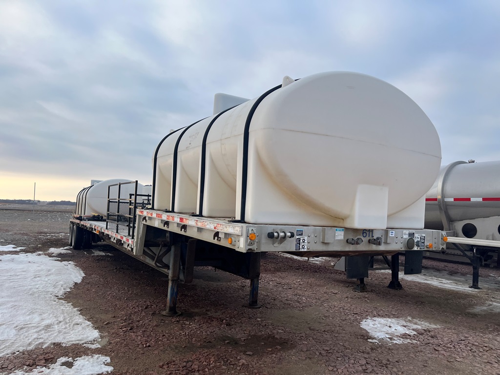 1998 Wilson Liquid Trailer (DR3617 Unit 97938), 48' aluminum step deck trailer, (2) 2,400 gallon crown poly liquid tanks, poly chemical inductor, Honda gas engine w/electric start, 3'' liquid pump, side winch boxes, tandem axle, air ride suspension, 255/70R22.5 tires, all aluminum wheels.