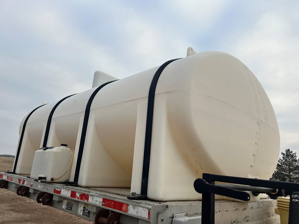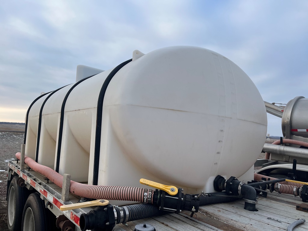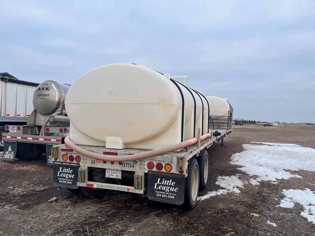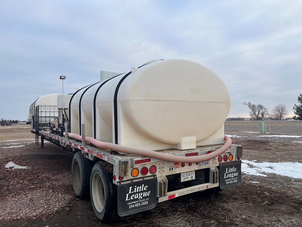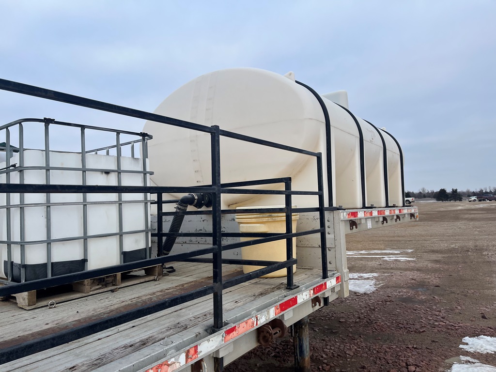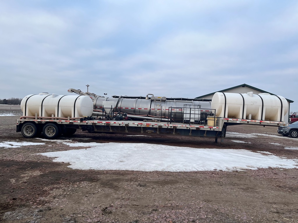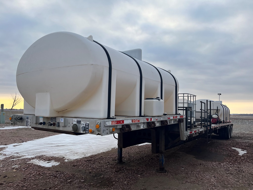 1998 Wilson Liquid Trailer (DR3617 Unit 97938), 48' aluminum step deck trailer, (2) 2,400 gallon crown poly liquid tanks, poly chemical inductor, Honda gas engine w/electric start, 3'' liquid pump, side winch boxes, tandem axle, air ride suspension, 255/70R22.5 tires, all aluminum wheels.