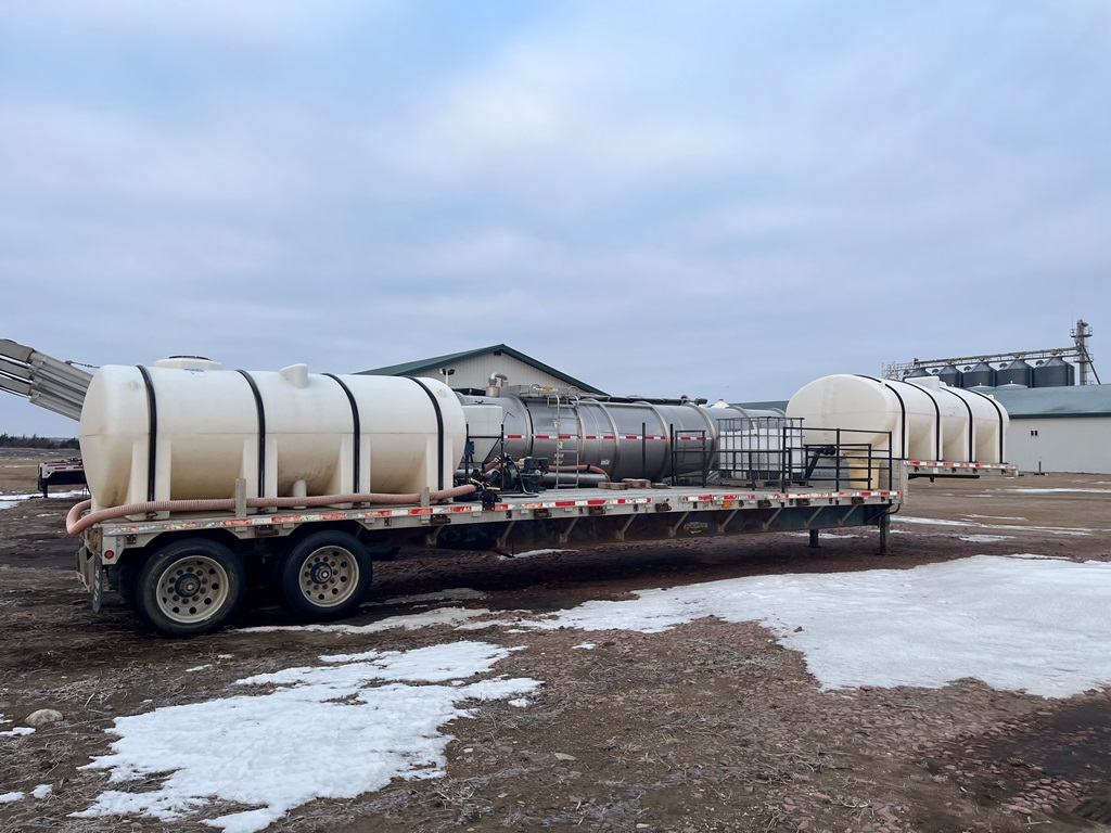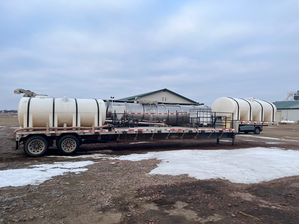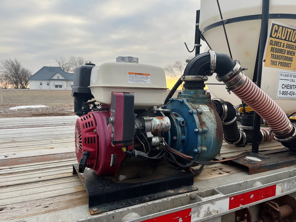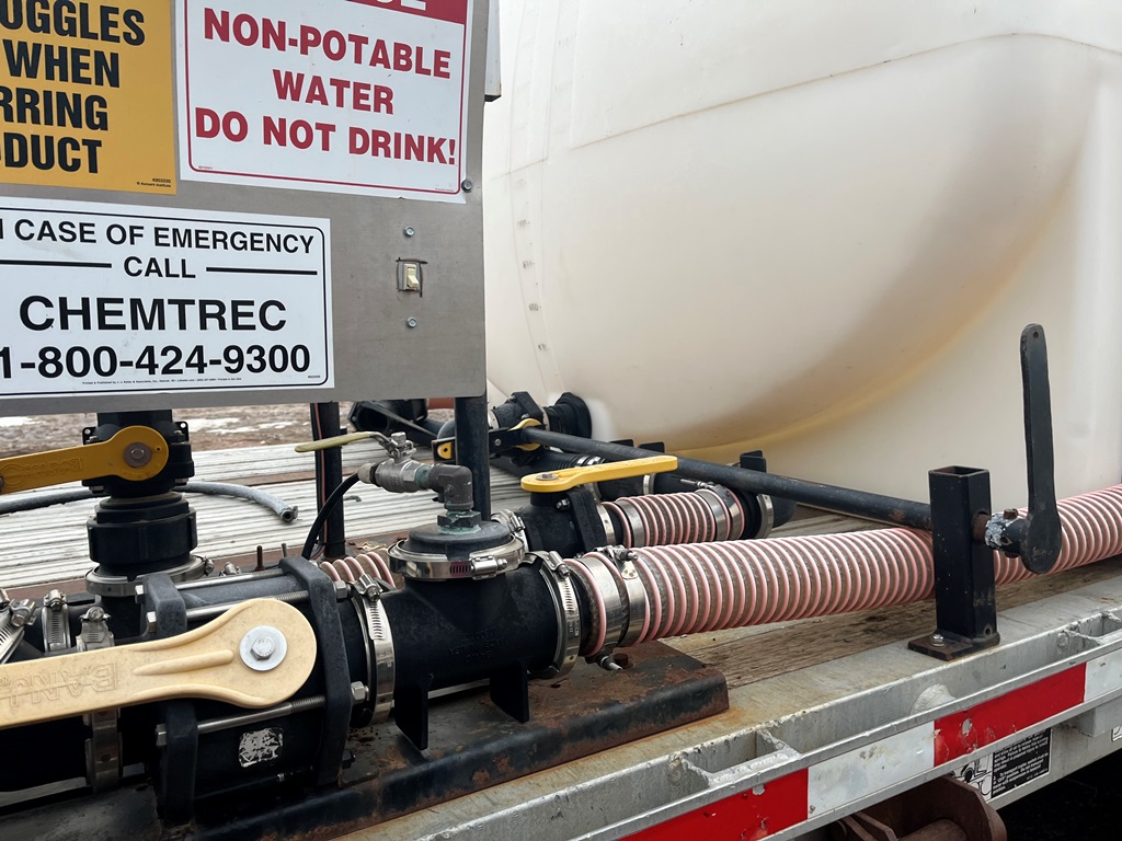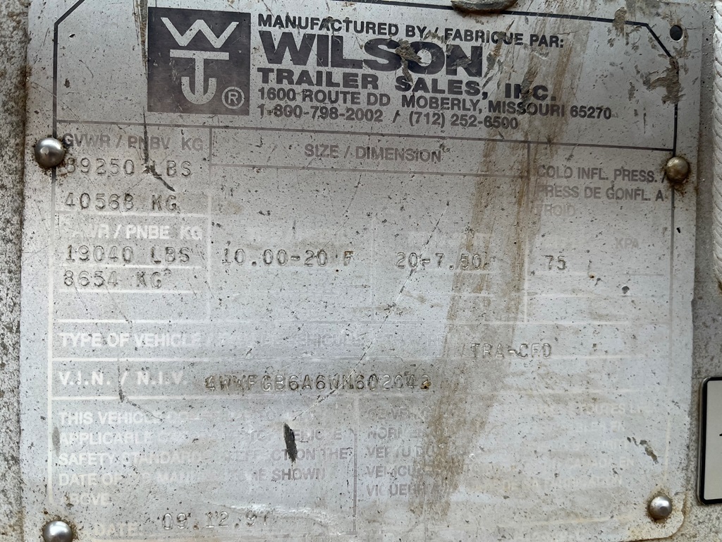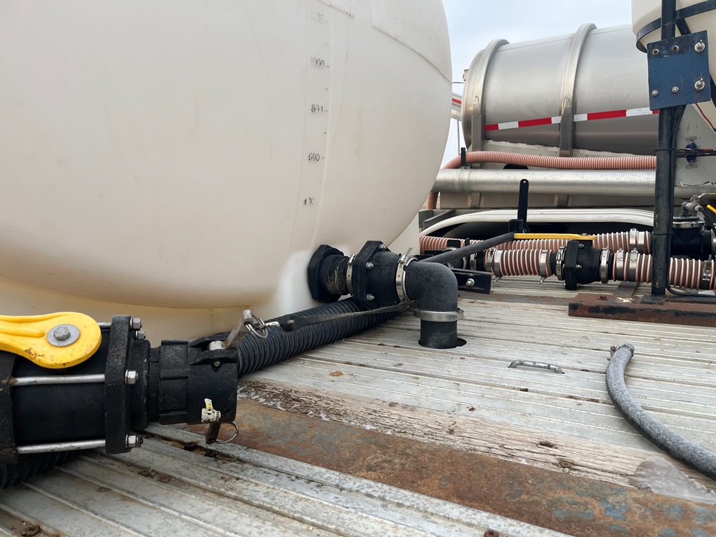 1998 Wilson Liquid Trailer (DR3617 Unit 97938), 48' aluminum step deck trailer, (2) 2,400 gallon crown poly liquid tanks, poly chemical inductor, Honda gas engine w/electric start, 3'' liquid pump, side winch boxes, tandem axle, air ride suspension, 255/70R22.5 tires, all aluminum wheels.