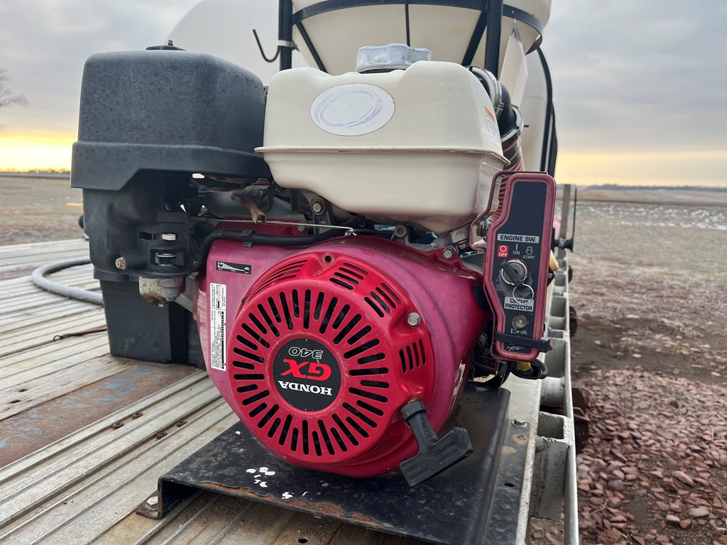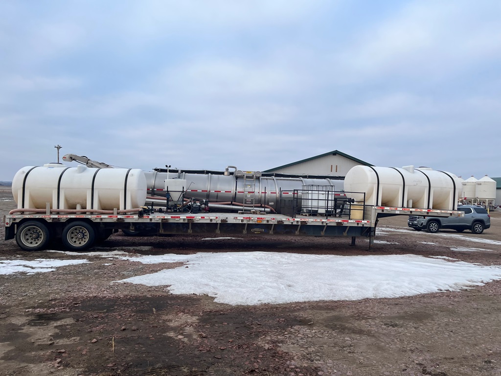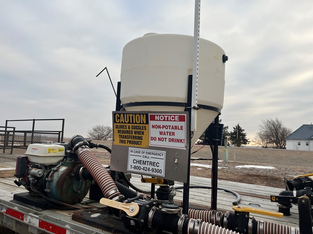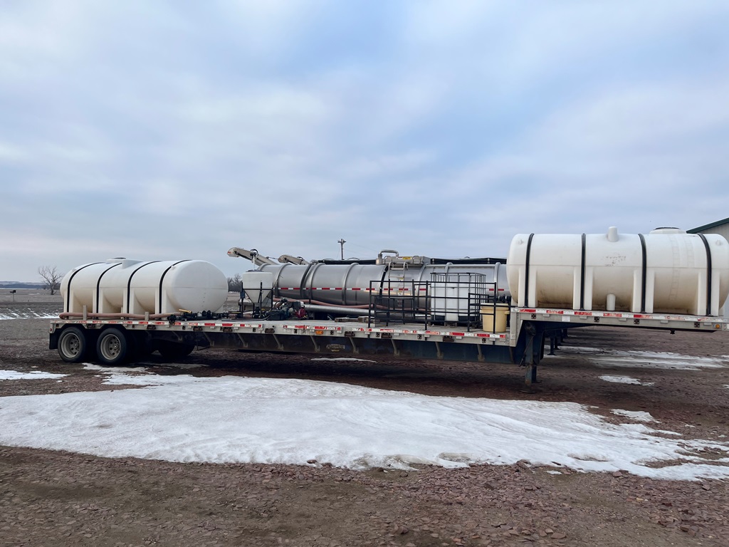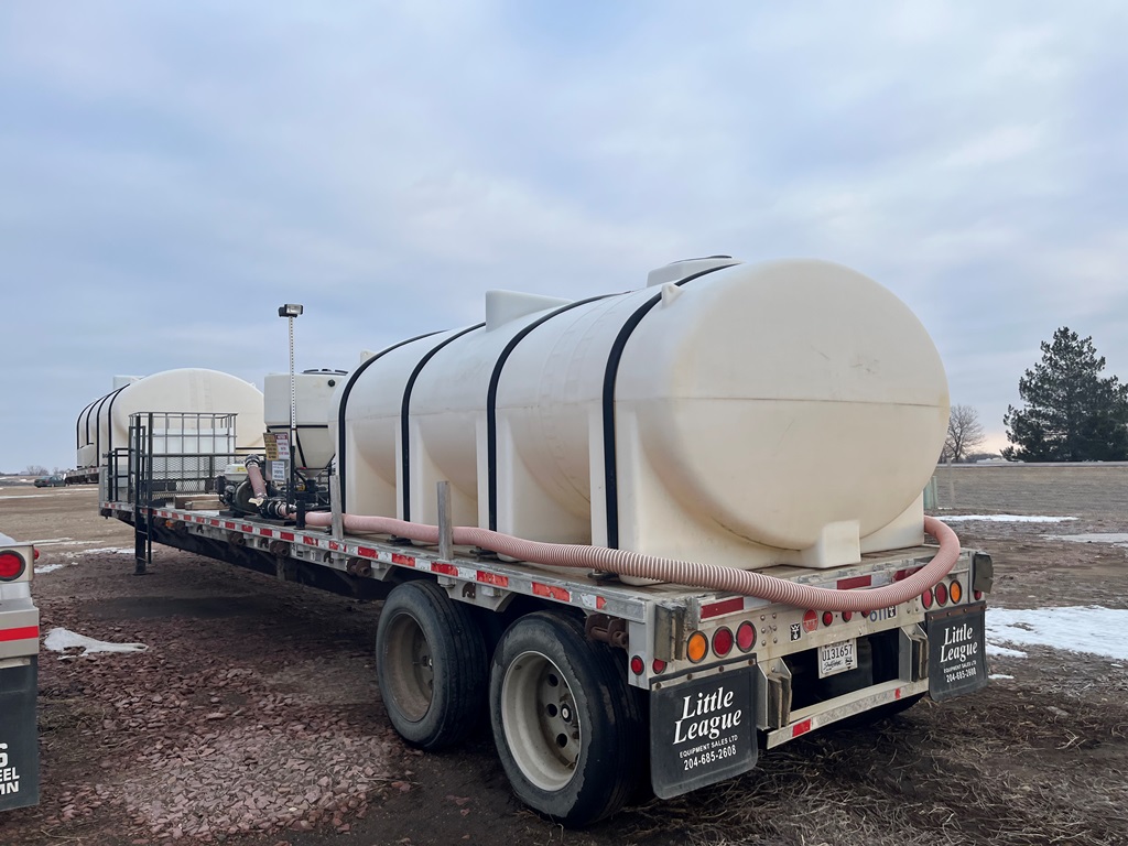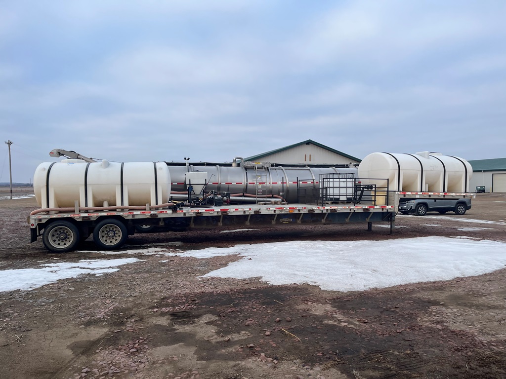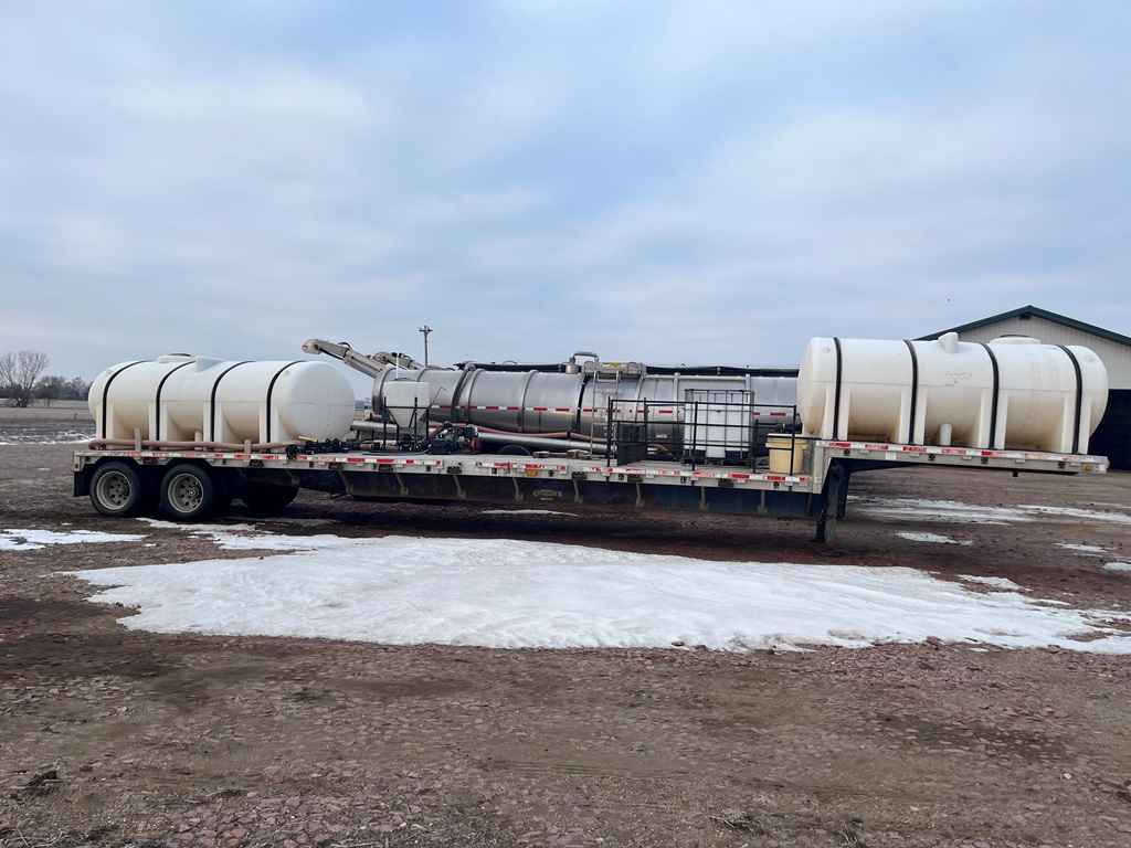 1998 Wilson Liquid Trailer (DR3617 Unit 97938), 48' aluminum step deck trailer, (2) 2,400 gallon crown poly liquid tanks, poly chemical inductor, Honda gas engine w/electric start, 3'' liquid pump, side winch boxes, tandem axle, air ride suspension, 255/70R22.5 tires, all aluminum wheels.