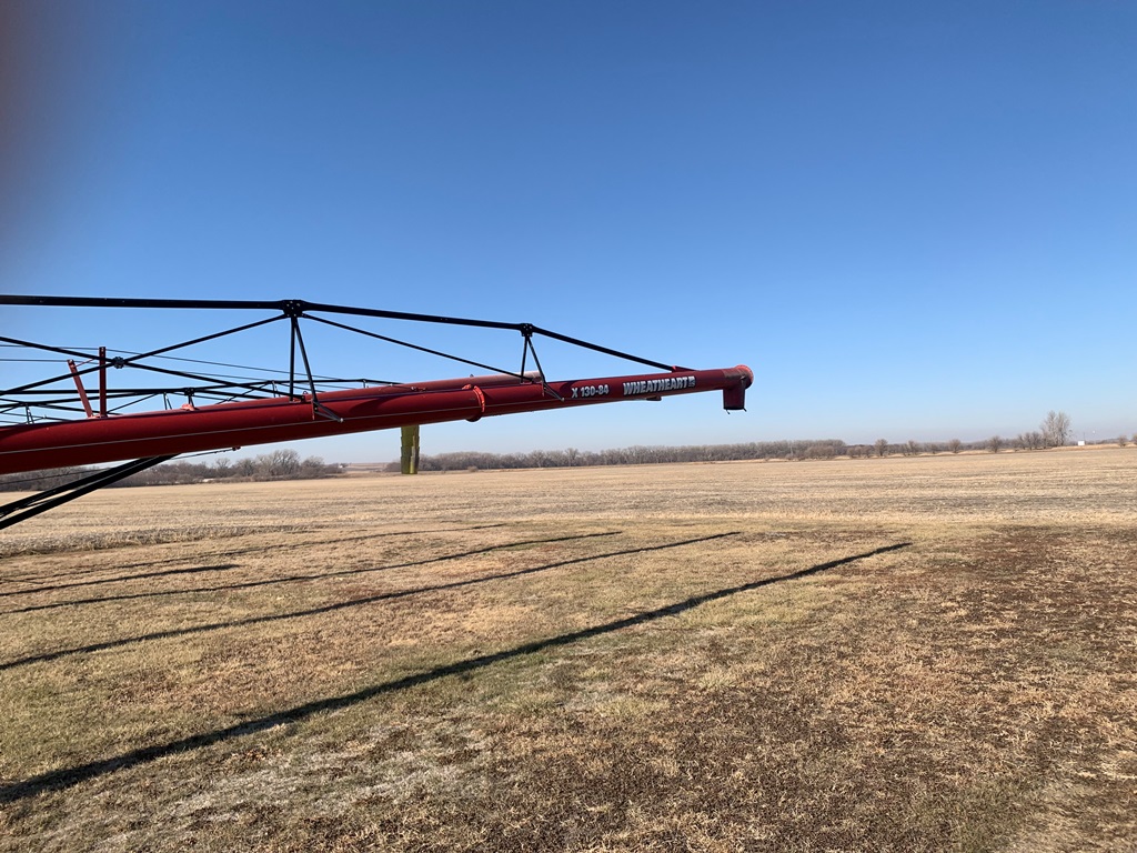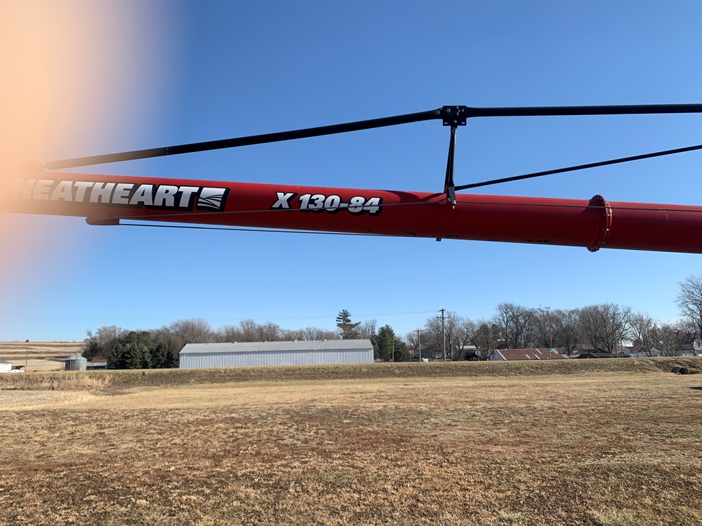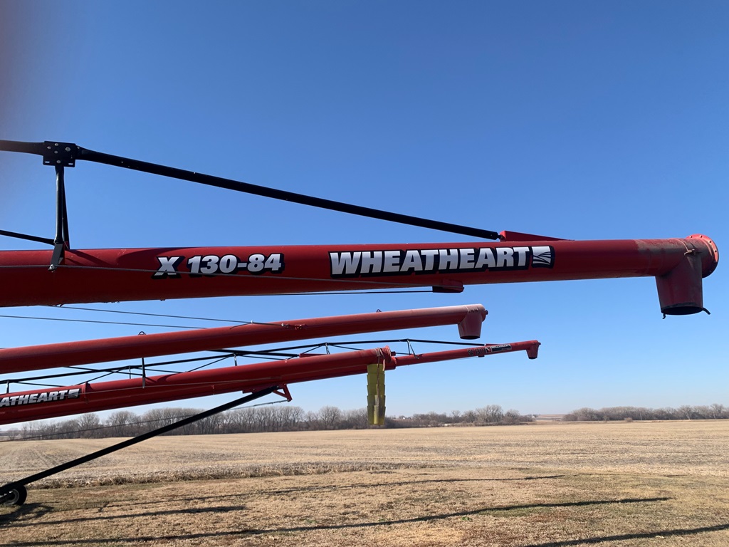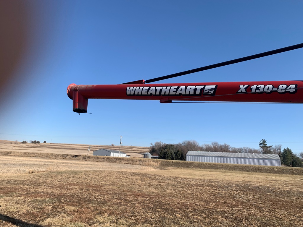 Wheatheart Auger (CP0270), model X130-84 portable grain auger, hydraulic up/down, dual auger swing hopper w/hydraulic drive wheel, variable speed flow valve, 540 PTO drive.