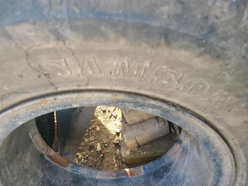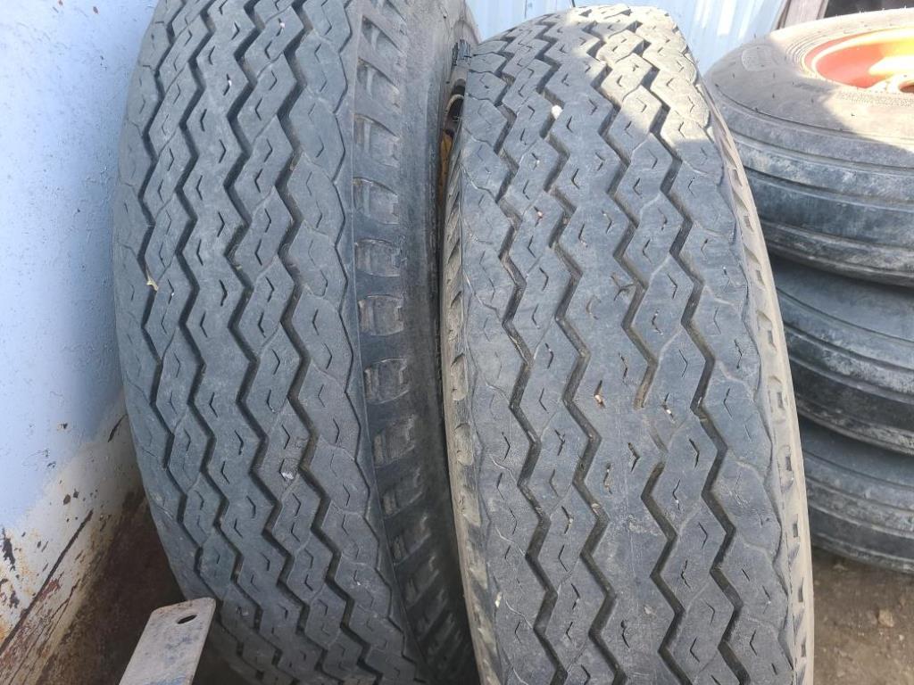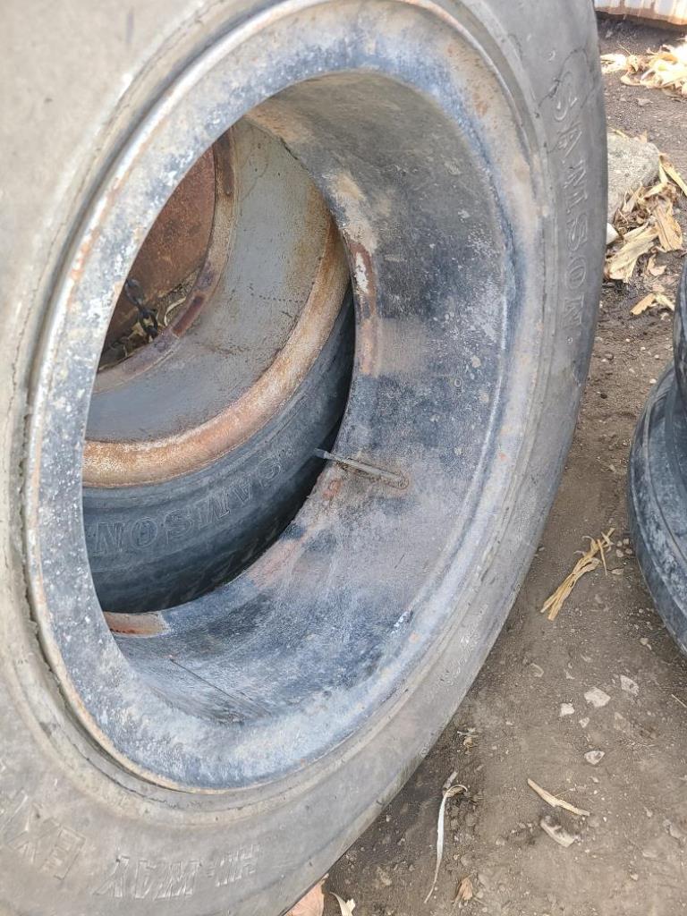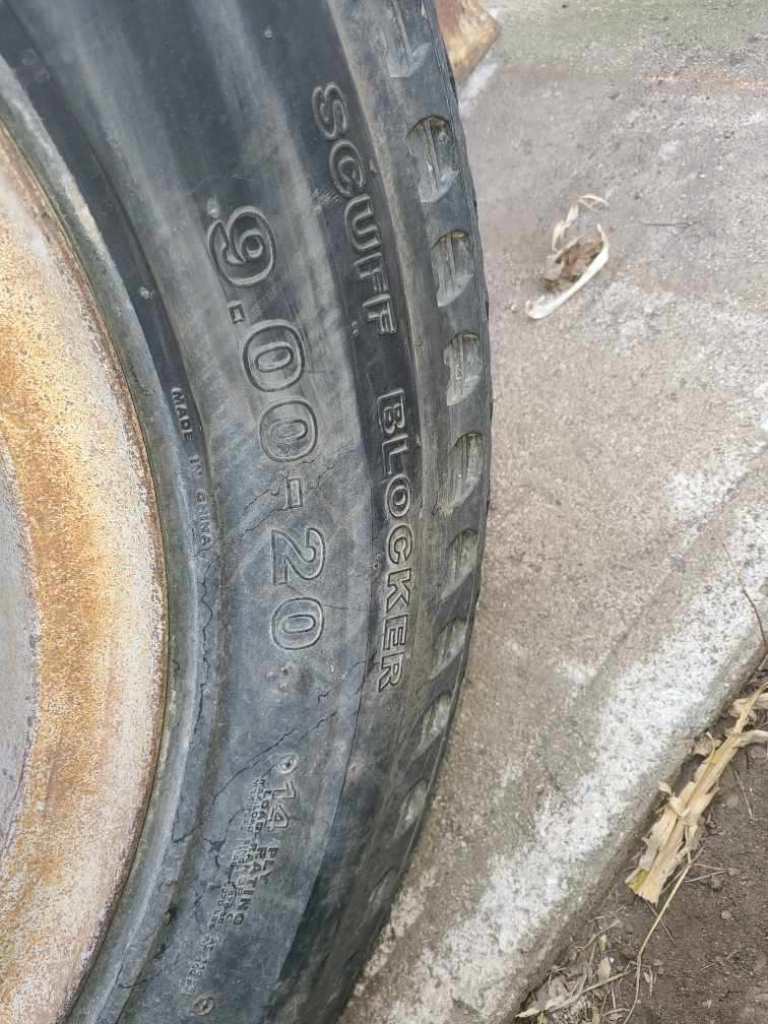 Tires (DR3625), (2) 9.00-20 tires, 14 ply rated, mounted on rims.