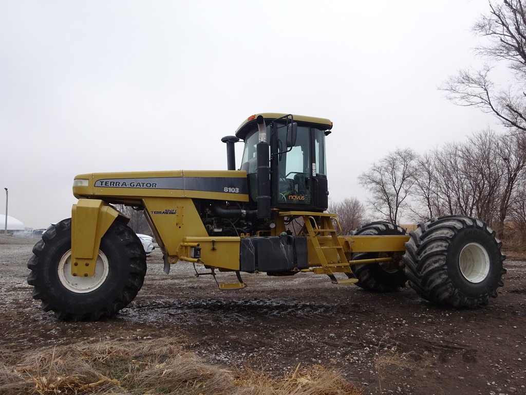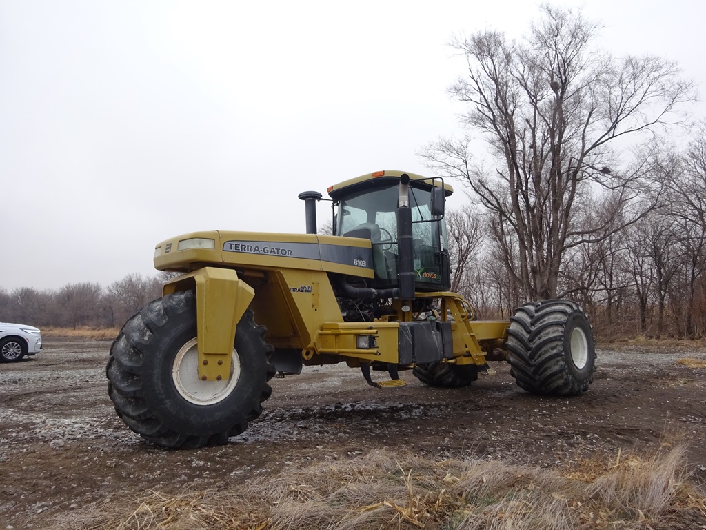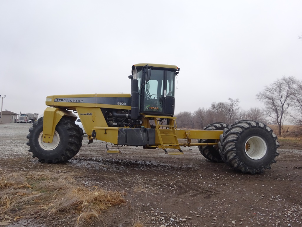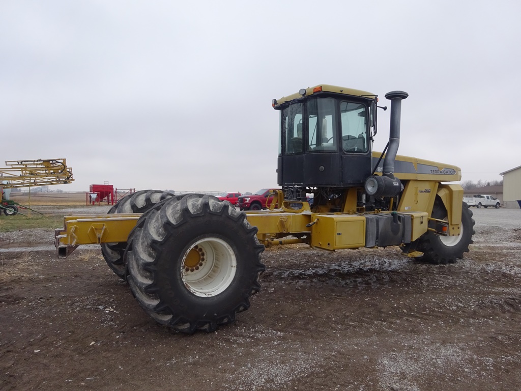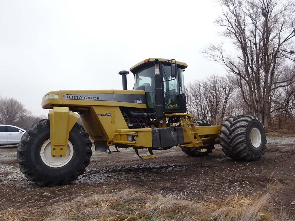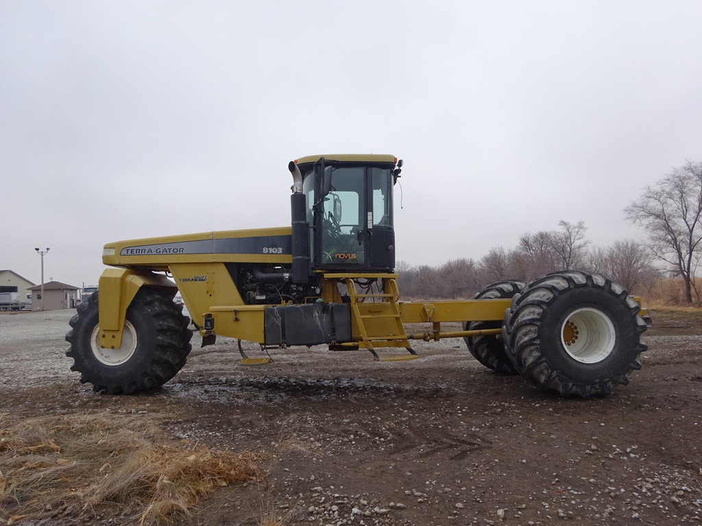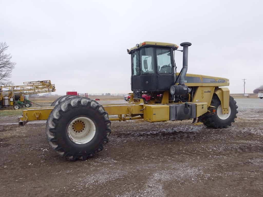 2003 Terra Gator 8103 Cab Chasis Floater (PZ10112), John Deere diesel engine (S/N RG6081H210308), Terra Shift transmission, air conditioning, heat, Am/Fm cassette radio, Firestone 66x43.00-25 front tire, Good Year Optiterra 1000/50R25 rear tires, shows 10,162 hours.
