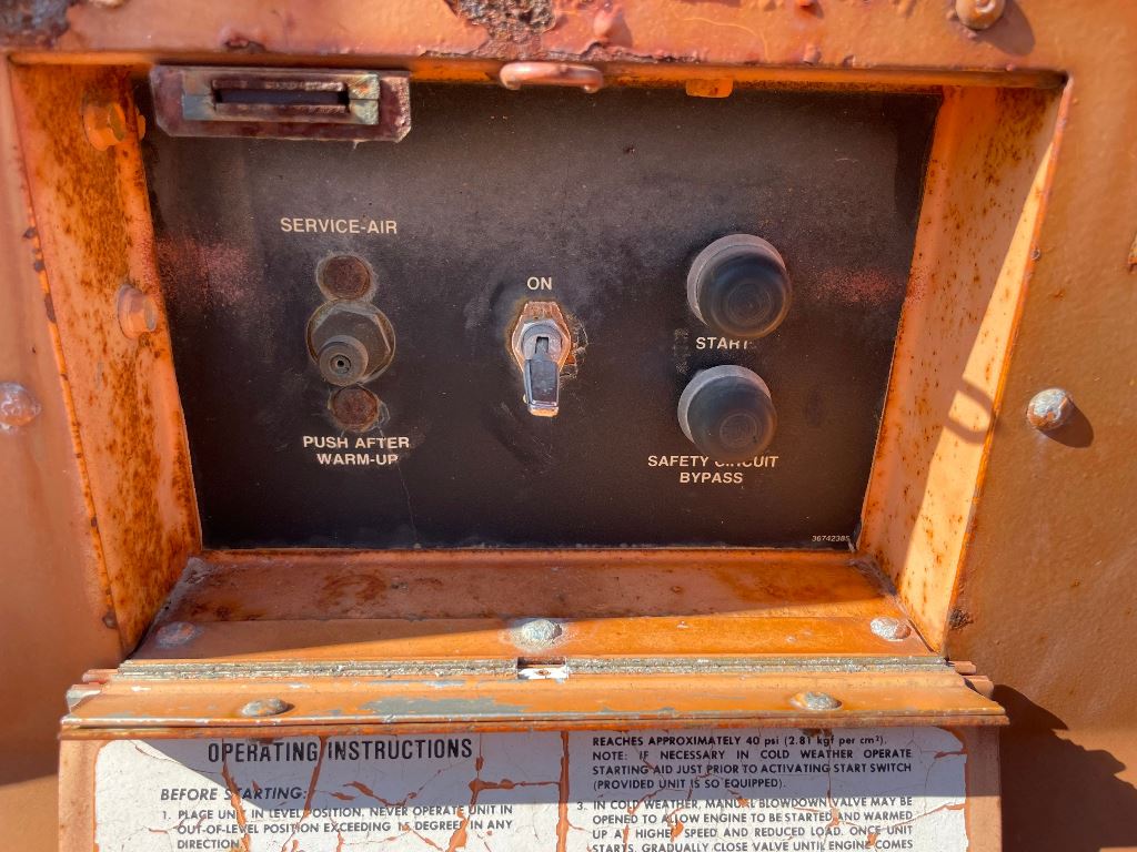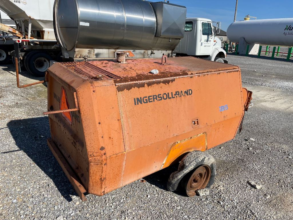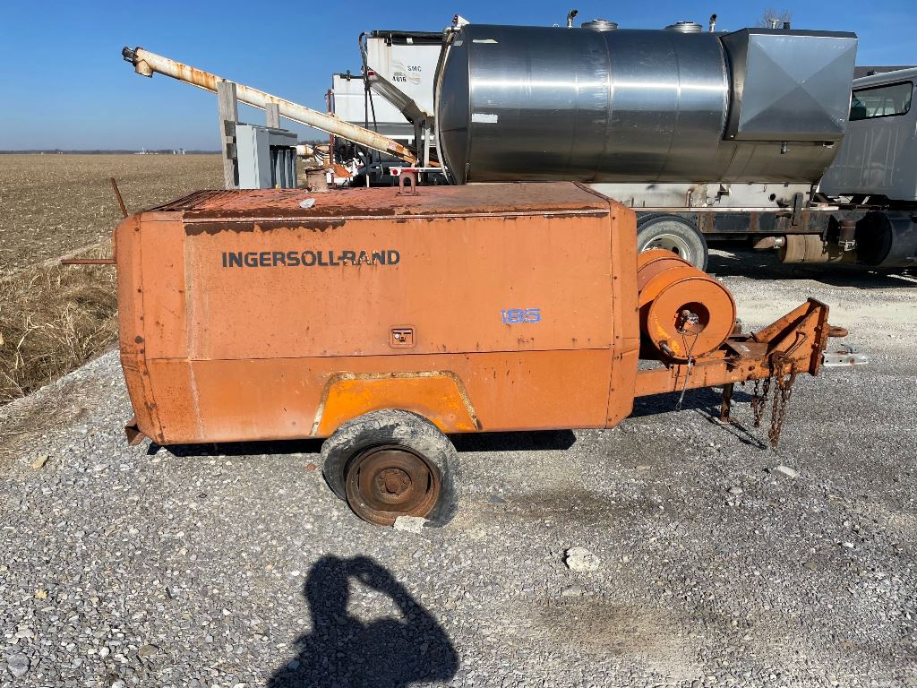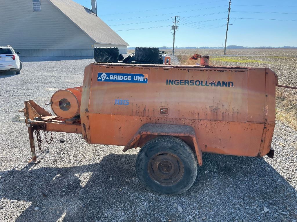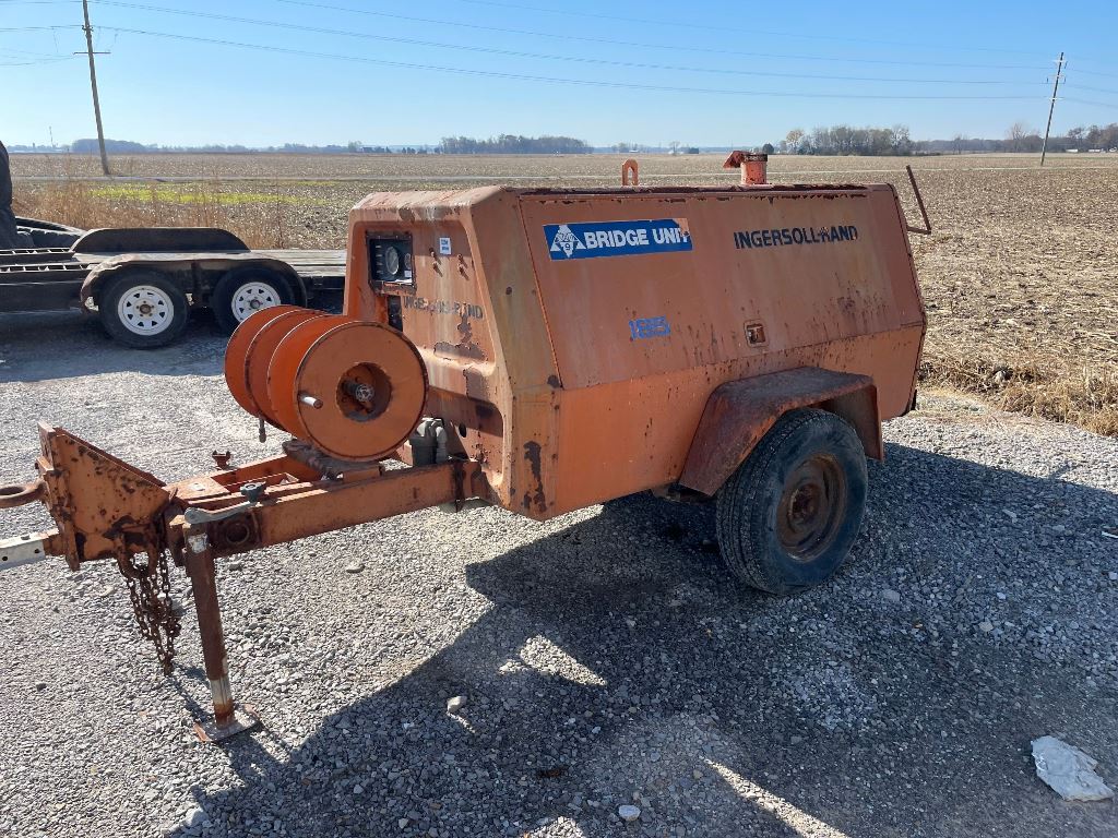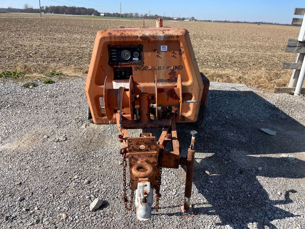 Ingersoll-Rand Air Compressor (GP2209), Ingersoll-Rand model 185 air compressor, John Deere diesel engine, portable, ST225/75R15 tire (needs a tire), shows 2,682 hours.