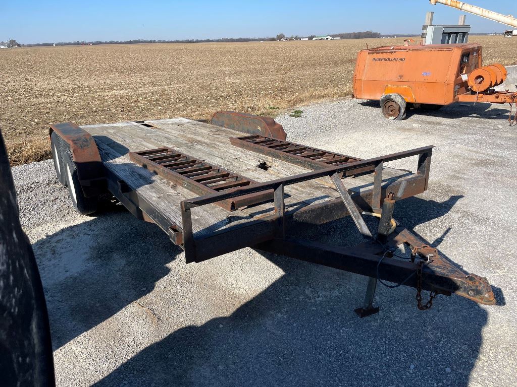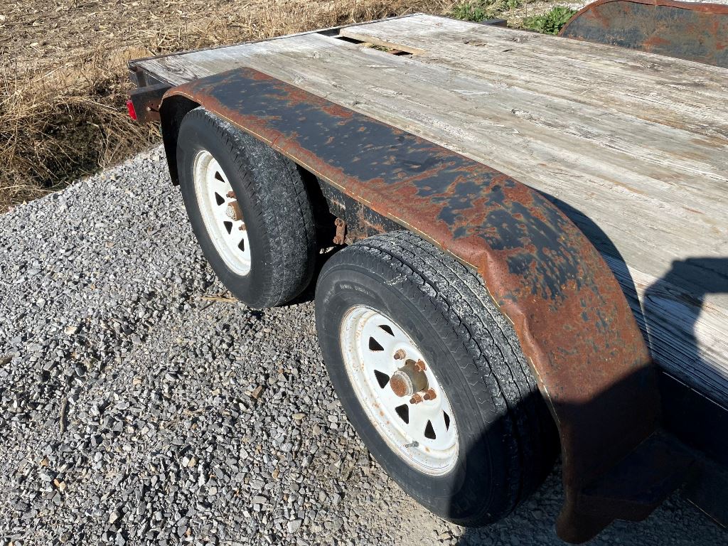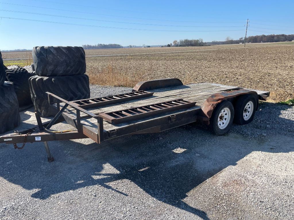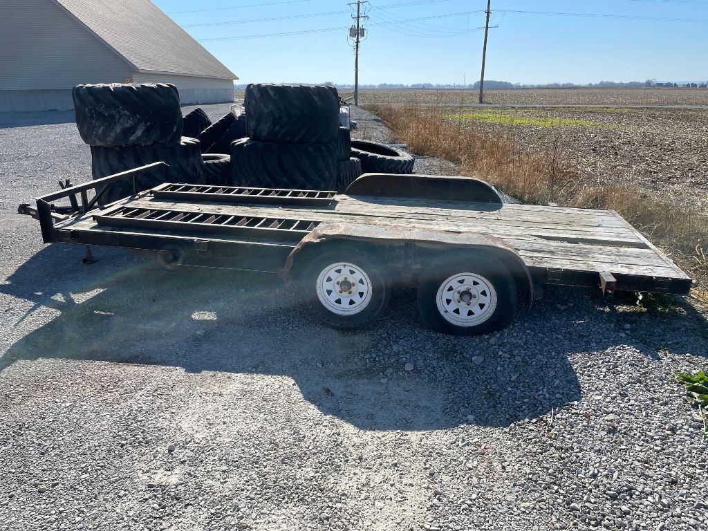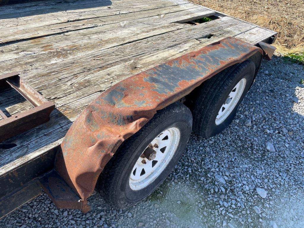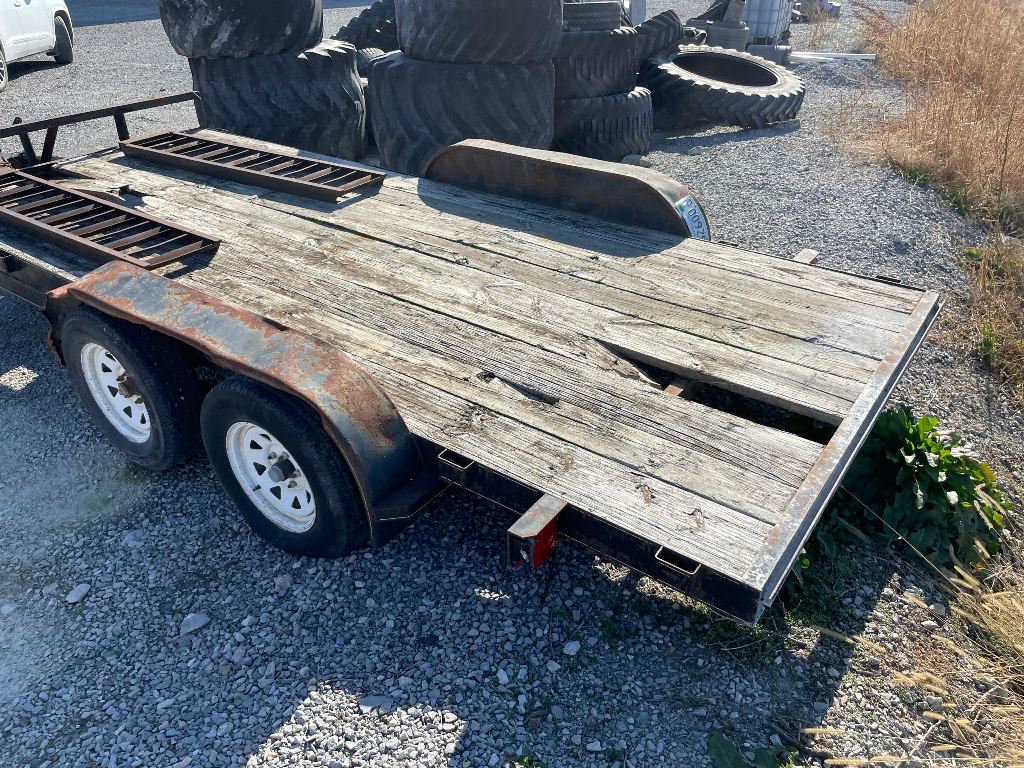 2003 Homemade Flatbed Trailer (GP2210, Unit 111525), 2003 Homemade 16' flatbed trailer, wood deck, ramps, tandem axle, ST205/75R15 tires, fenders.